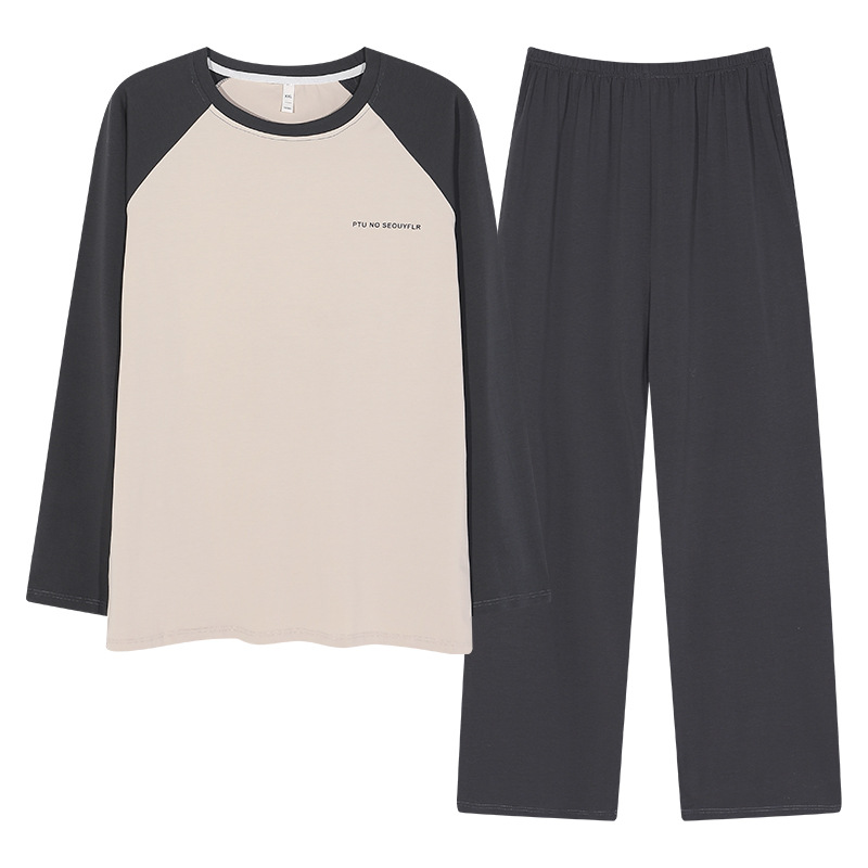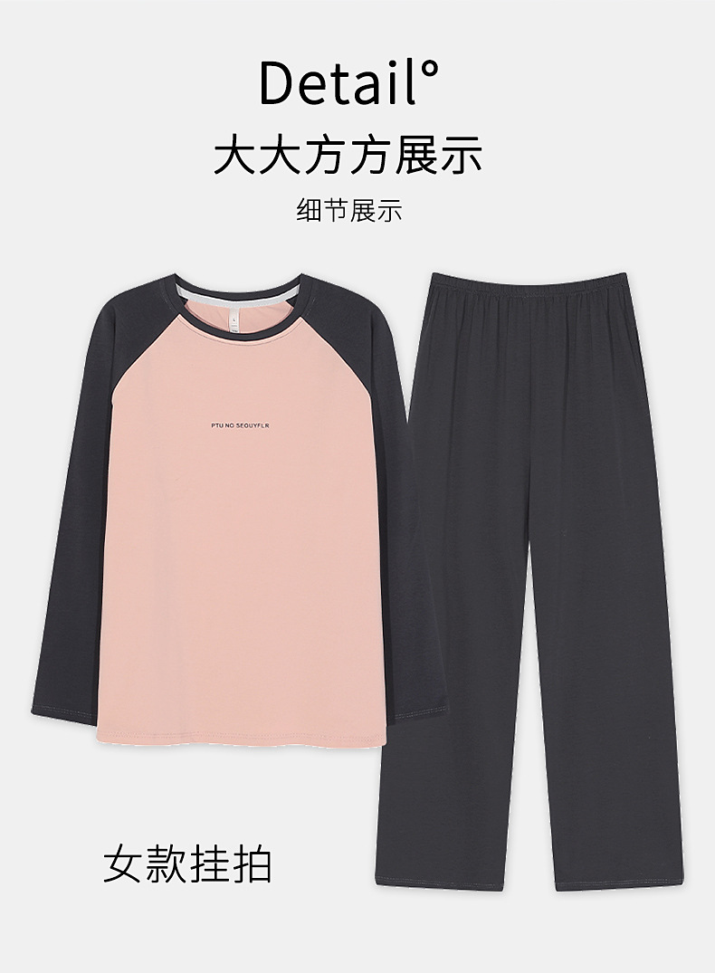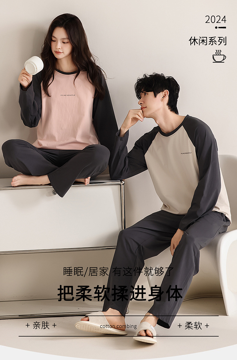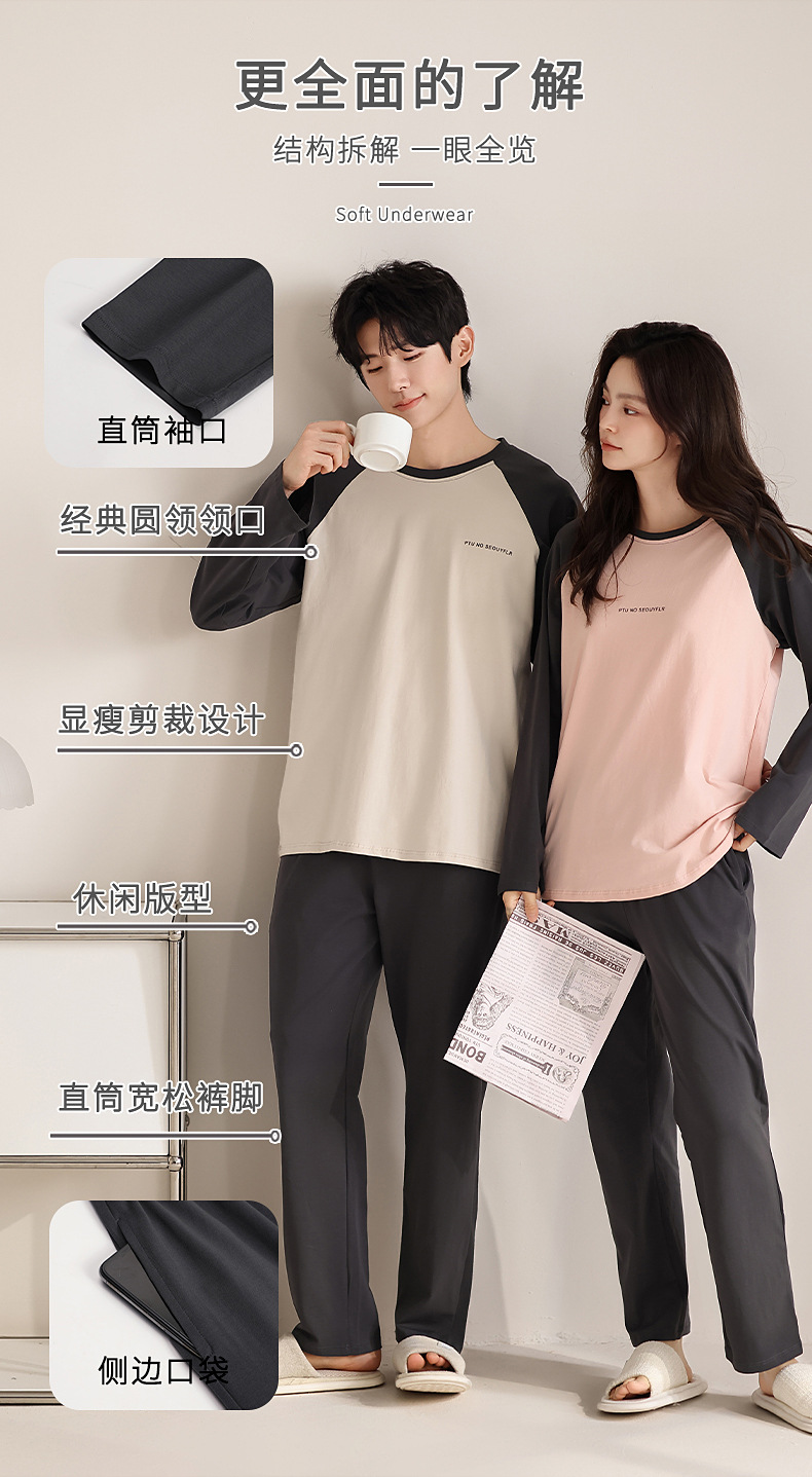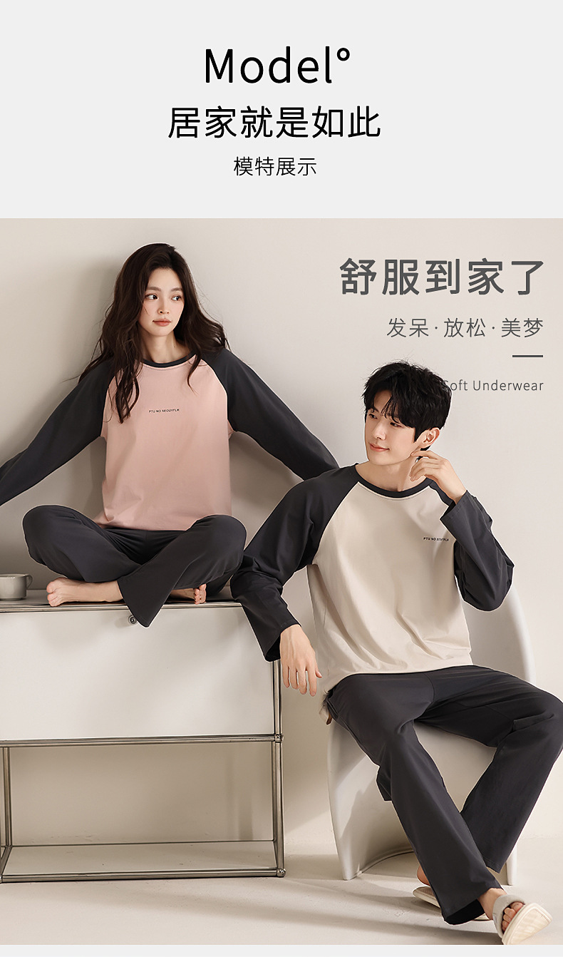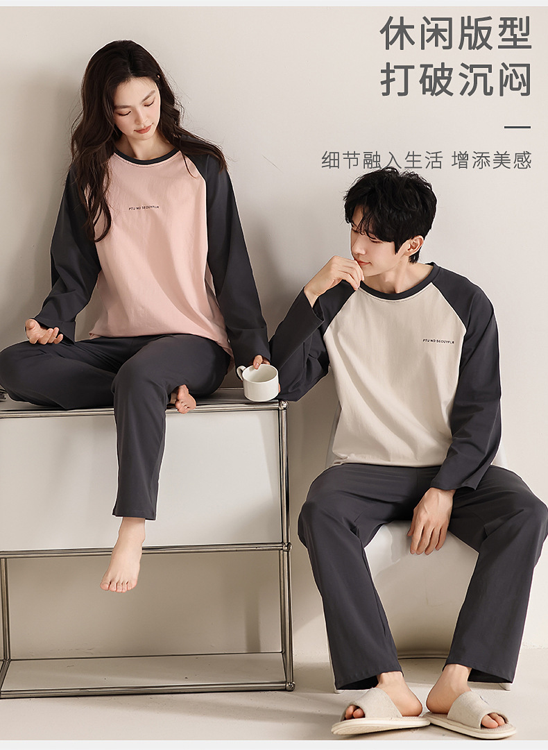 【】봄과 가을 커플 잠옷 순면 긴팔 라운드넥 심플 캐주얼 홈웨어 세트 여성용 가을 신상품스토어 가기