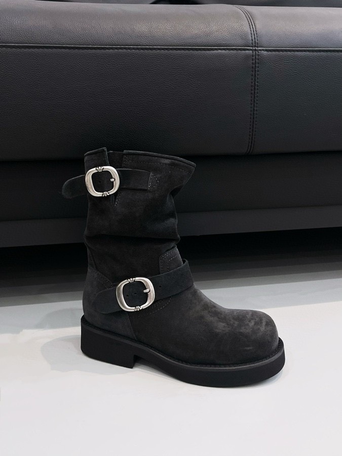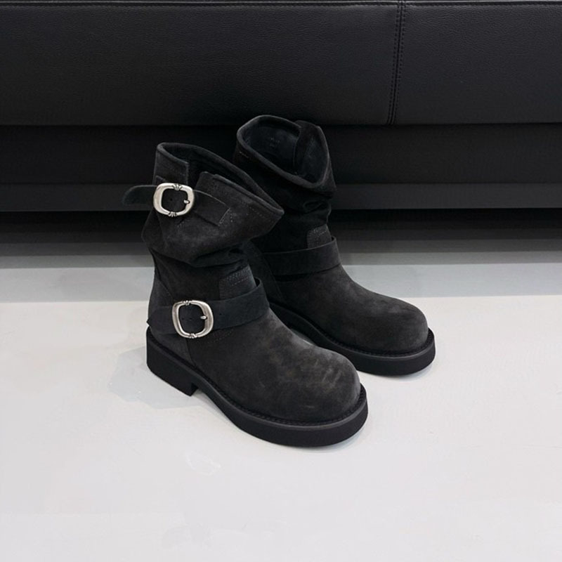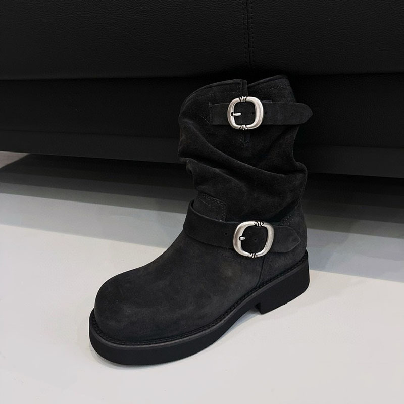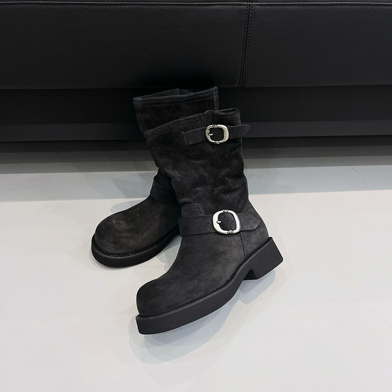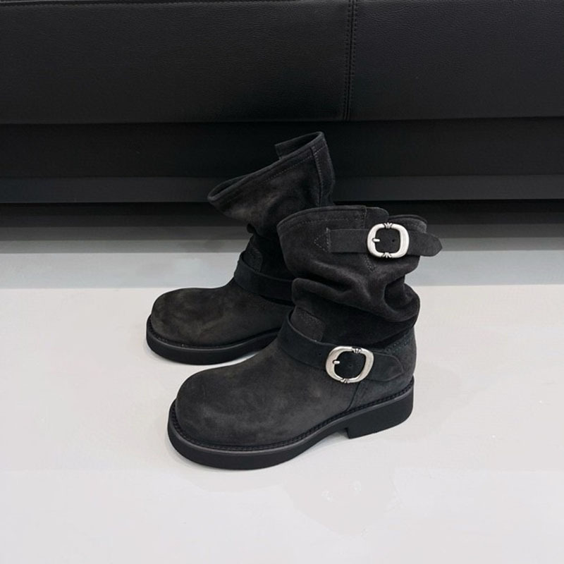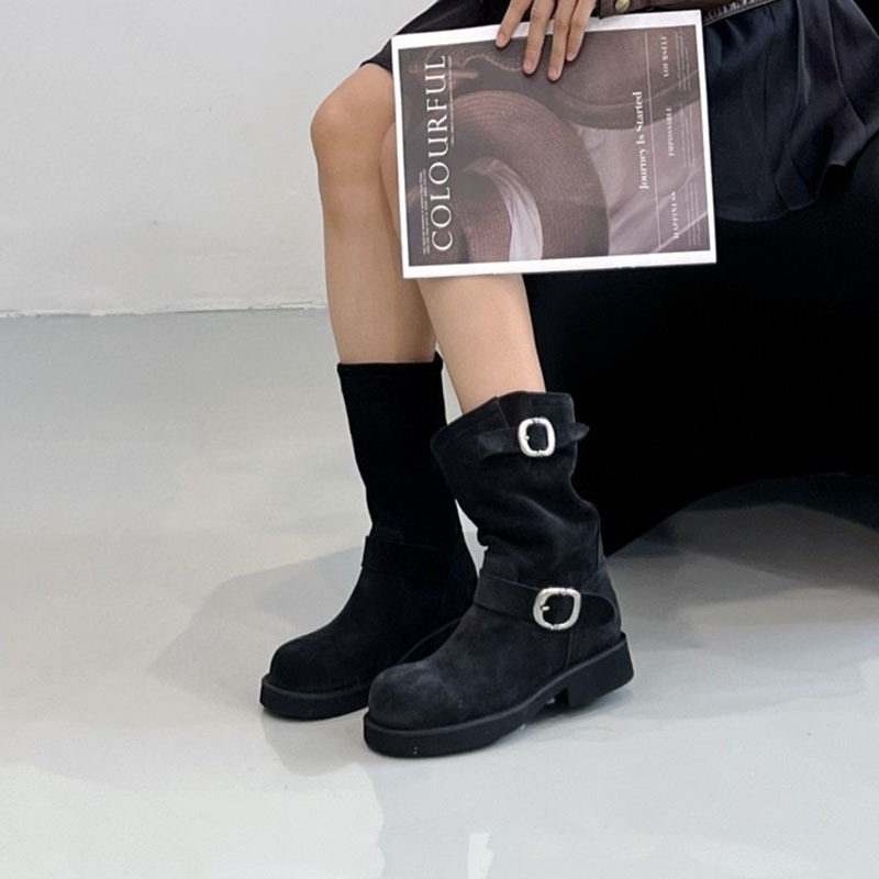 새로운 스태킹 부츠 두꺼운 하단 오토바이 버클 쇼트 부츠 여성용 마틴 부츠 슬림 룩 레트로 스타일 마틴 부츠 여성용 쇼트 부츠 미들 튜브