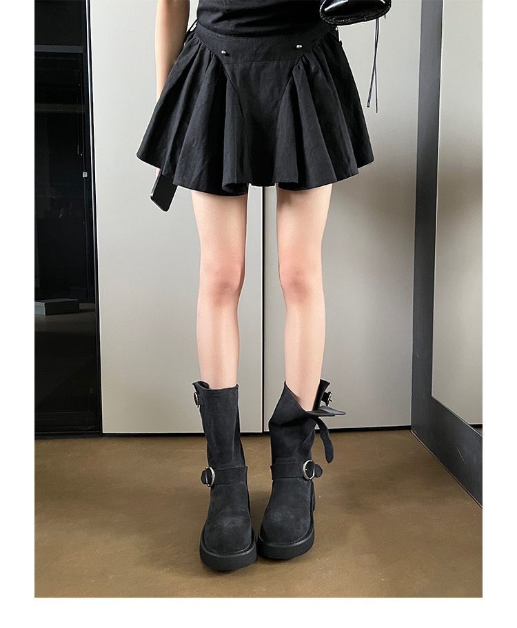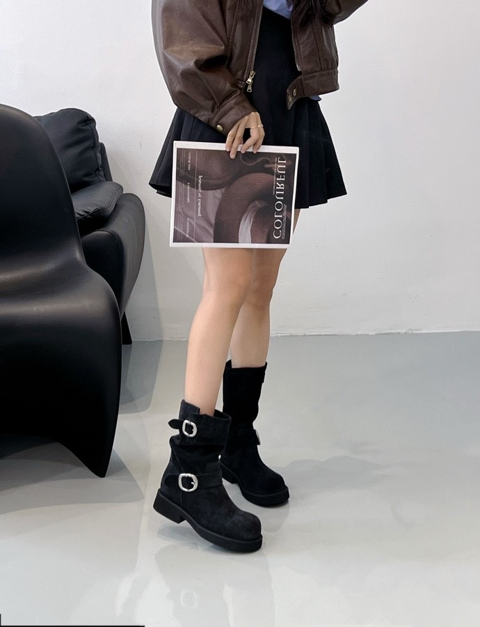 새로운 스태킹 부츠 두꺼운 하단 오토바이 버클 쇼트 부츠 여성용 마틴 부츠 슬림 룩 레트로 스타일 마틴 부츠 여성용 쇼트 부츠 미들 튜브스토어 가기