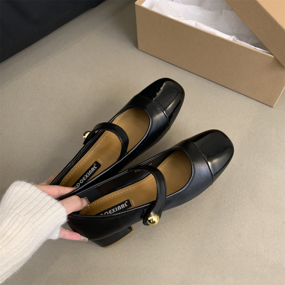 향기로운 스타일 프랑스 이브닝 스타일 얕은 입 싱글 레이어 신발 여성 미드 힐 2023 가을 한국 스타일 레트로 부드러운 우아한 요정 메리 제인스토어 가기
