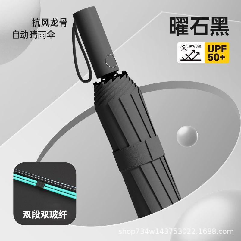 • 강화된 이중 섹션 48 세그먼트 [블랙 스톤 블랙] 자외선 차단 비닐 자동 우산