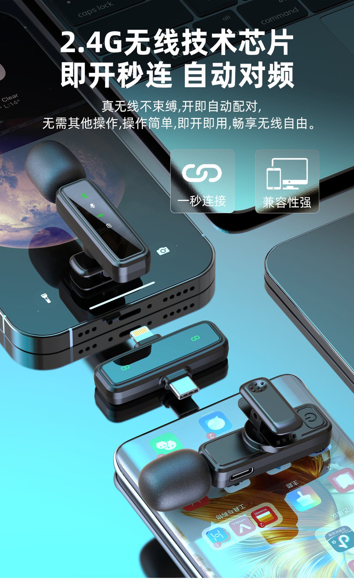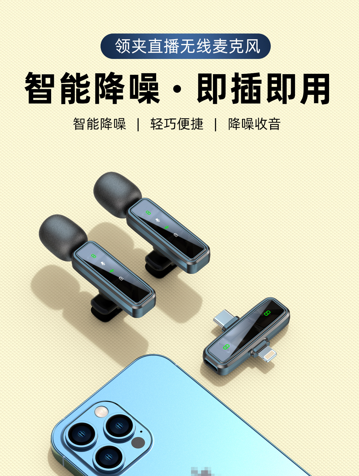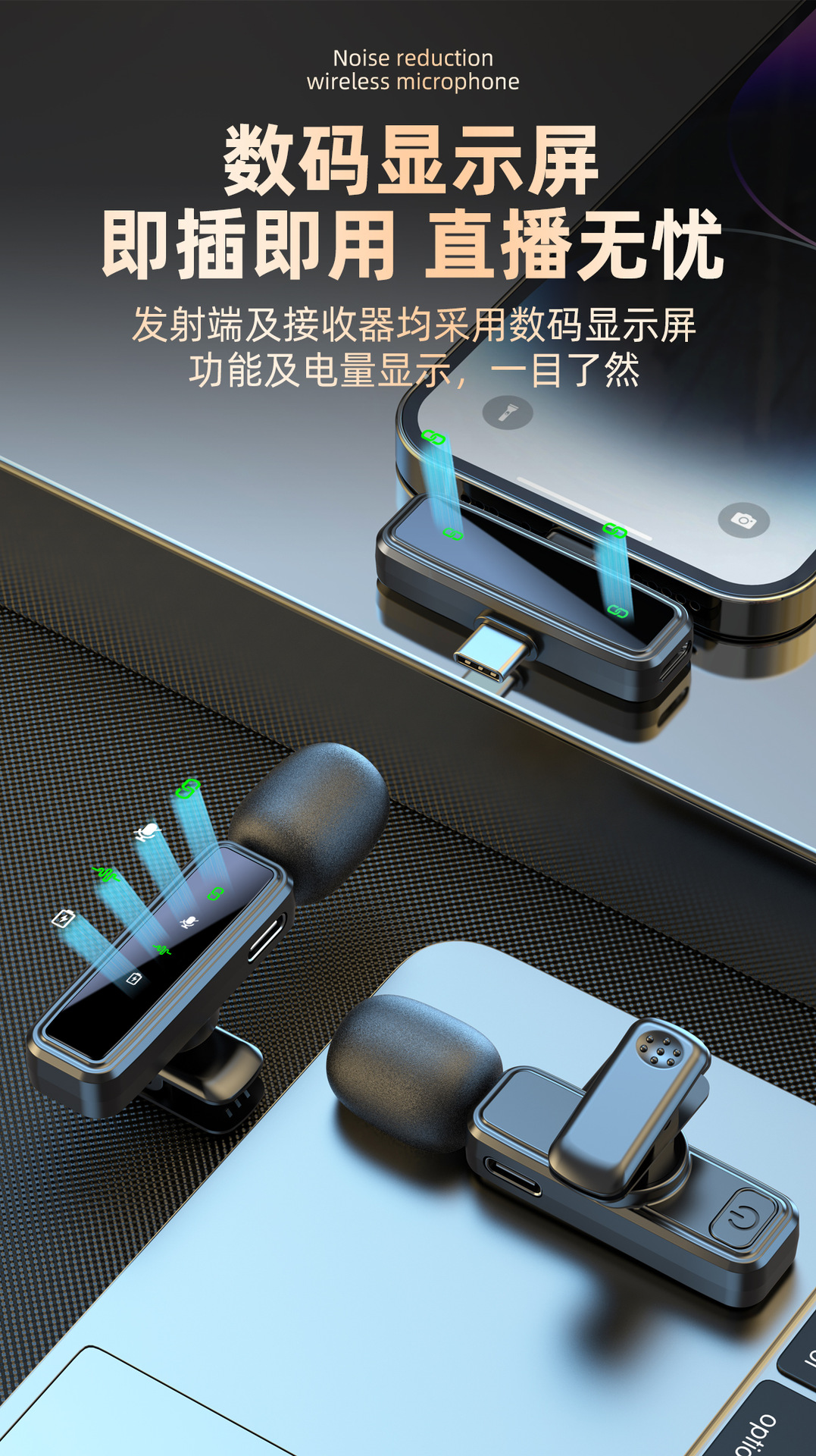 국경을 넘는 신형 자체 디자인 J86 2-in-1 무선 라발리에 마이크 라이브 방송 소음 감소 마이크 라발리에형 마이크
