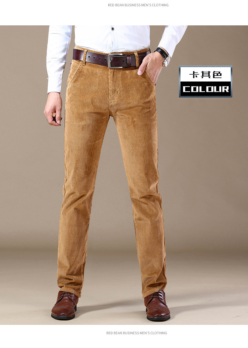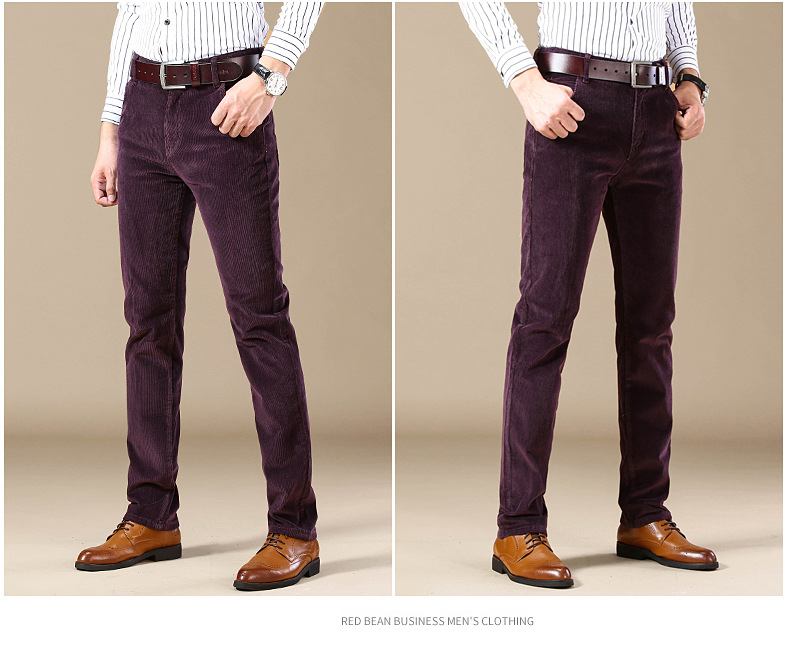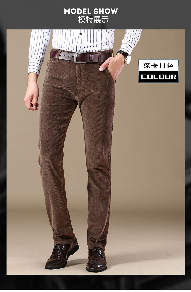 가을과 겨울 두꺼운 코듀로이 캐주얼 바지 남성용 두꺼운 따뜻한 코듀로이 바지 스트레이트 스트레치 슬림 핏 바지스토어 가기
