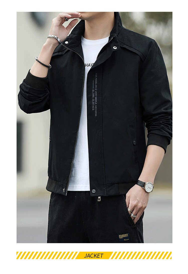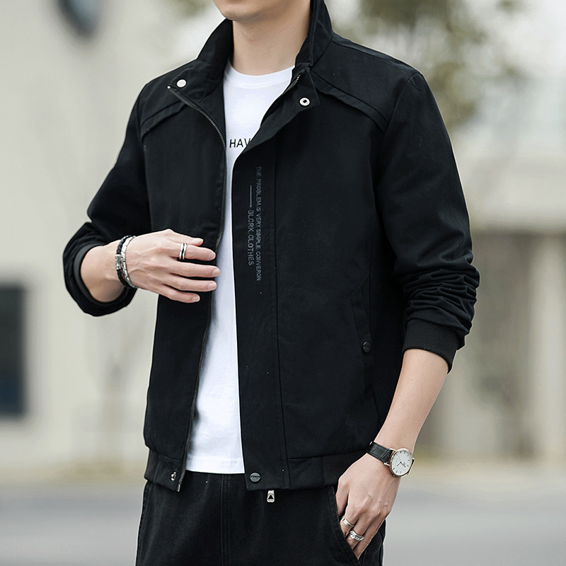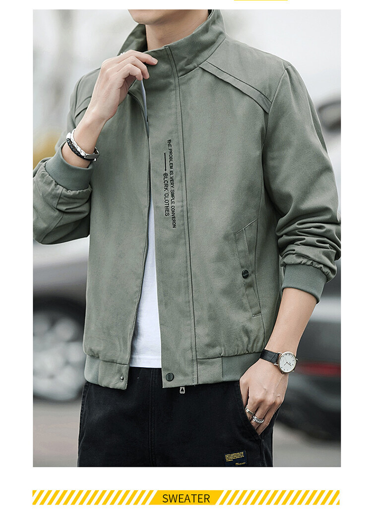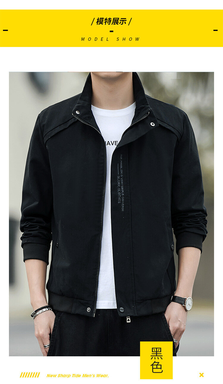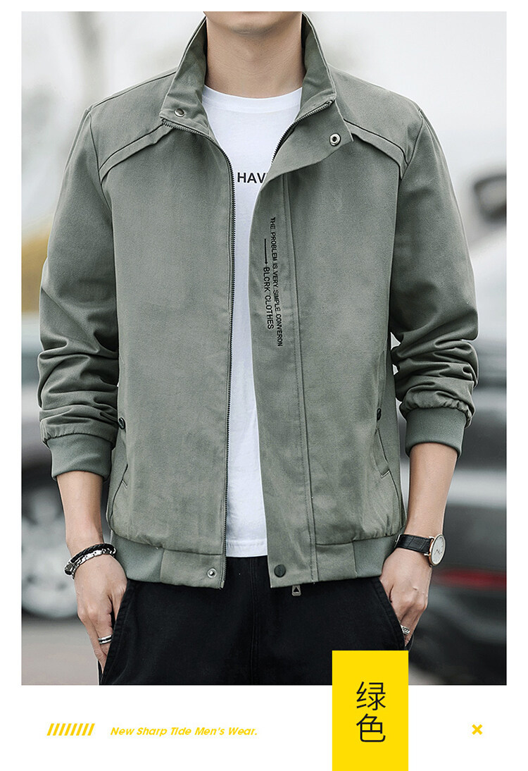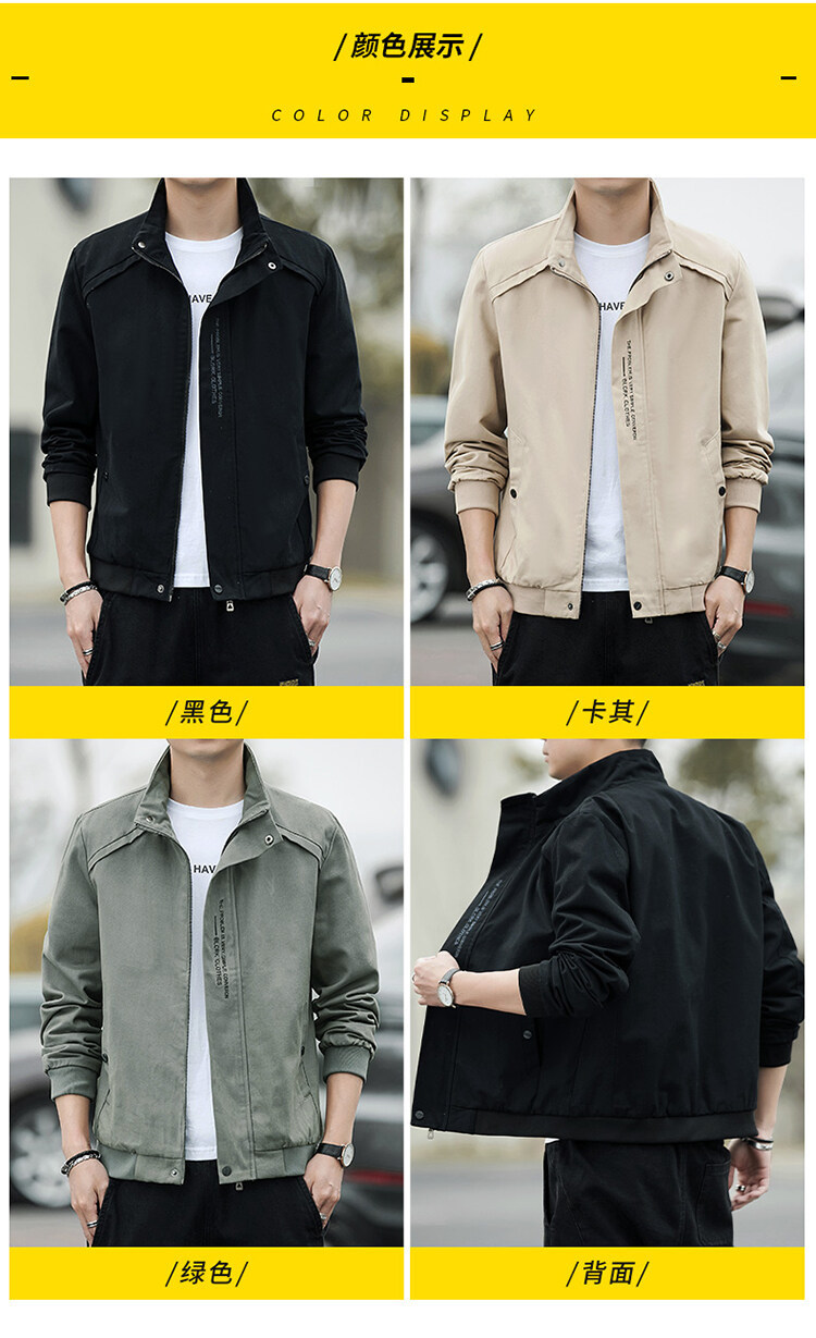 봄과 가을 남성 자켓 새로운 중년 남성 최고 수직 칼라 느슨한 캐주얼 트렌디 얇은 작업 자켓