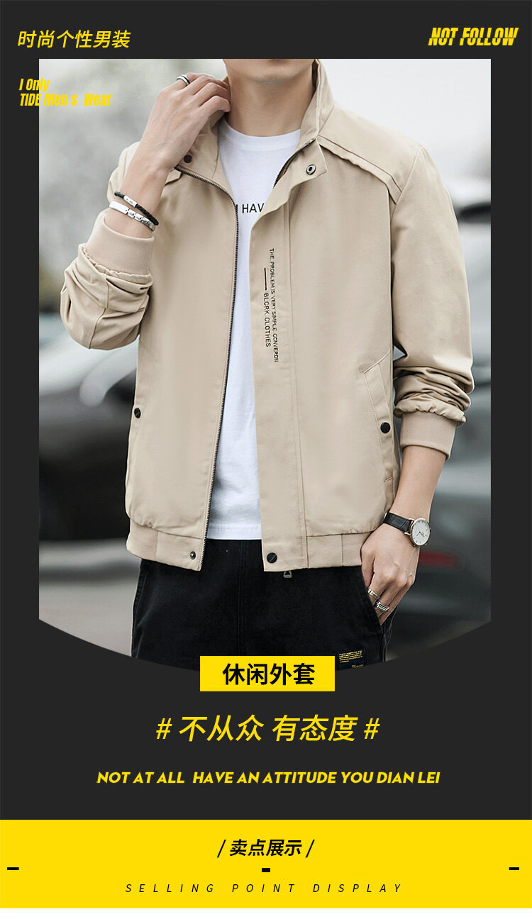 봄과 가을 남성 자켓 새로운 중년 남성 최고 수직 칼라 느슨한 캐주얼 트렌디 얇은 작업 자켓스토어 가기