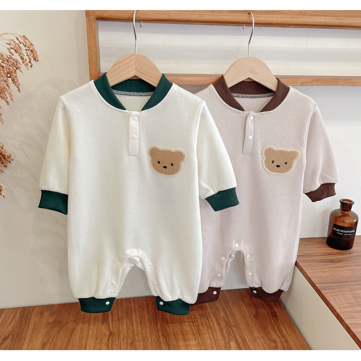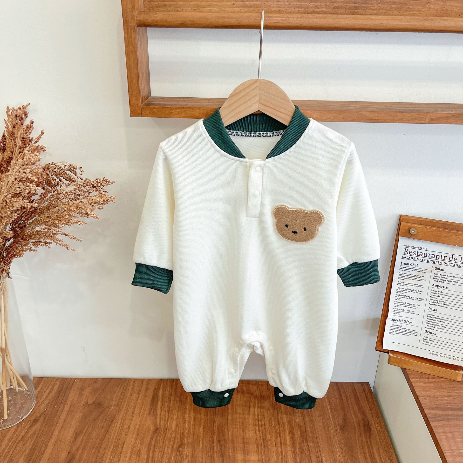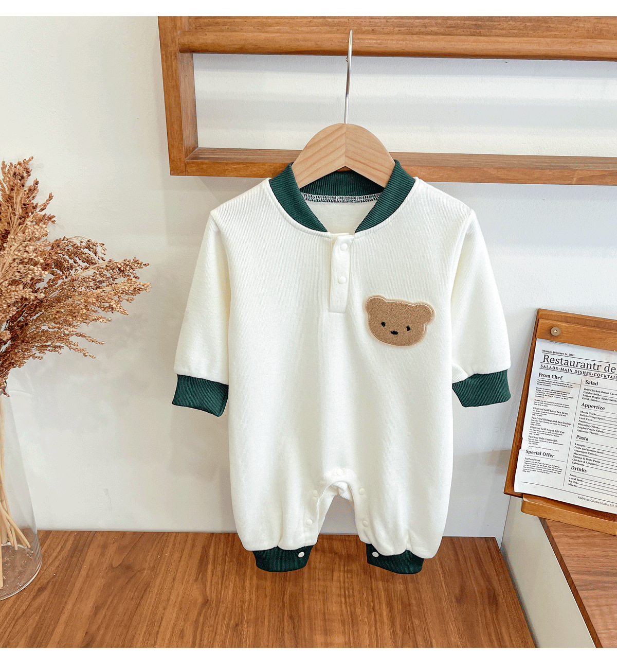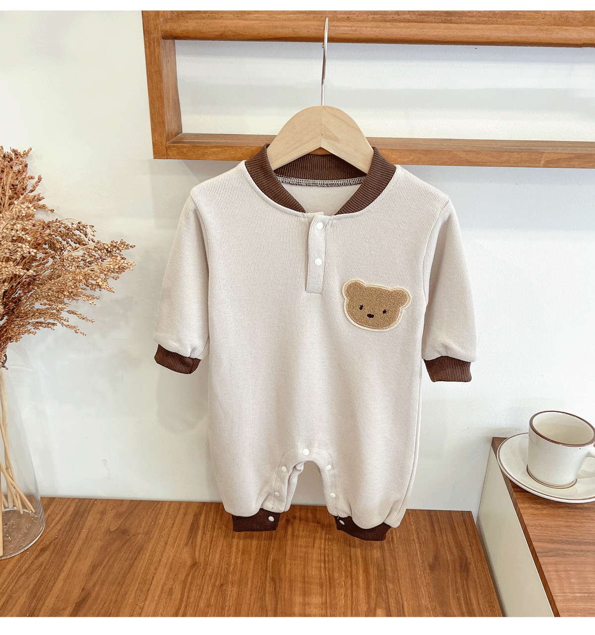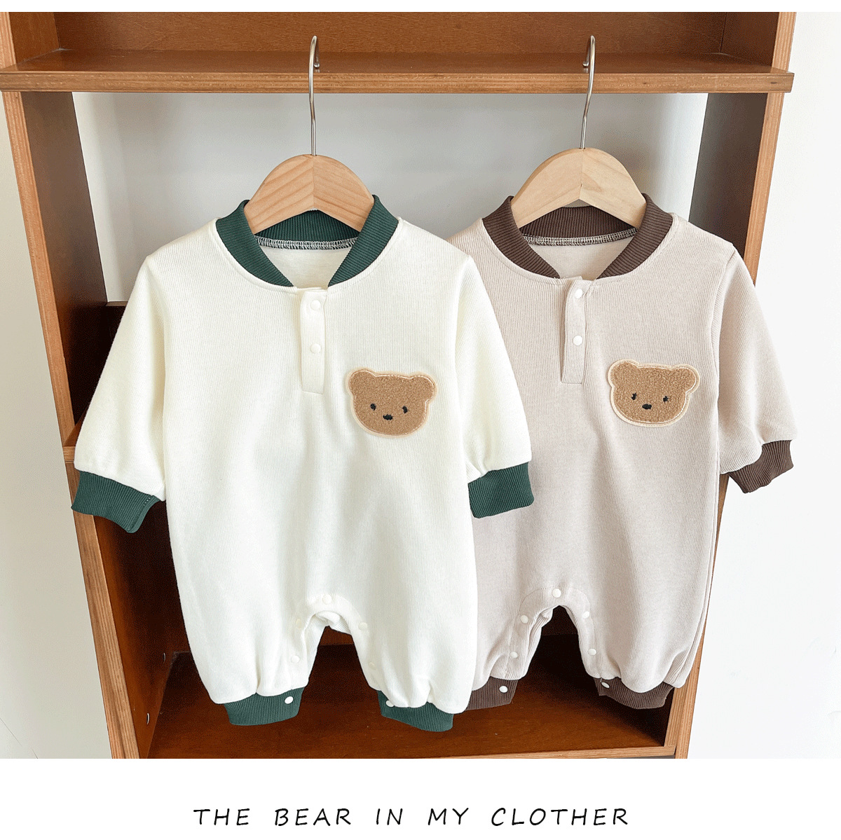 봄과 가을 남자와 여자의 아기 귀여운 만화 바디 수트 리틀 베어 스타일러즈 한국식 신생아 유아 외부 착용 하카 등반 세트스토어 가기