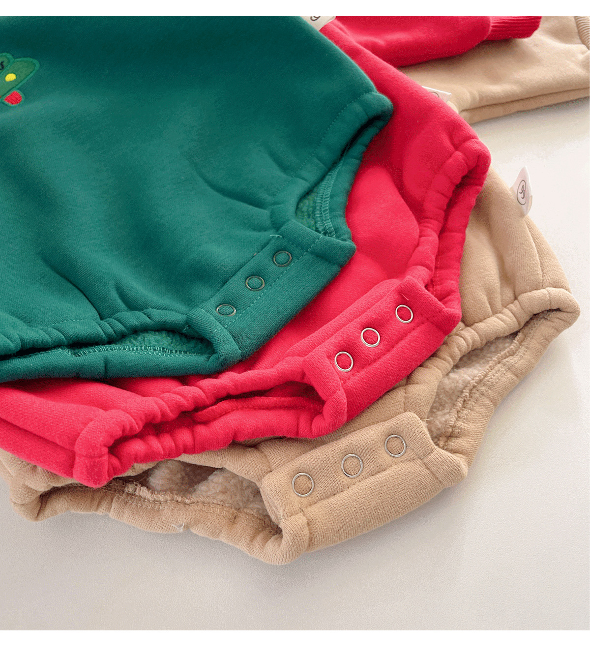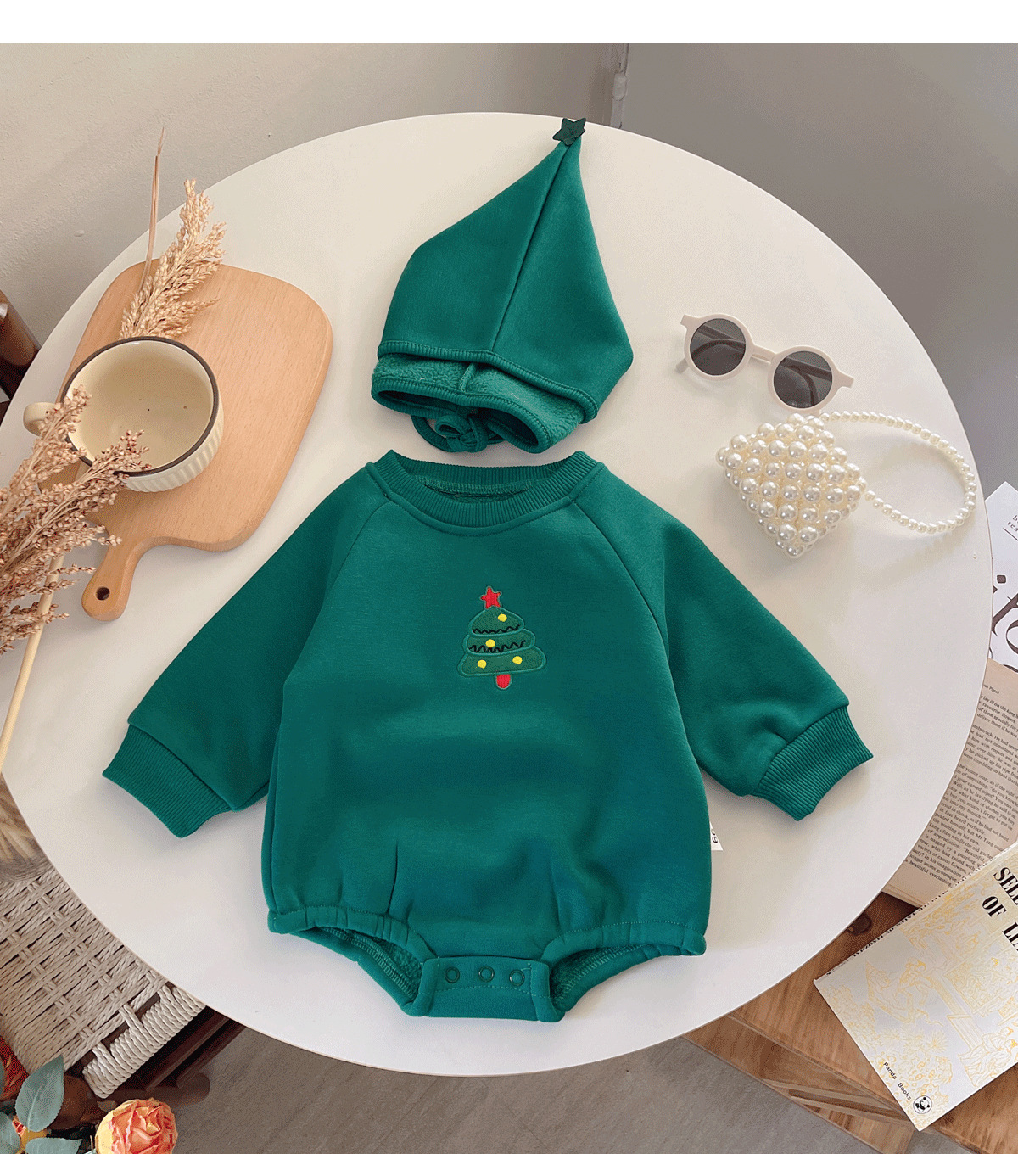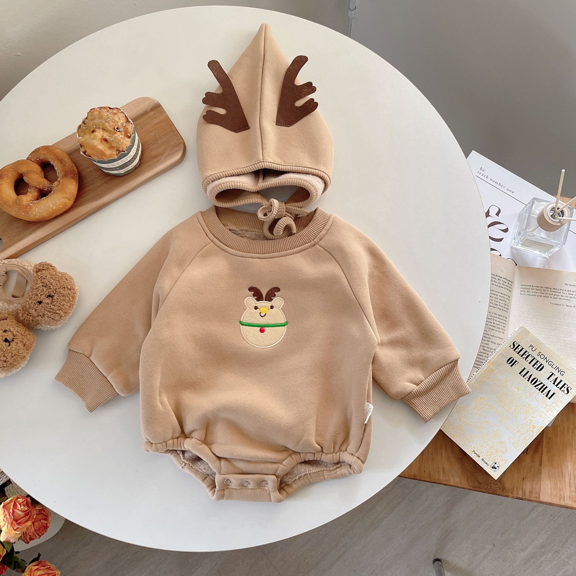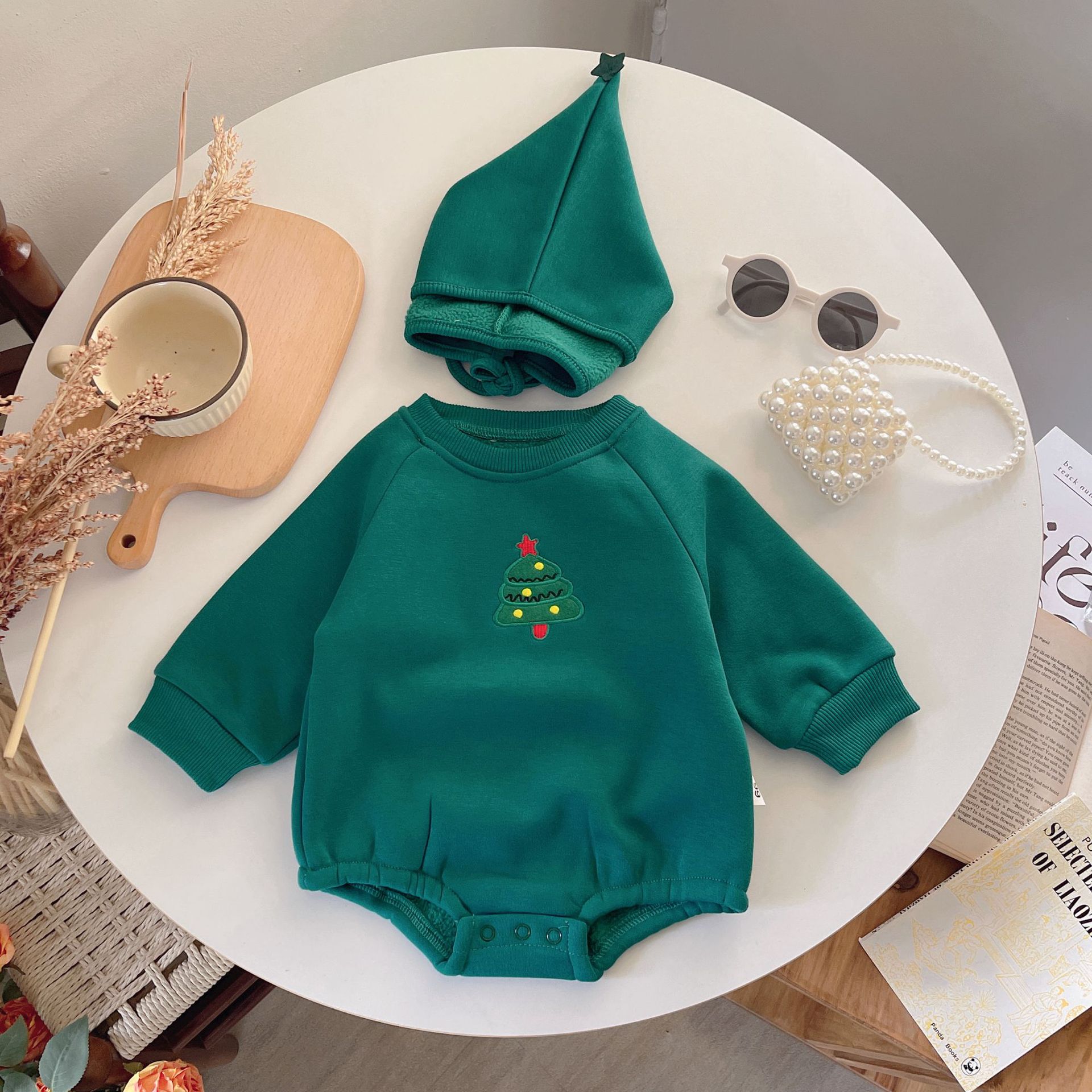 남성과 여성의 아동복 가을과 겨울 새로운 긴 소매 점프 수트 새해 축제 빨간 귀여운 크리스마스 옷 등반 모자