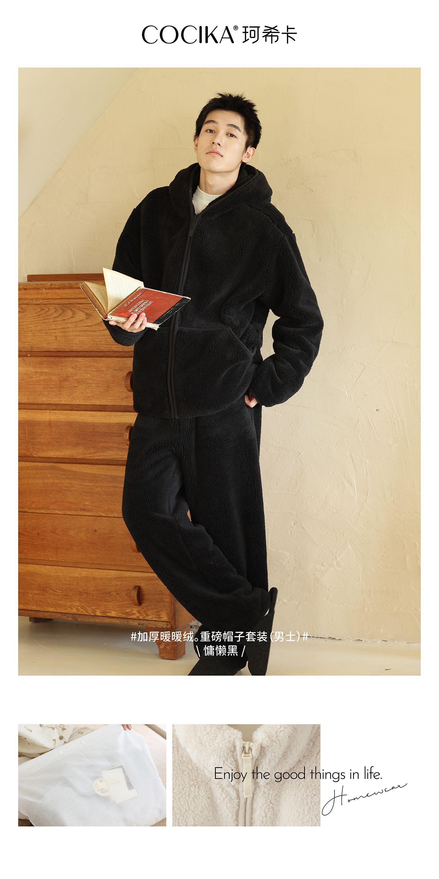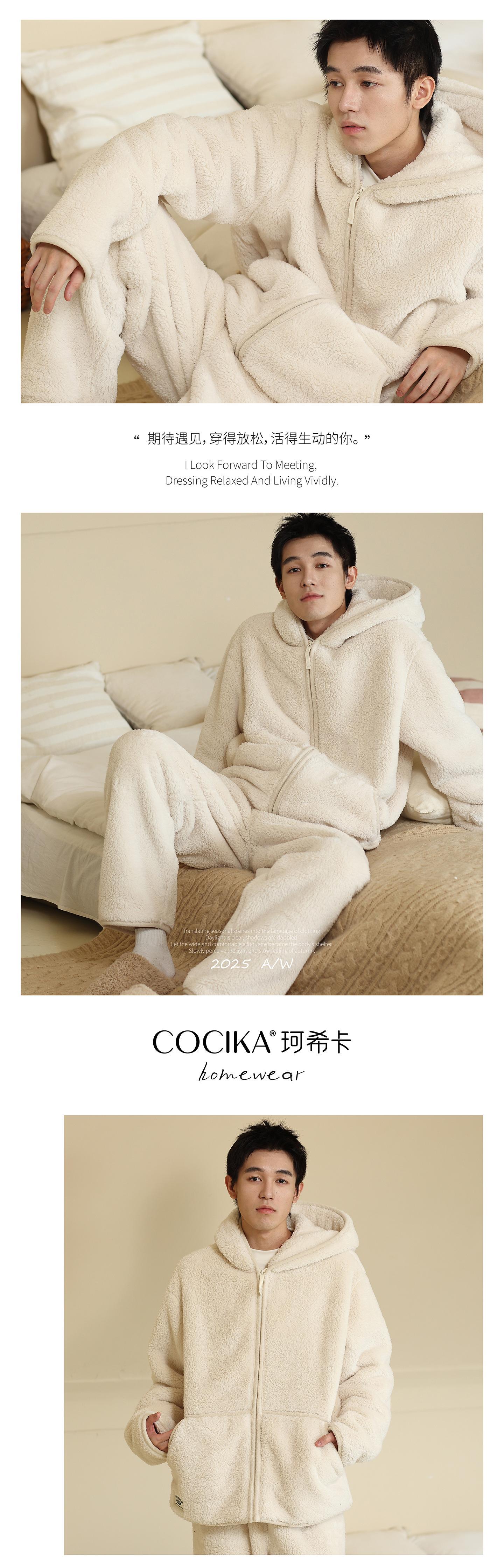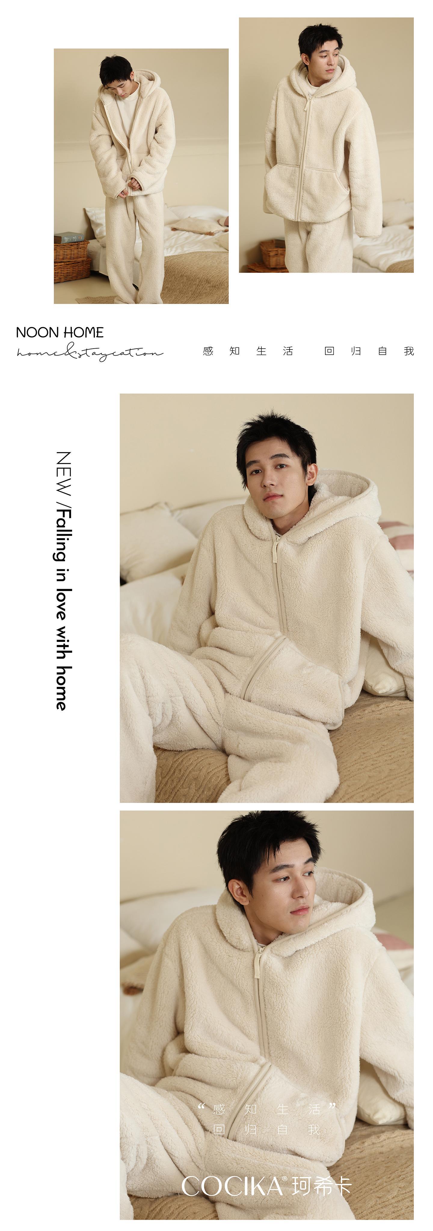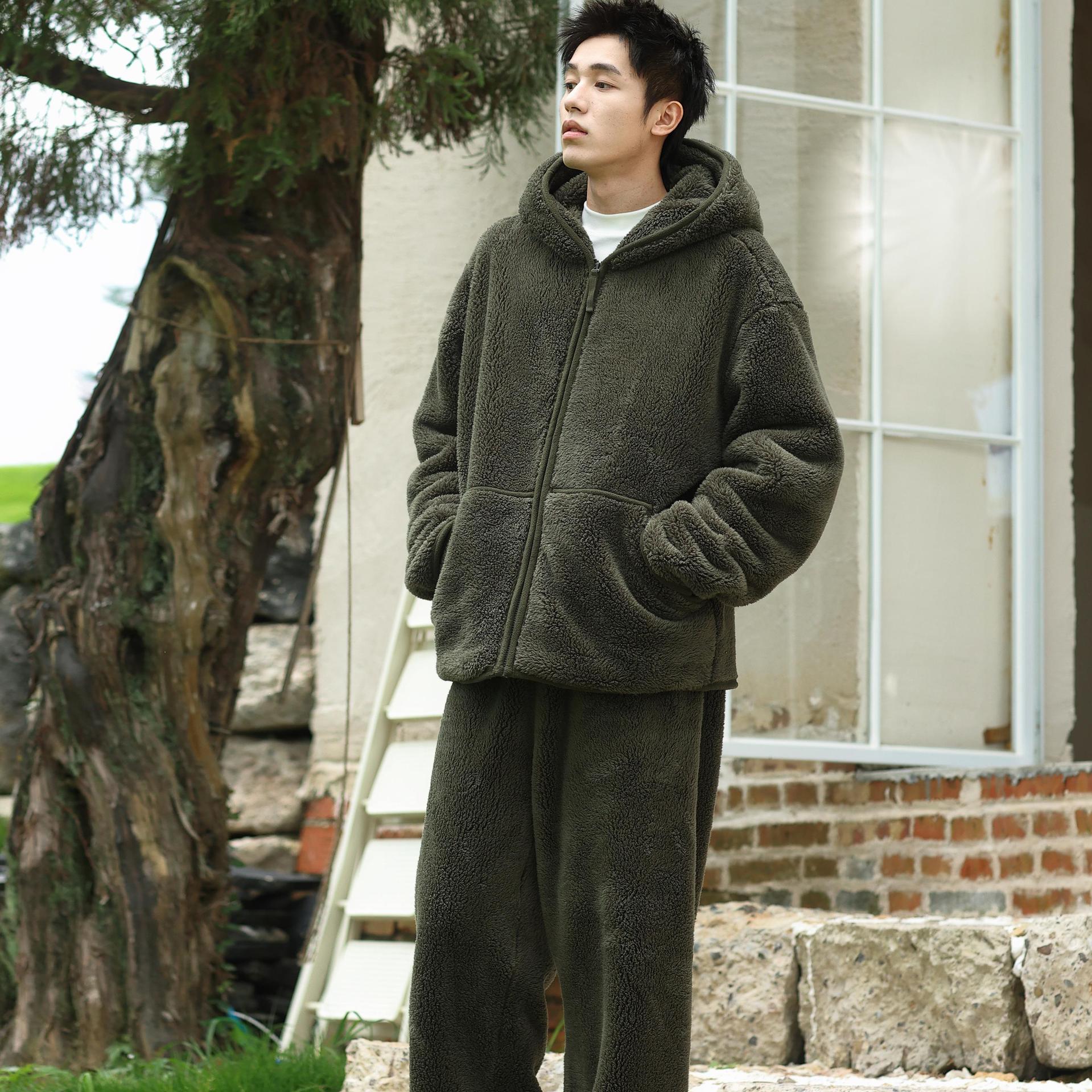 가을과 겨울 남자의 두꺼운 따뜻한 벨벳 모자를 세트 단색 간단한 잠옷 느슨한 캐주얼 홈 옷스토어 가기