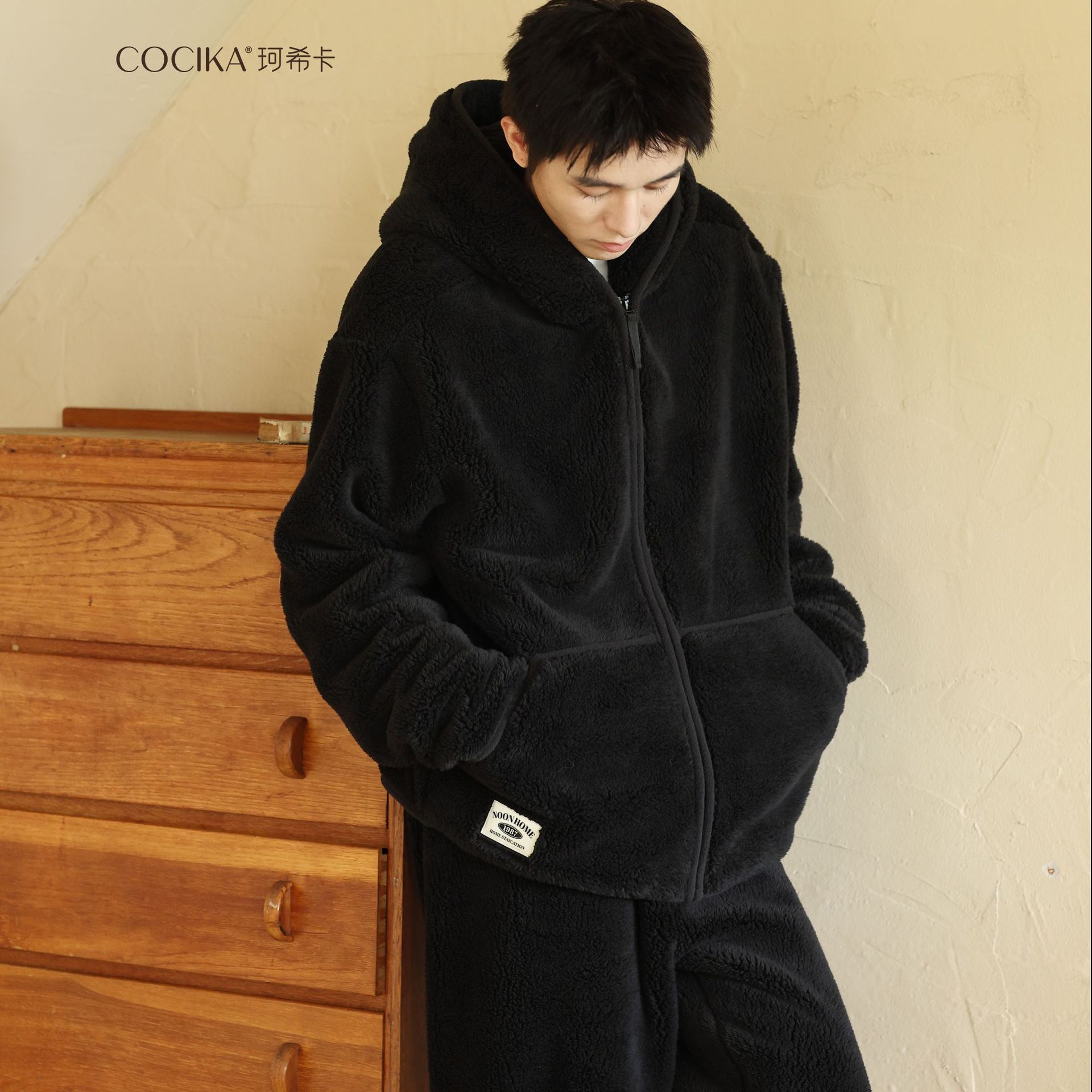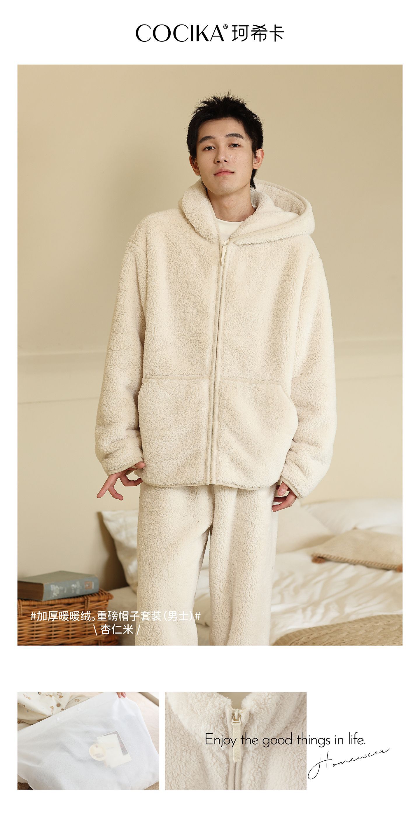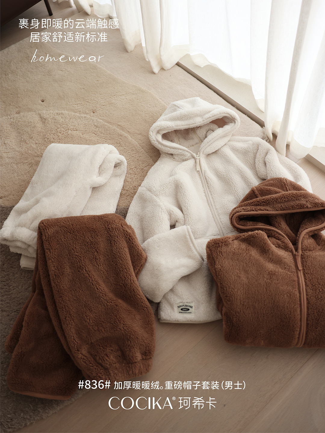 가을과 겨울 남자의 두꺼운 따뜻한 벨벳 모자를 세트 단색 간단한 잠옷 느슨한 캐주얼 홈 옷스토어 가기