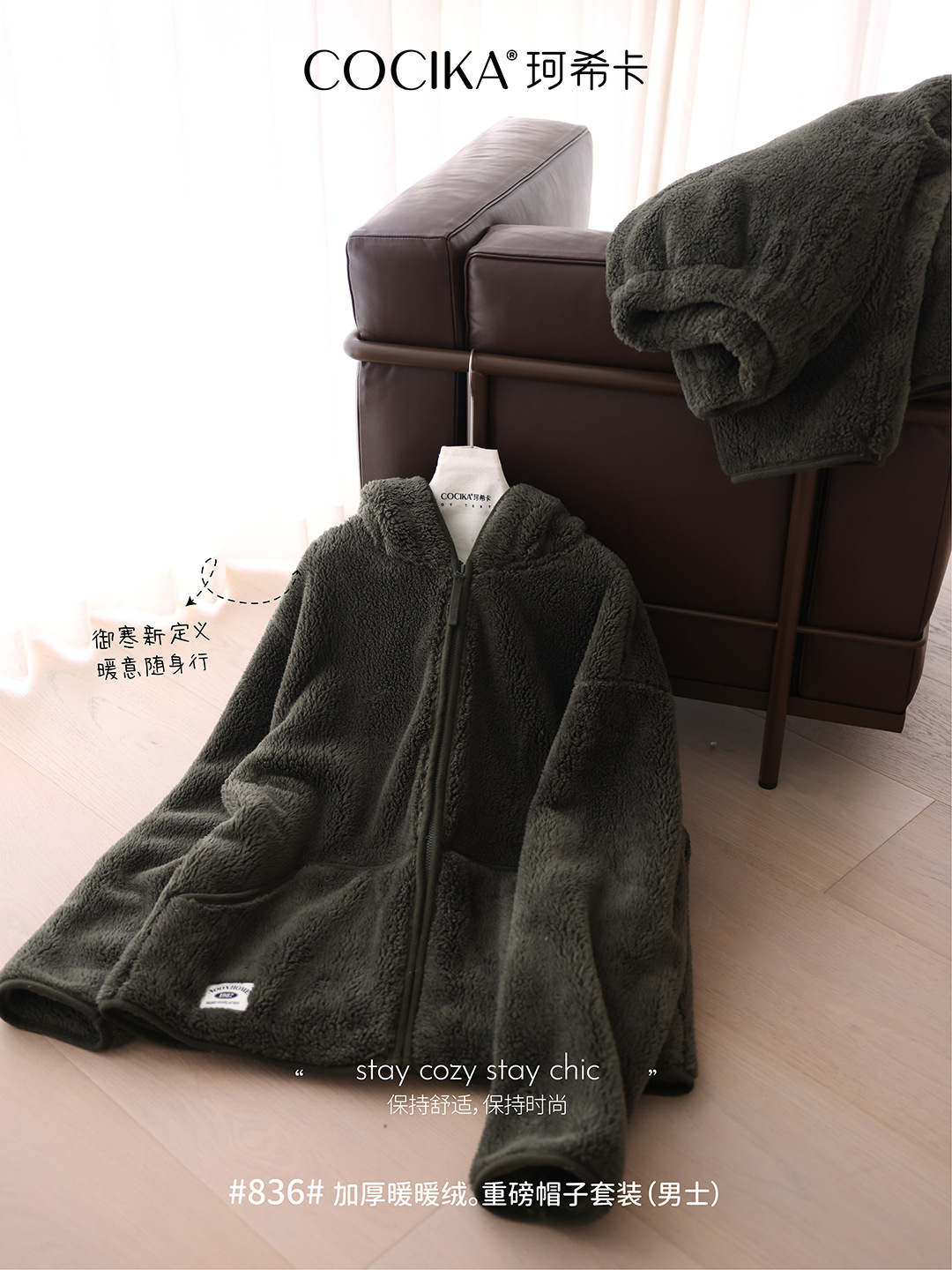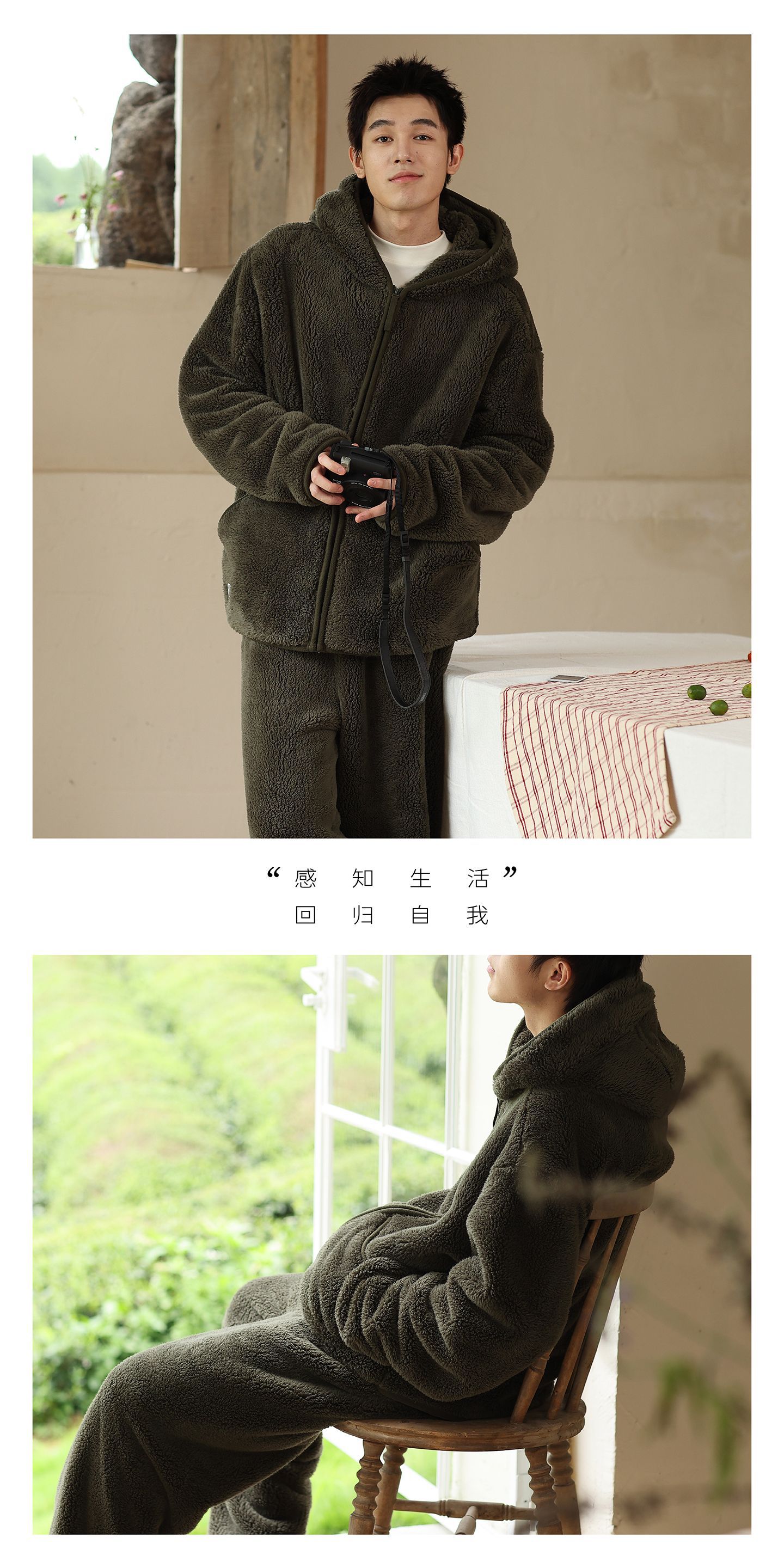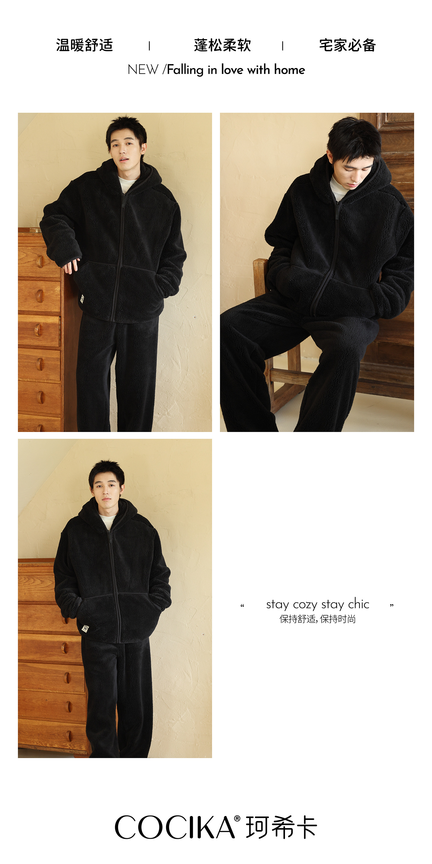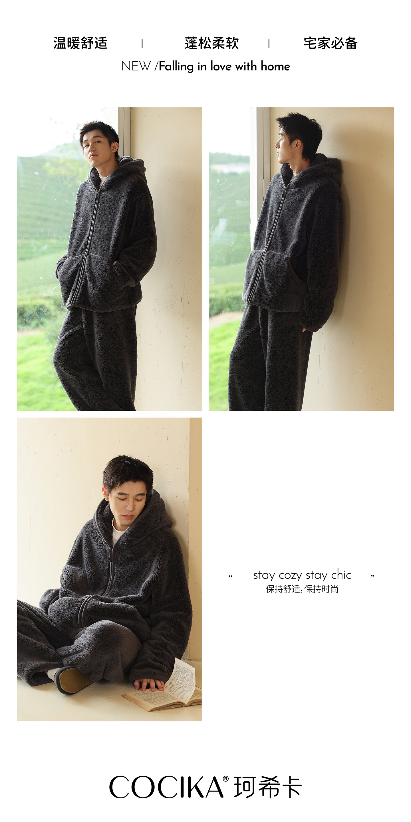 가을과 겨울 남자의 두꺼운 따뜻한 벨벳 모자를 세트 단색 간단한 잠옷 느슨한 캐주얼 홈 옷스토어 가기