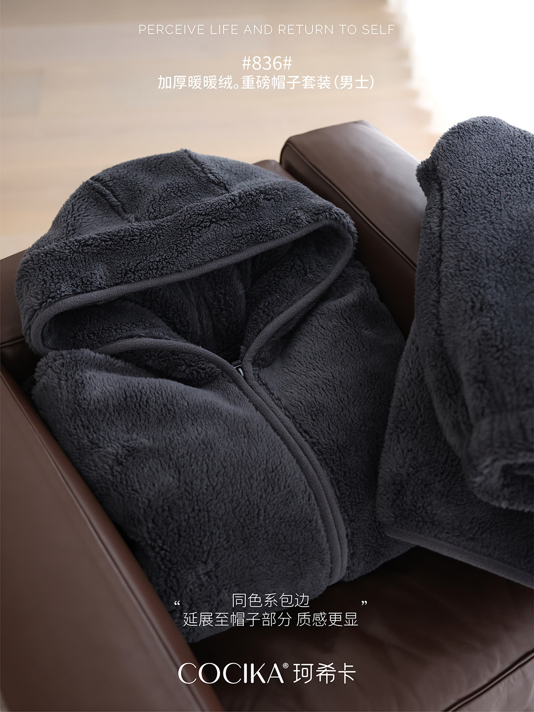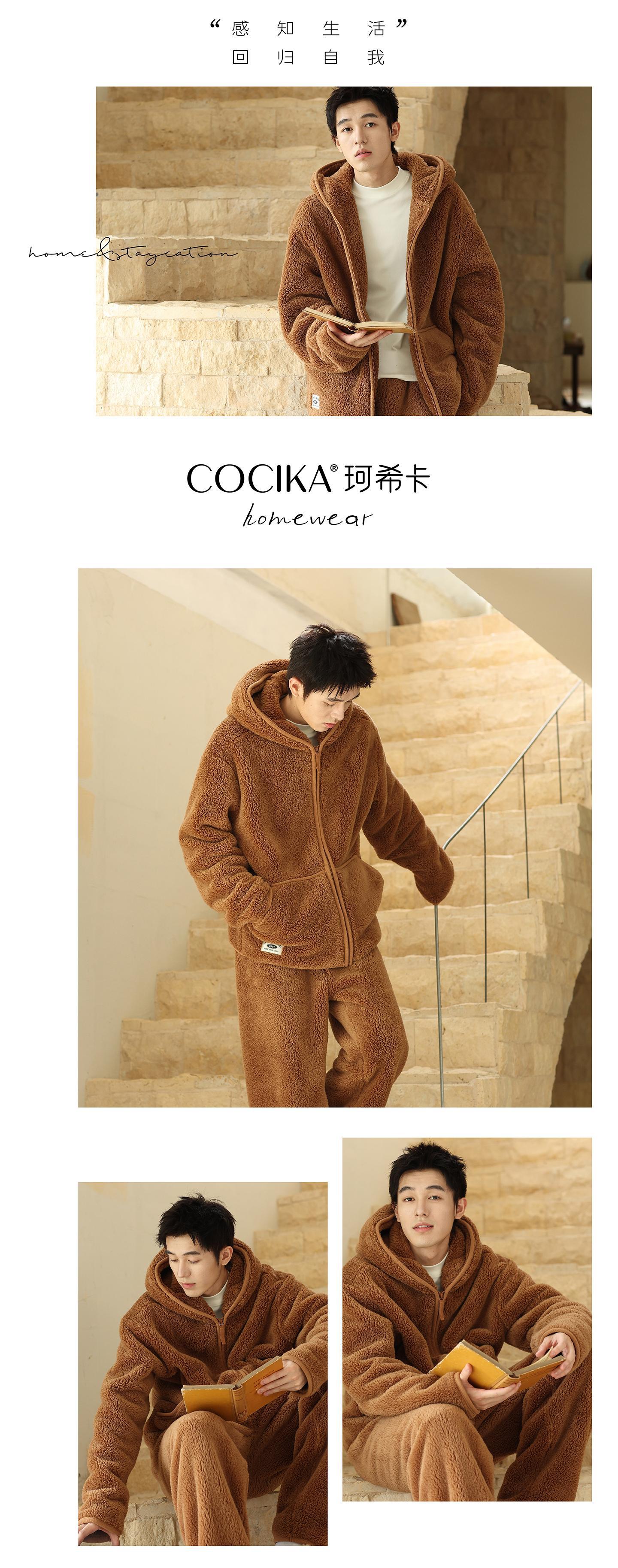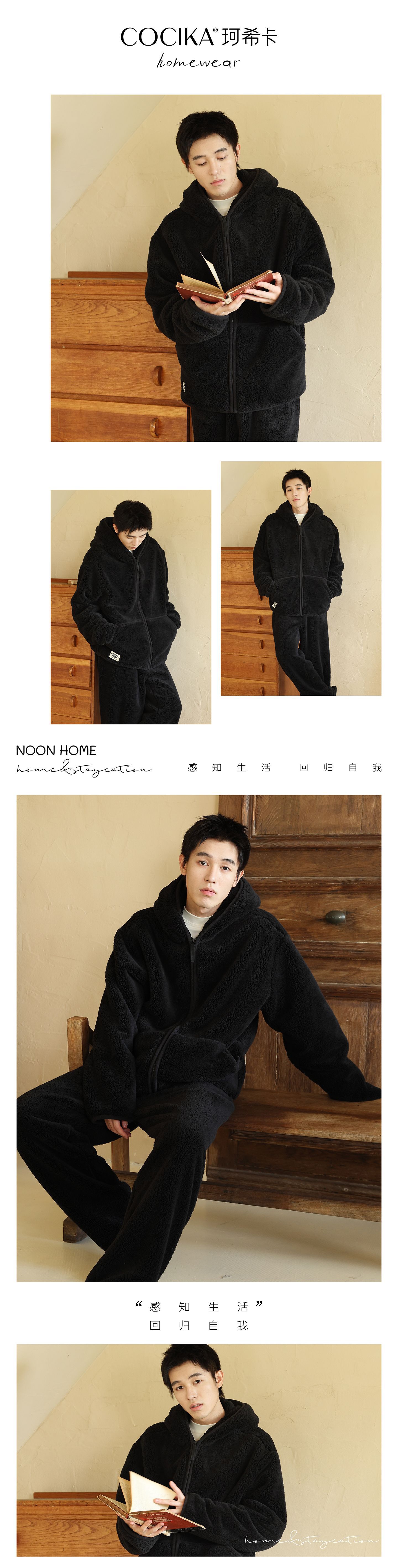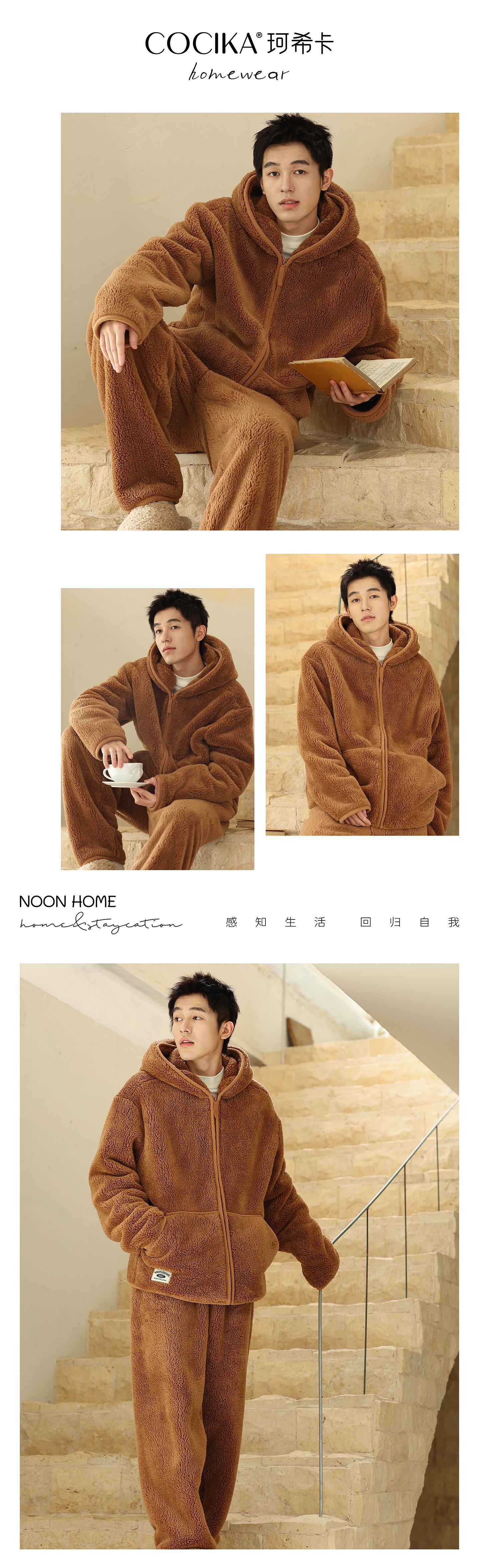 가을과 겨울 남자의 두꺼운 따뜻한 벨벳 모자를 세트 단색 간단한 잠옷 느슨한 캐주얼 홈 옷