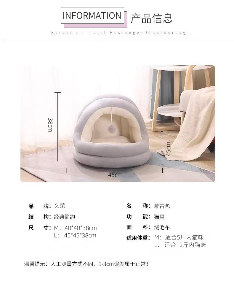 유르트 고양이 둥지 사계절 유니버설 겨울 따뜻한 두꺼운 애완 동물 둥지 반 동봉 더러운 저항 고양이 집 고양이 집
