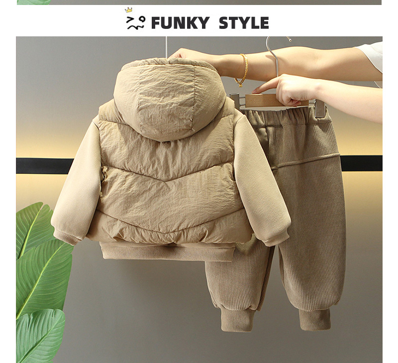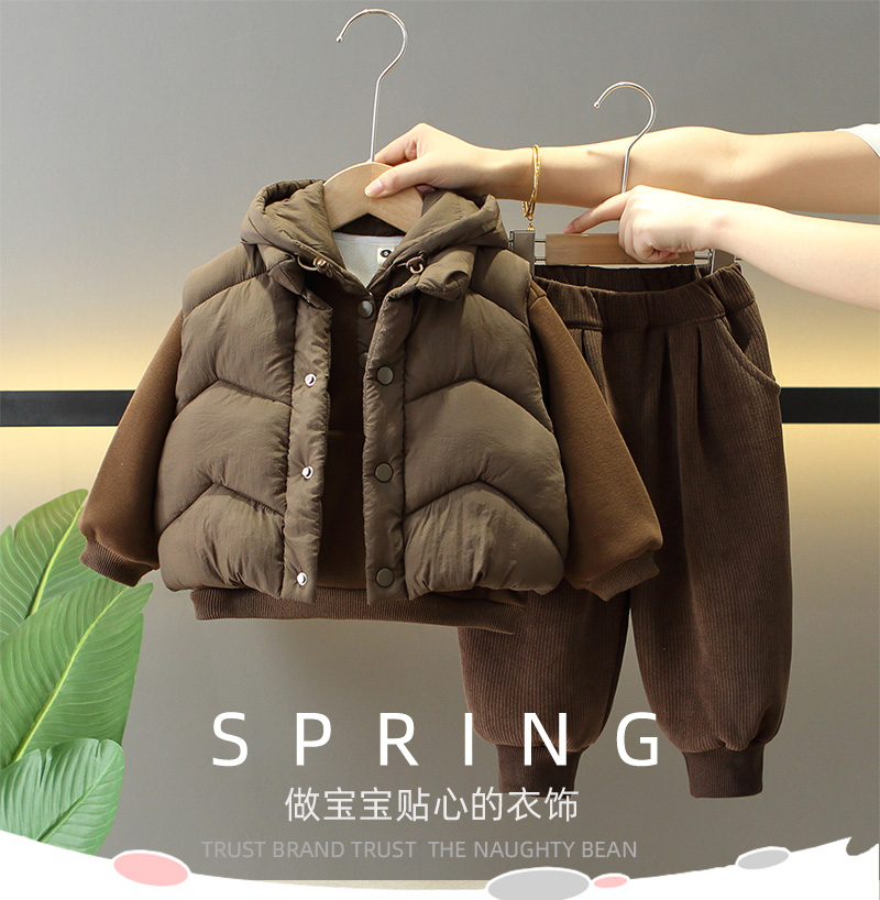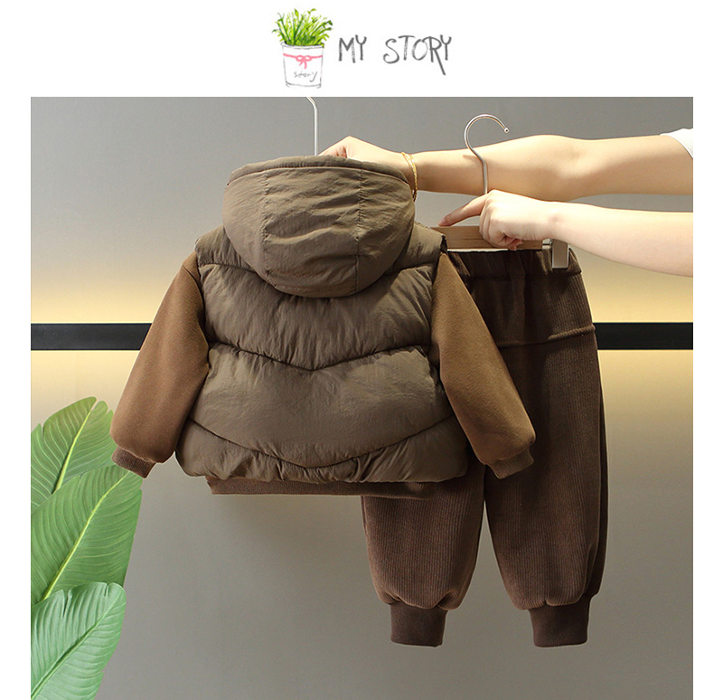 남아 겨울복 세트 2025 신상 아동 패션 플러스 벨벳 두꺼운 겨울옷 아기 한국 스타일 조끼 3종 세트 트렌디스토어 가기
