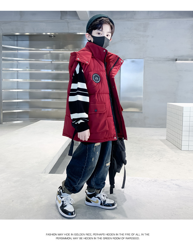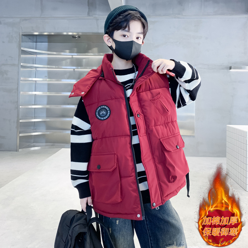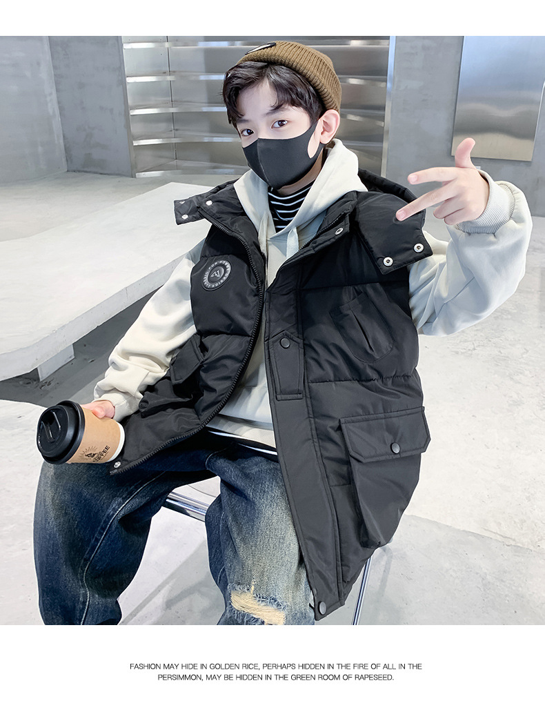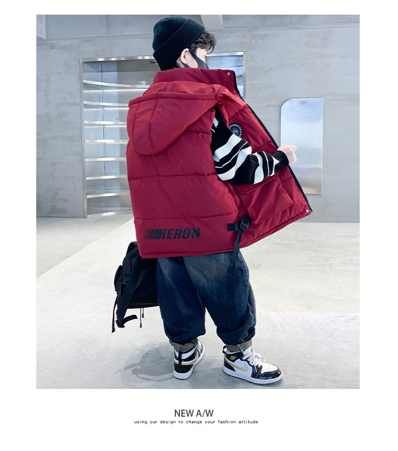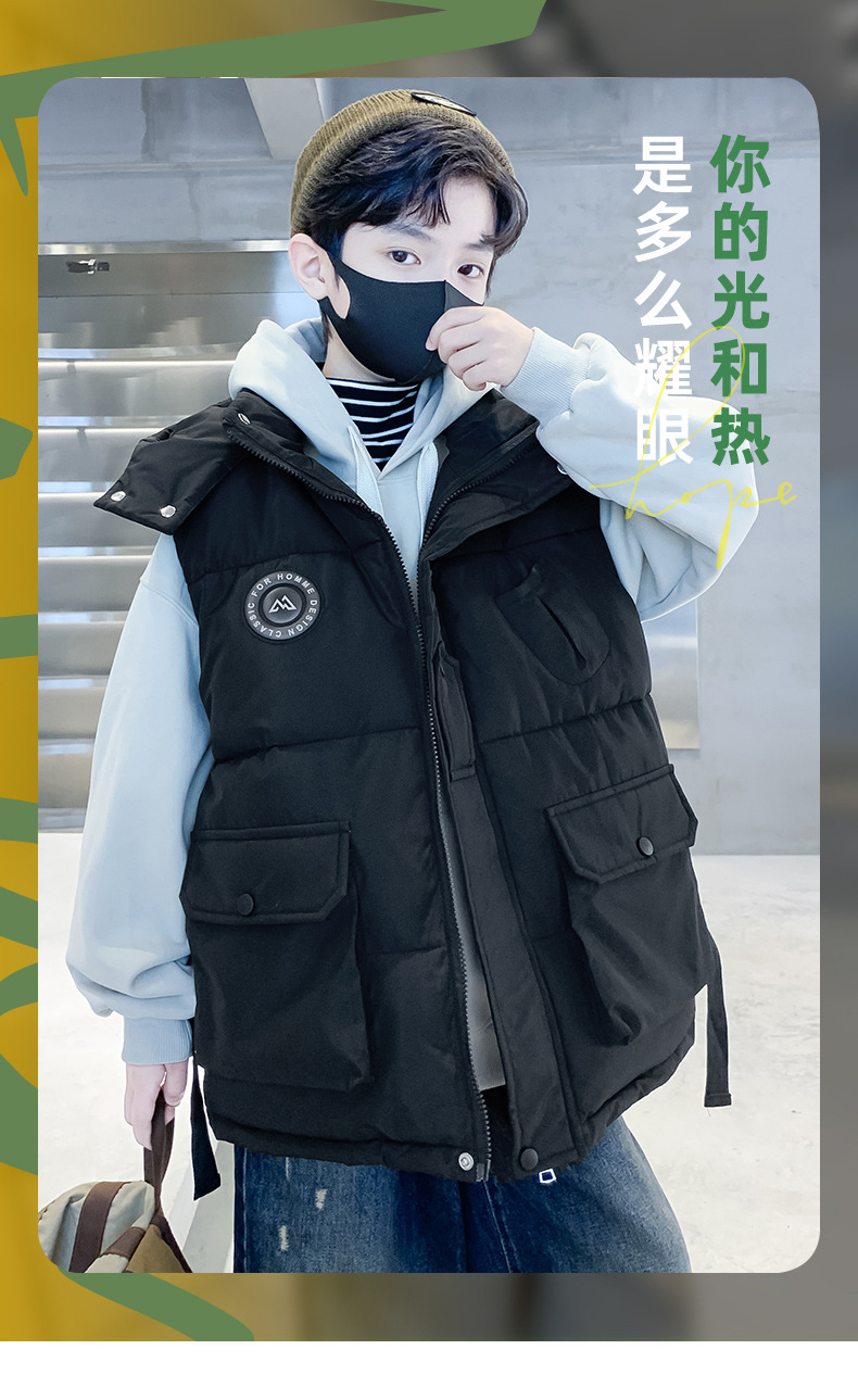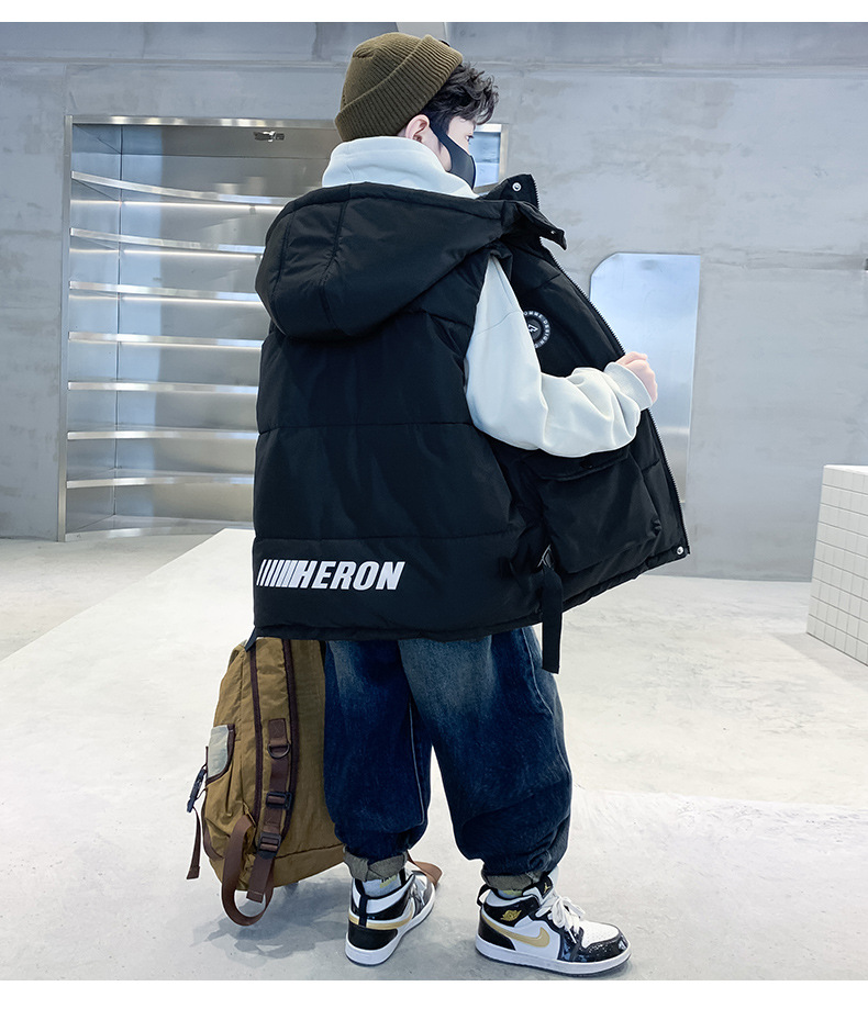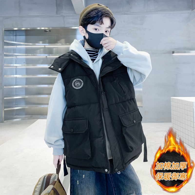 소년의 두꺼운 조끼 가을, 겨울 스타일 중대형 어린이 겨울 의류 소년의 다운 코튼 멋진 겨울 조끼 2025 새로운 스타일