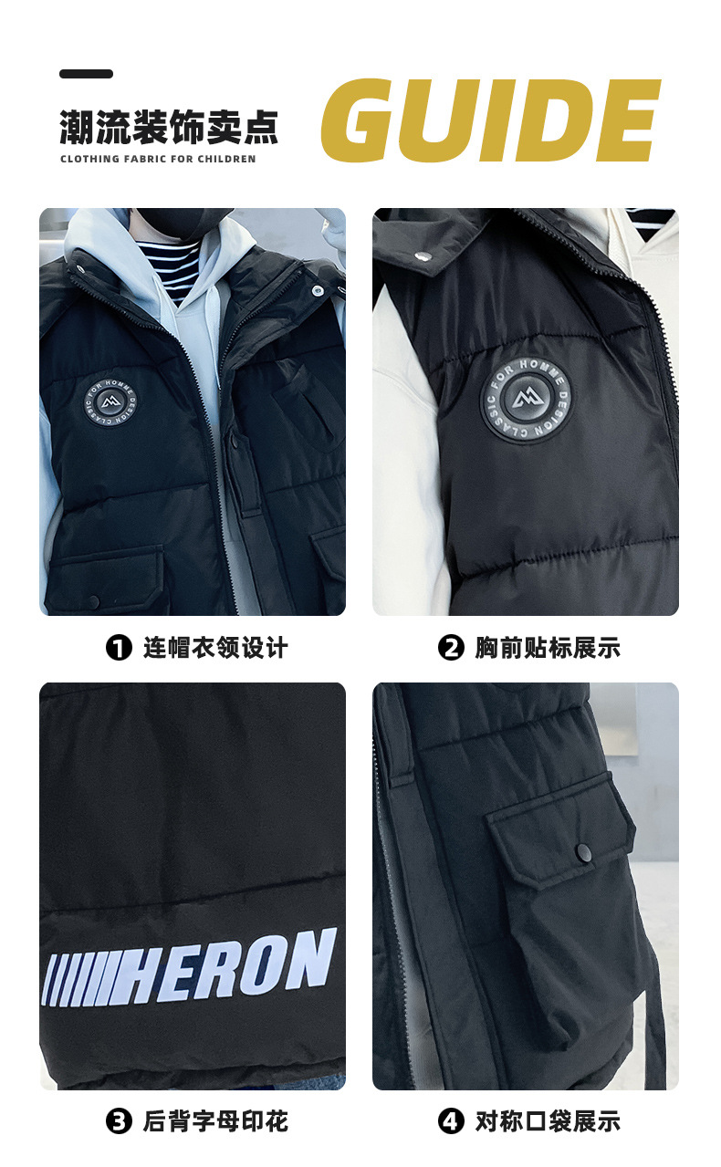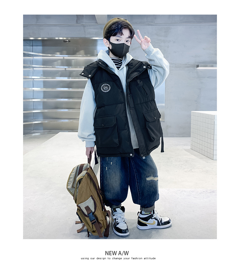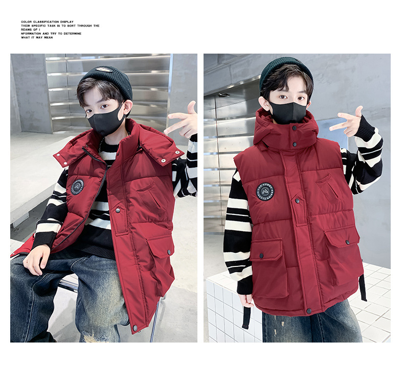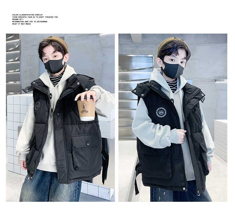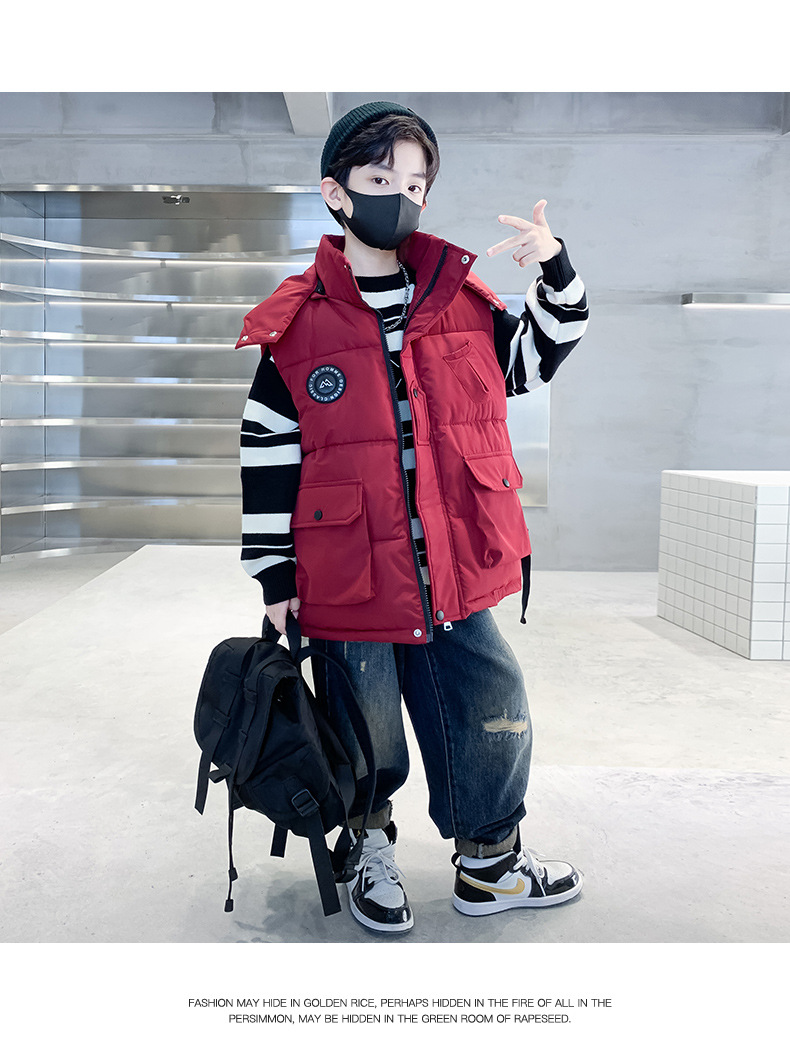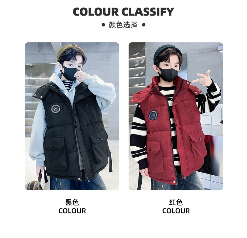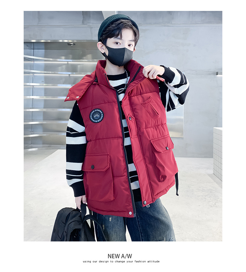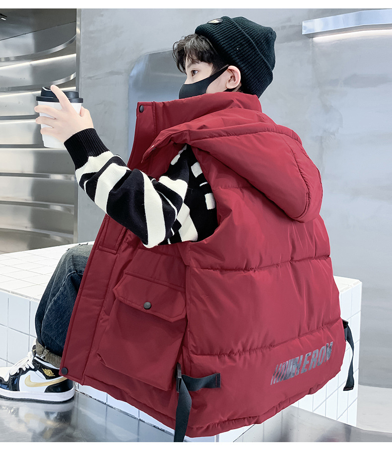 소년의 두꺼운 조끼 가을, 겨울 스타일 중대형 어린이 겨울 의류 소년의 다운 코튼 멋진 겨울 조끼 2025 새로운 스타일