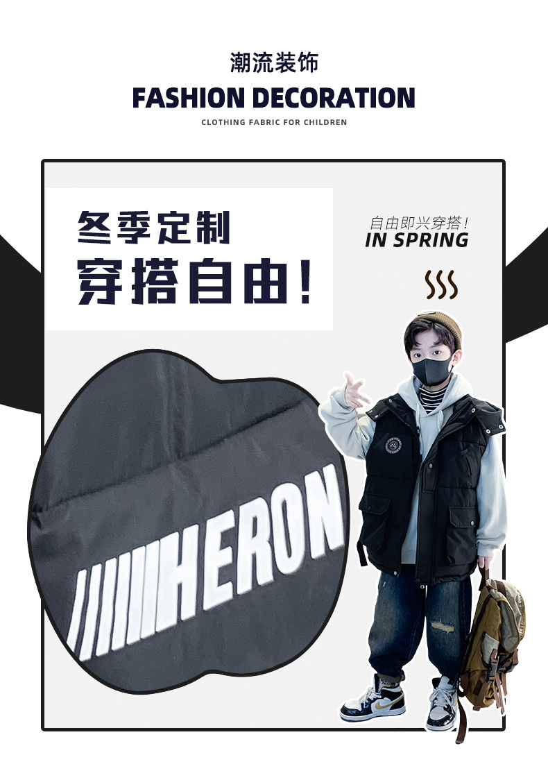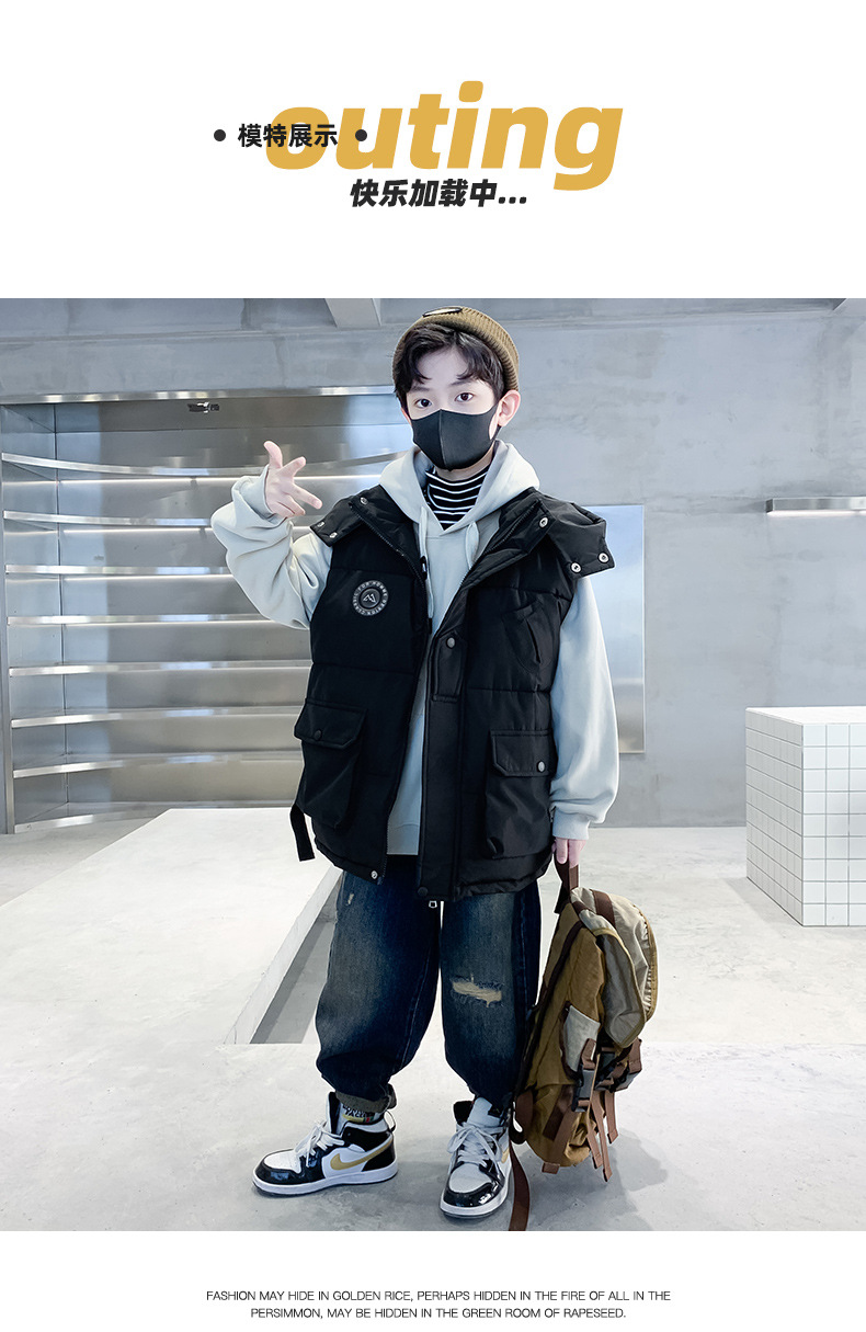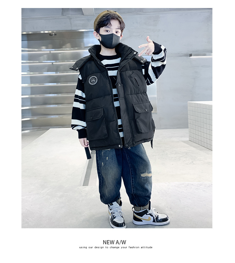 소년의 두꺼운 조끼 가을, 겨울 스타일 중대형 어린이 겨울 의류 소년의 다운 코튼 멋진 겨울 조끼 2025 새로운 스타일스토어 가기