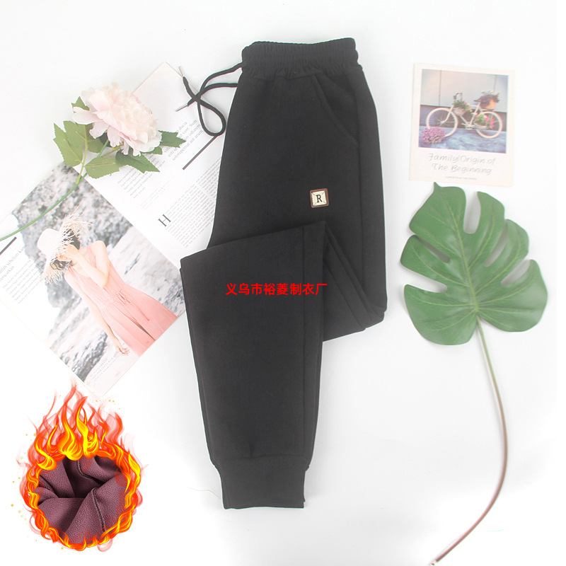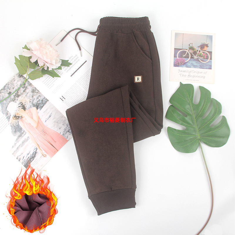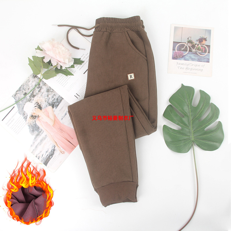 가을 겨울 목련털 하이웨이스트 기모 스웨트팬츠 여성용 얇은 벨벳 밑단 조절 방풍 바지 여성용 루즈핏 보온 바지