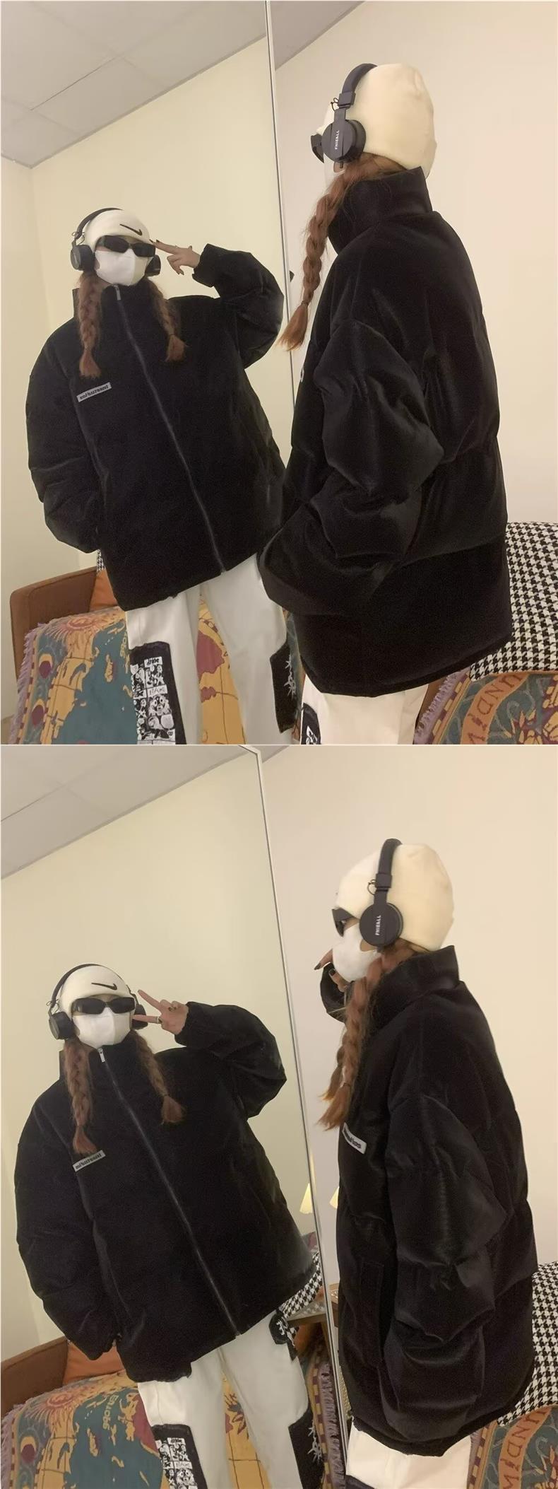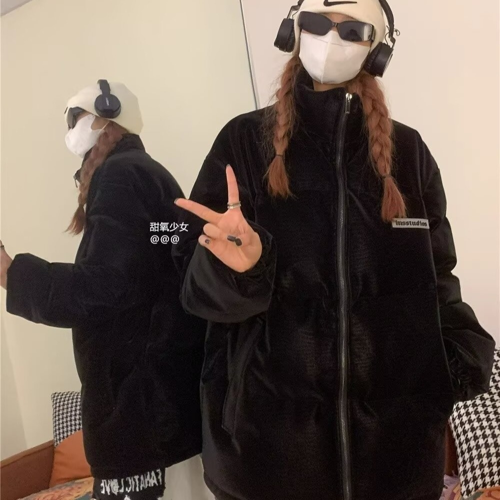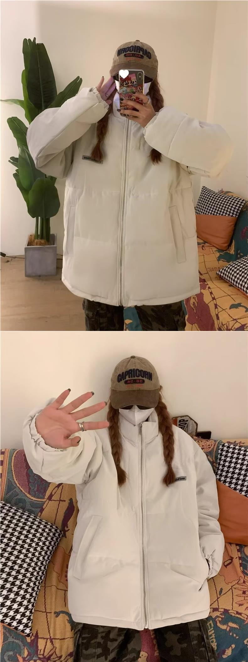 미국식 하이 스트리트 내셔널 패션 미국식 코튼 패딩 코트-남성과 여성을위한 패딩 코트 가을 및 겨울 두꺼운 코튼 패딩 코트 커플 탑 브레드 코트스토어 가기