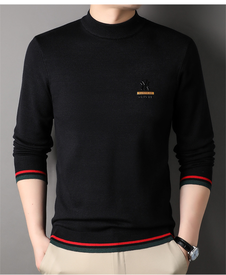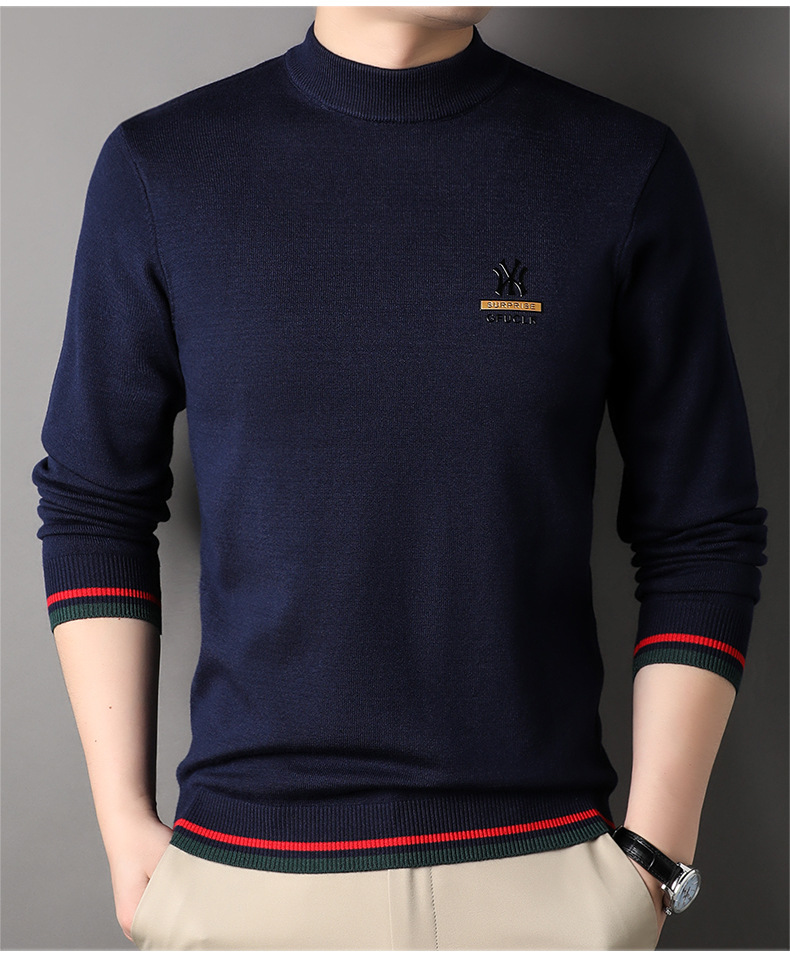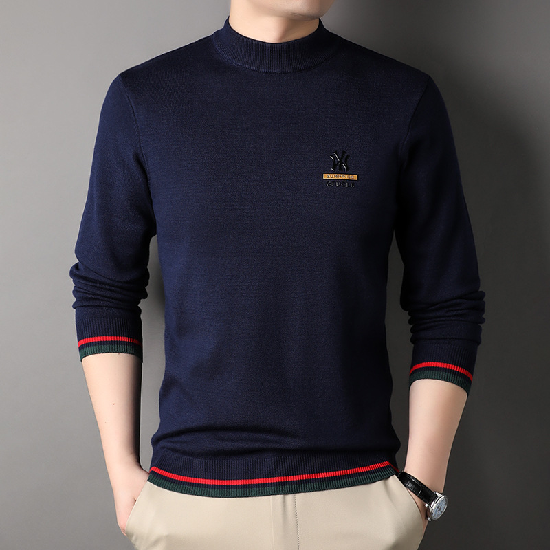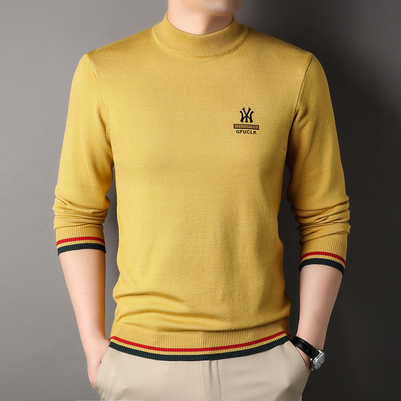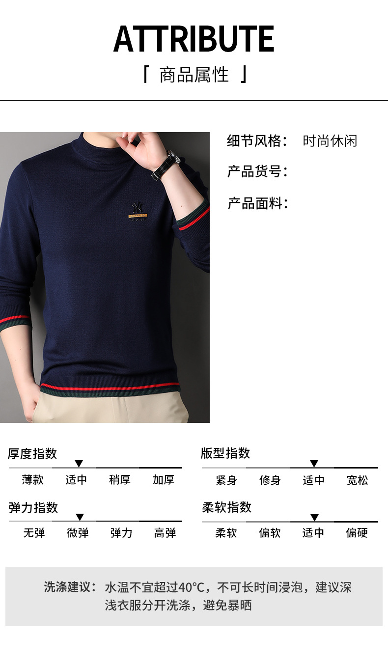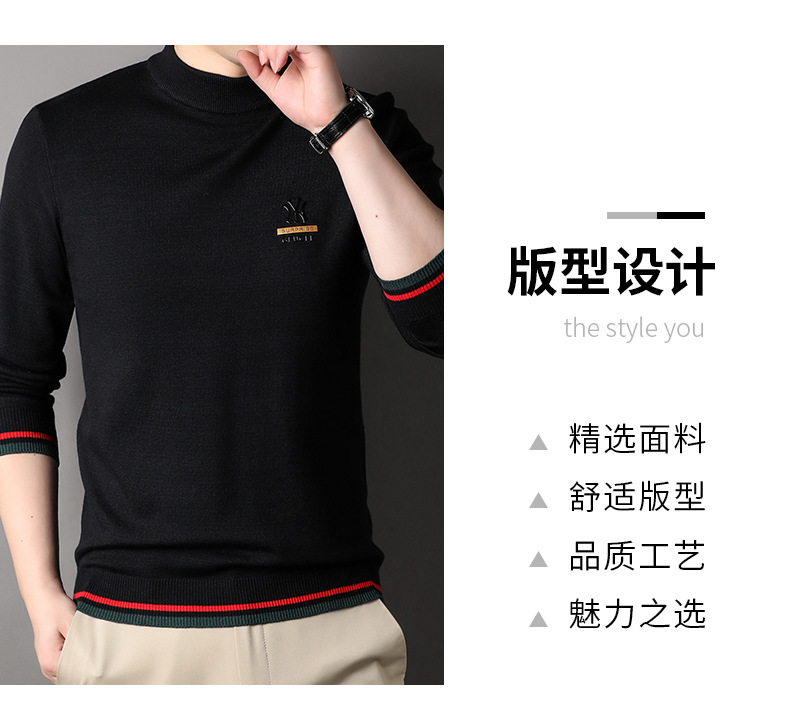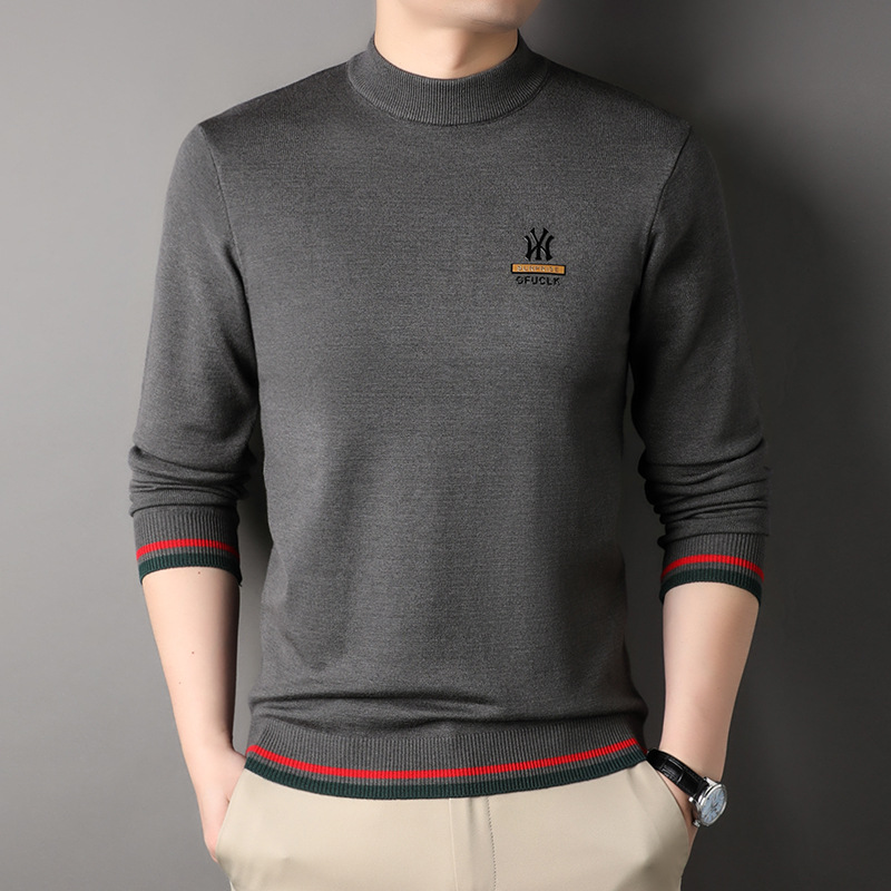 남자 하프 터틀넥 가을과 겨울 하이 엔드 핫 스탬핑 자카드 니트 스웨터 트렌디 브랜드 올 매치 중년 및 청년 따뜻한베이스 셔츠 트렌디스토어 가기