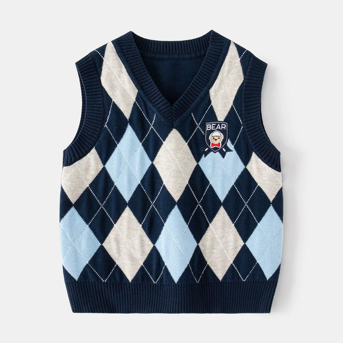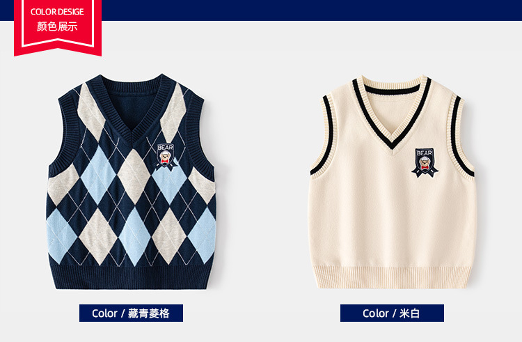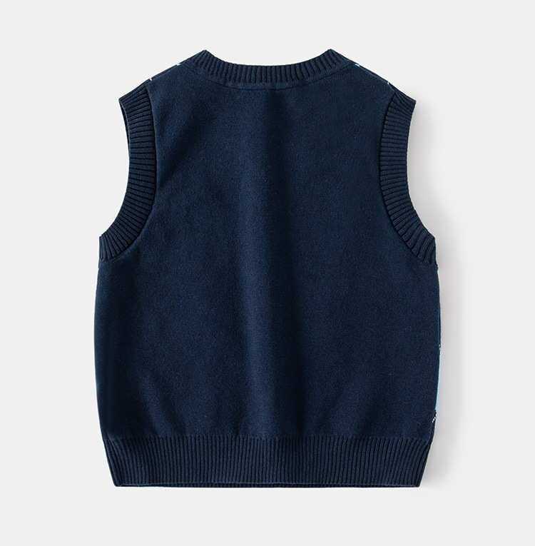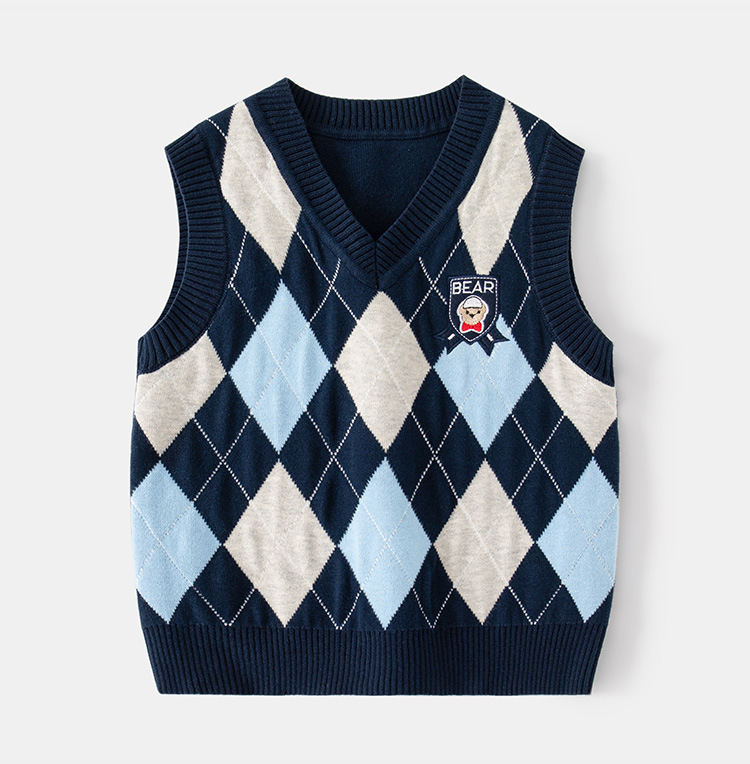 도매 남아용 이중 레이어 스웨터 조끼 플러스 벨벳 2025 봄 가을 어린이 캐주얼 패션 체크 무늬 민소매 조끼스토어 가기