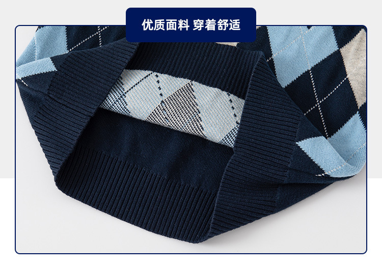도매 남아용 이중 레이어 스웨터 조끼 플러스 벨벳 2025 봄 가을 어린이 캐주얼 패션 체크 무늬 민소매 조끼