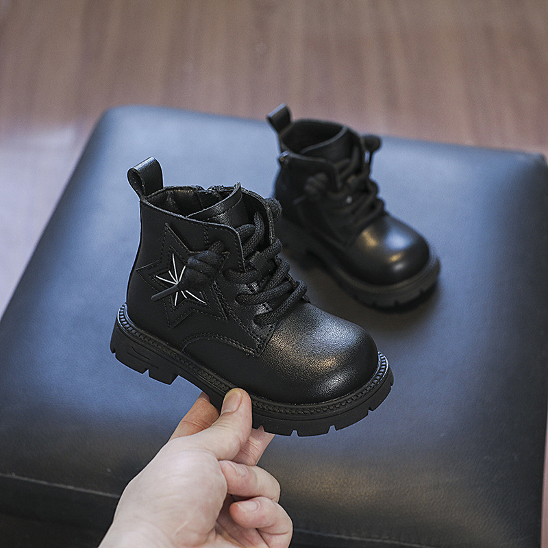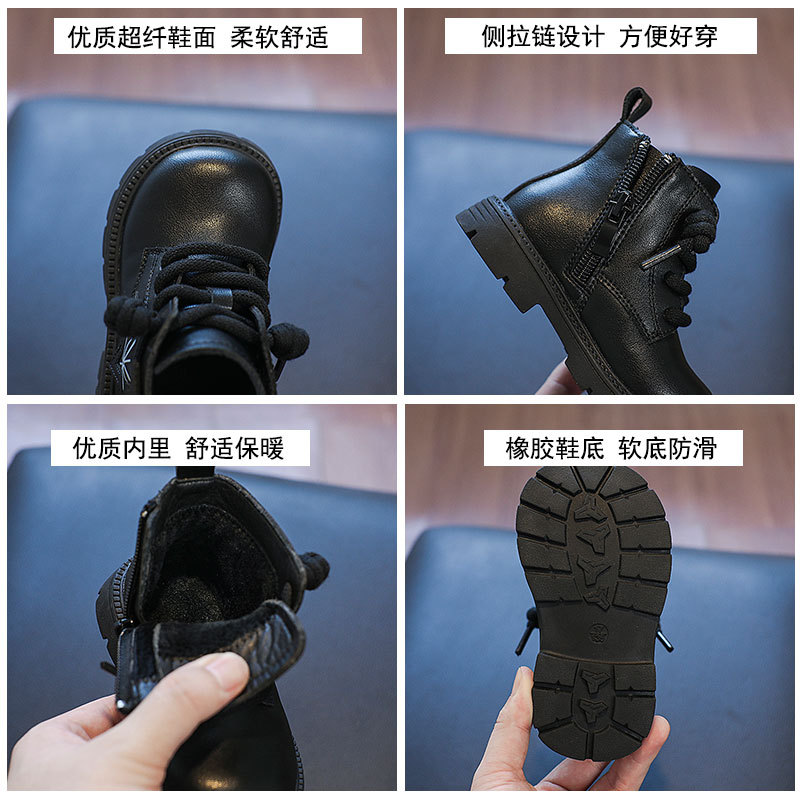 가을과 겨울 스타 어린이 마틴 부츠 레트로 영국 소녀 부츠 어린이 편안한 부드러운 바닥 소년 사이드 지퍼 가죽 부츠스토어 가기
