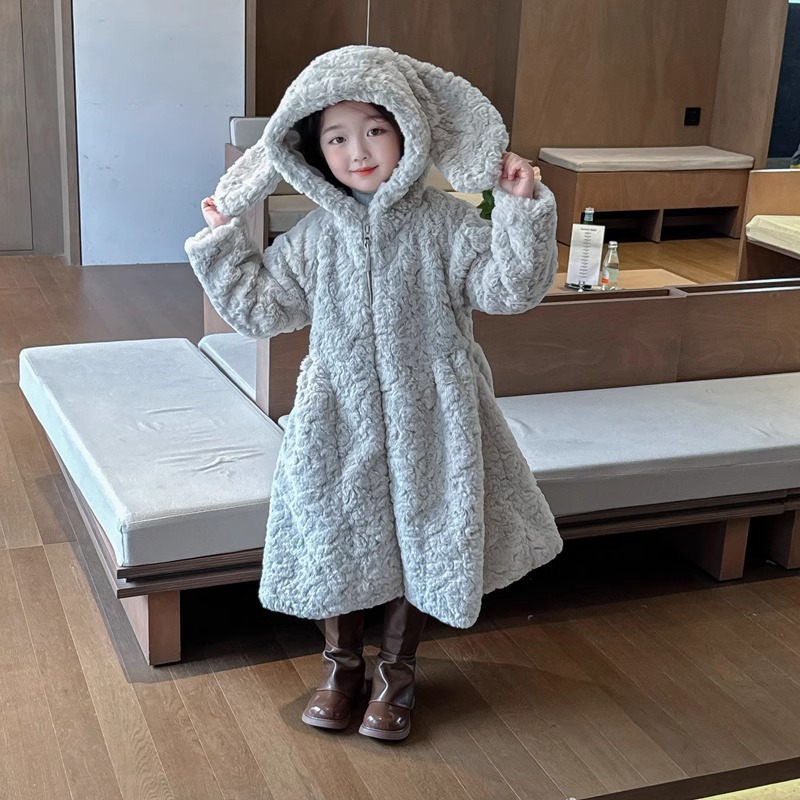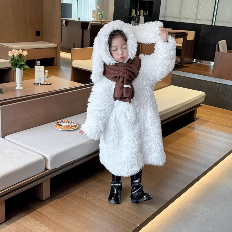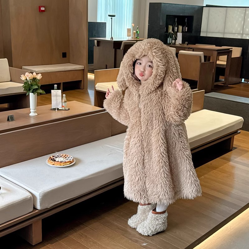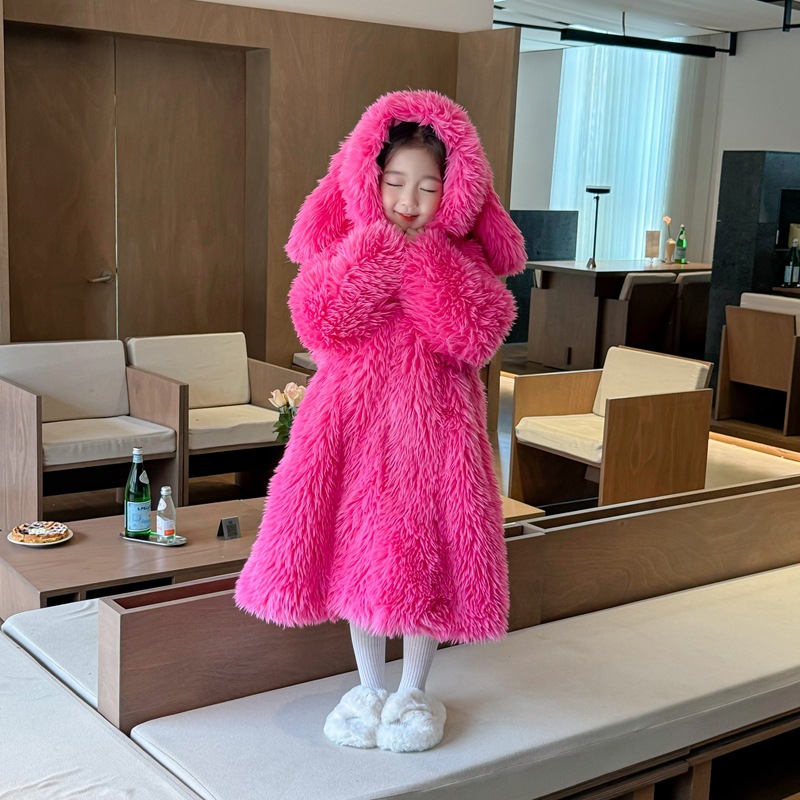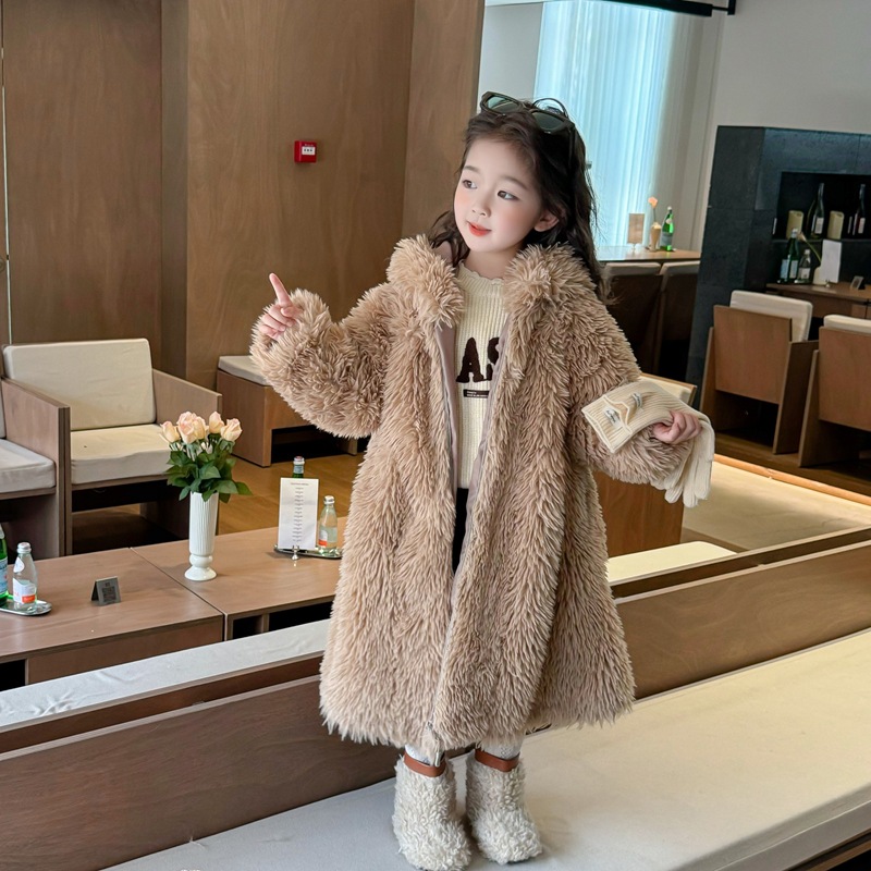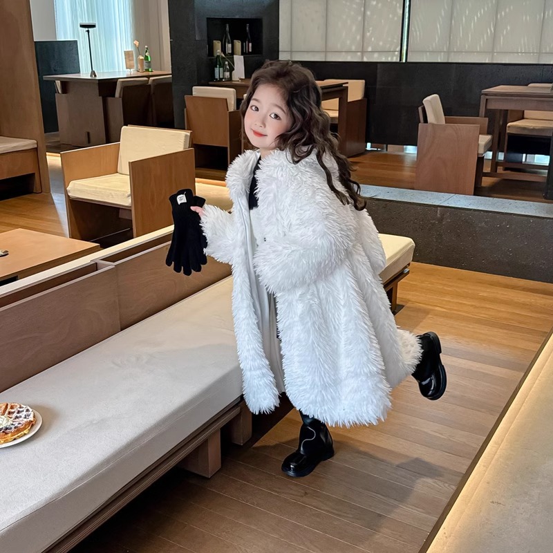 2025 겨울 신상 여아 인조 모피 코트 아동 중간 길이 두꺼운 면 코트 귀여운 털 코트