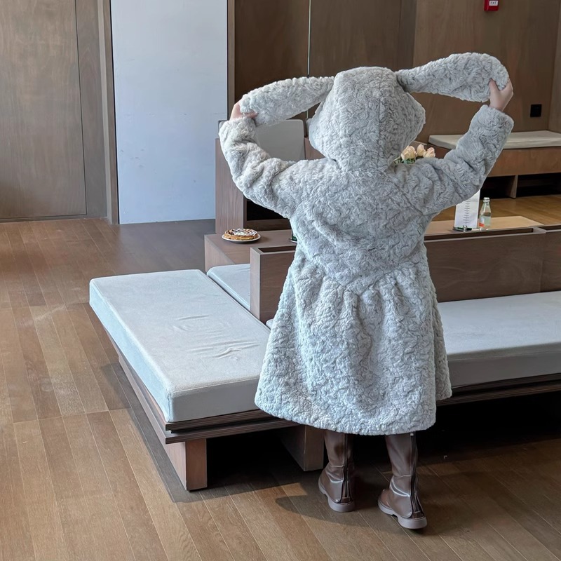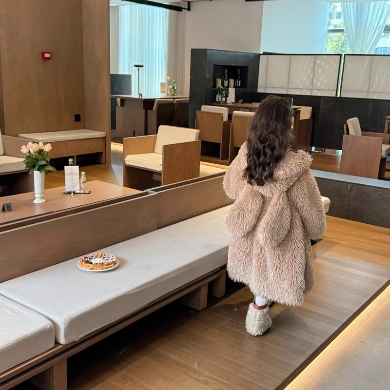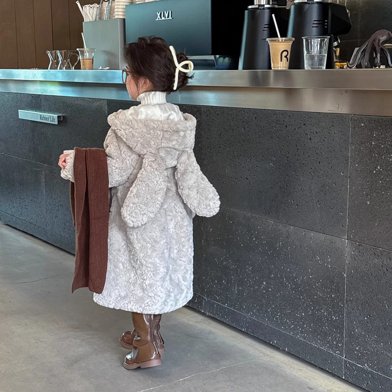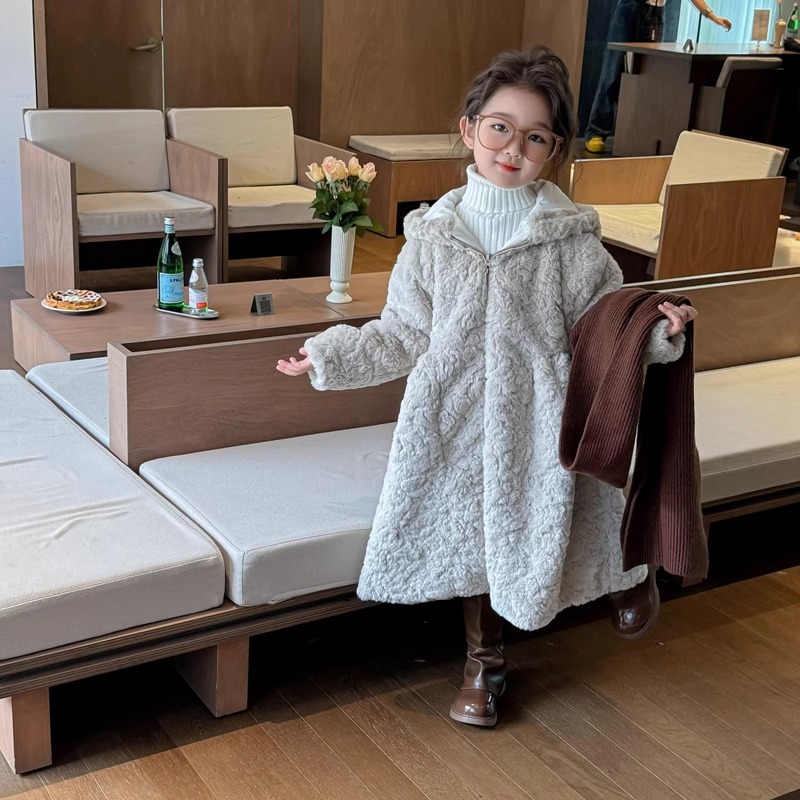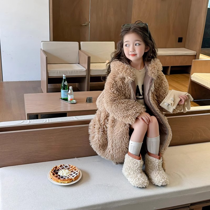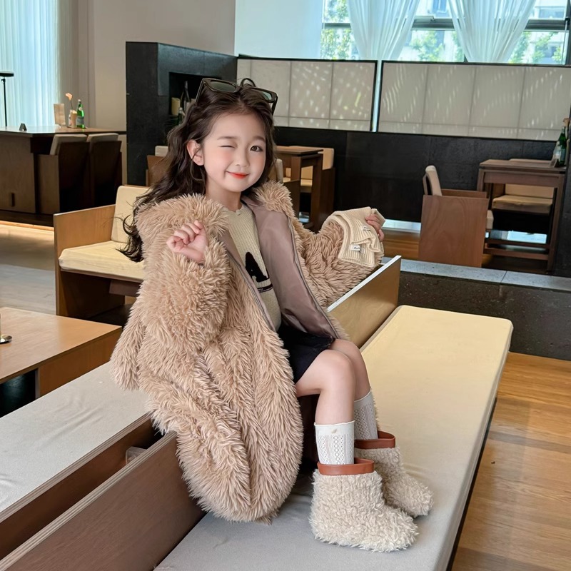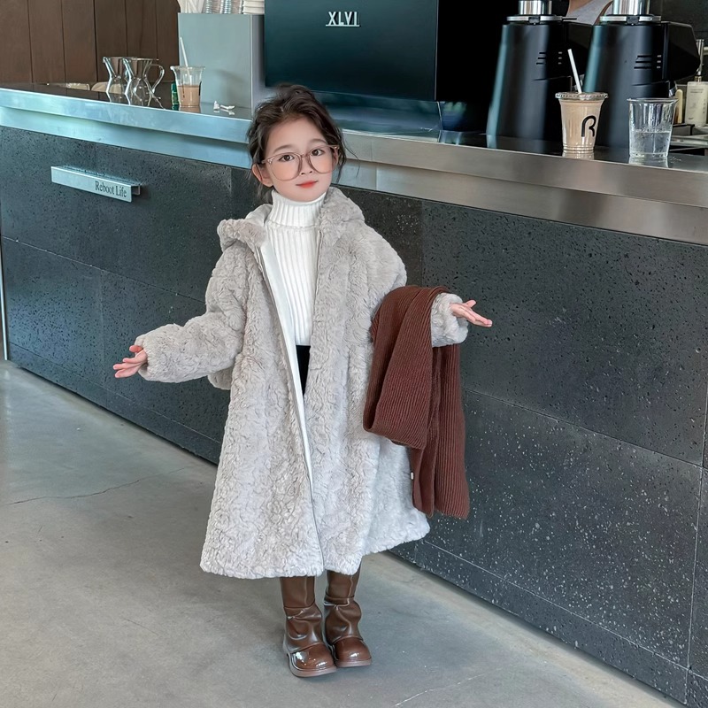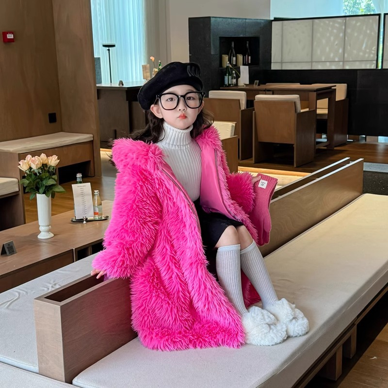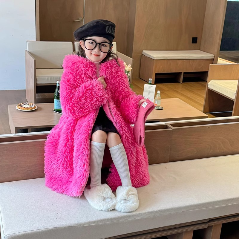 2025 겨울 신상 여아 인조 모피 코트 아동 중간 길이 두꺼운 면 코트 귀여운 털 코트스토어 가기