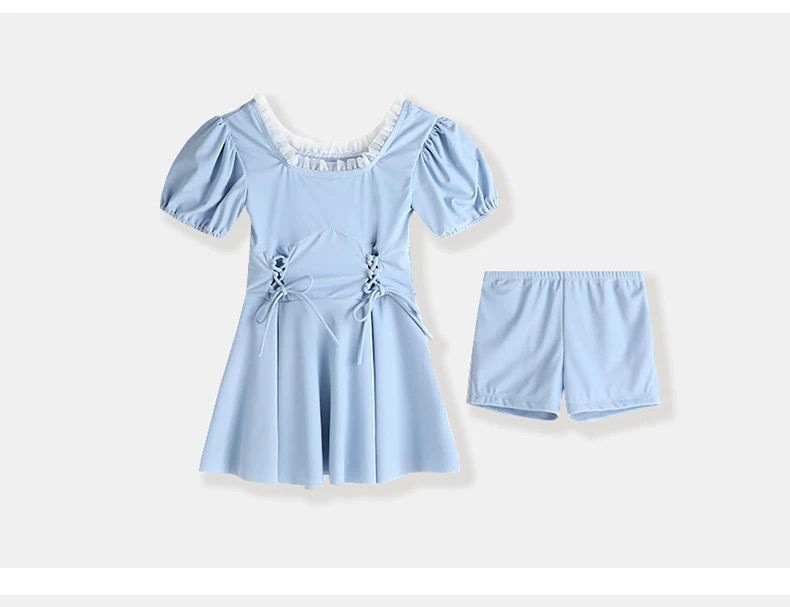 여자 원피스 수영복 세트 여름 2025 새로운 여자 한국어 버전 Drawstring 캐주얼 작은 신선한 스커트 수영복스토어 가기
