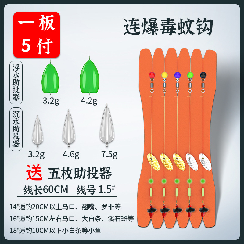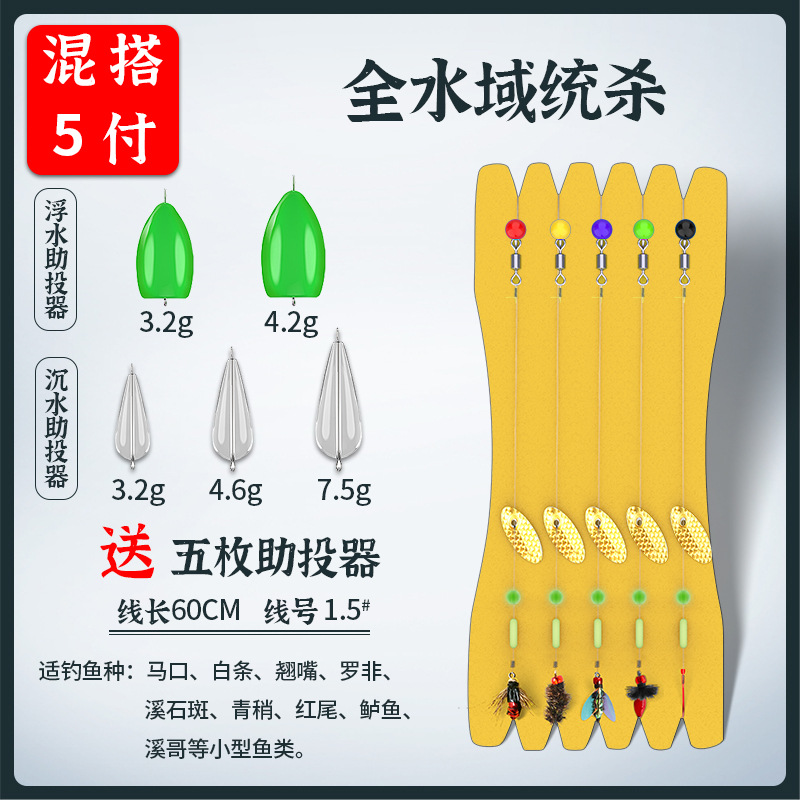 • 초보자 모델 5개 [다양한 물고기 종 모두 죽음]에는 투척 보조 장치가 5개 포함되어 있습니다.