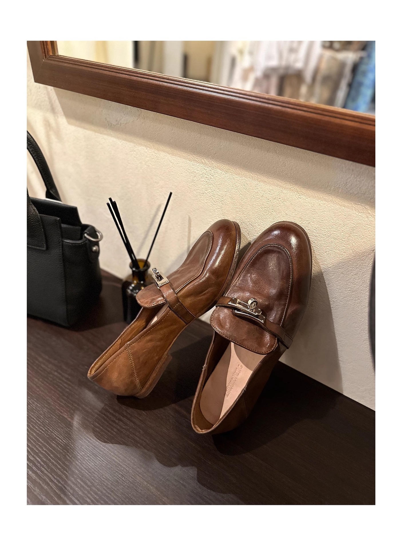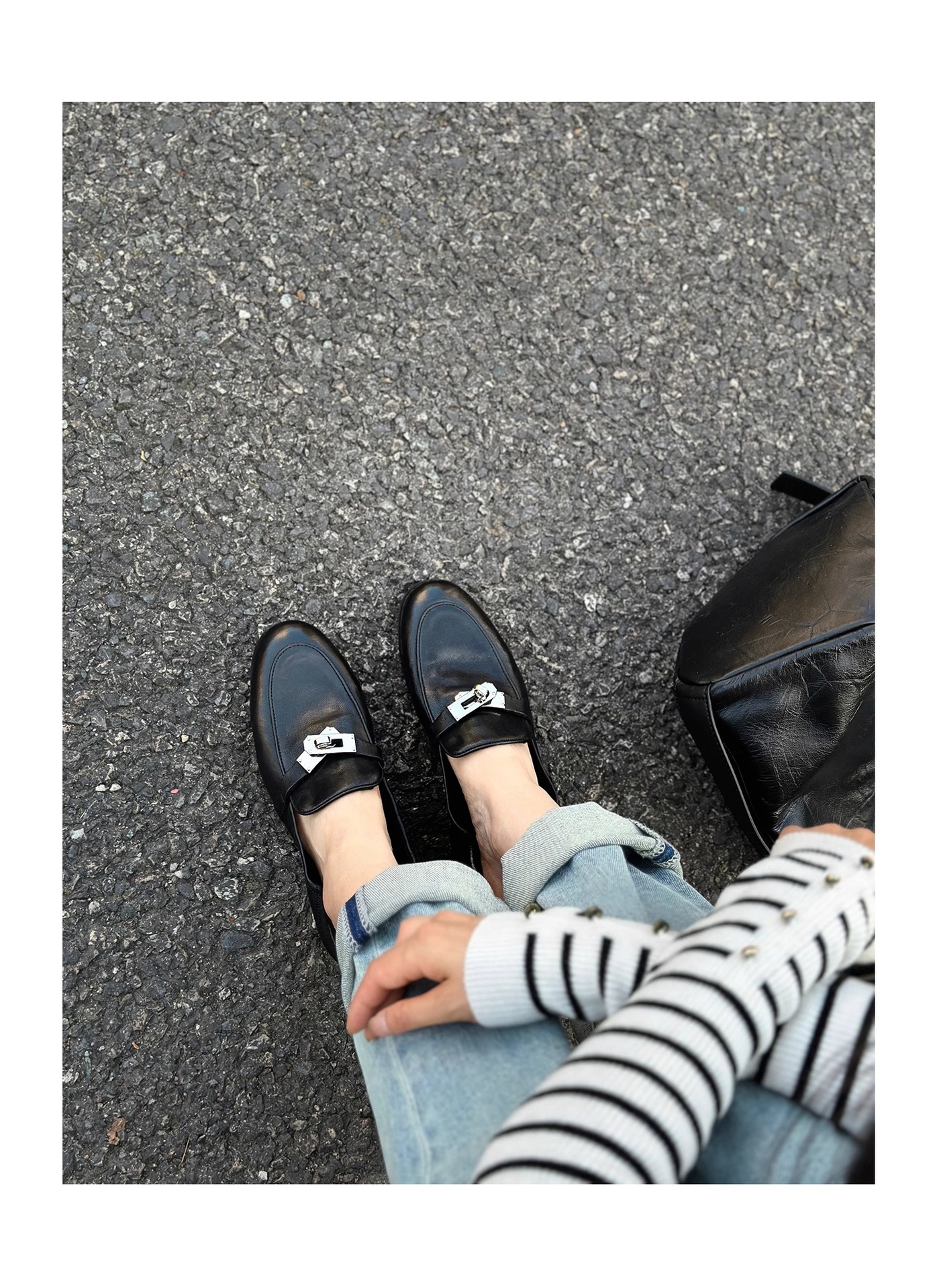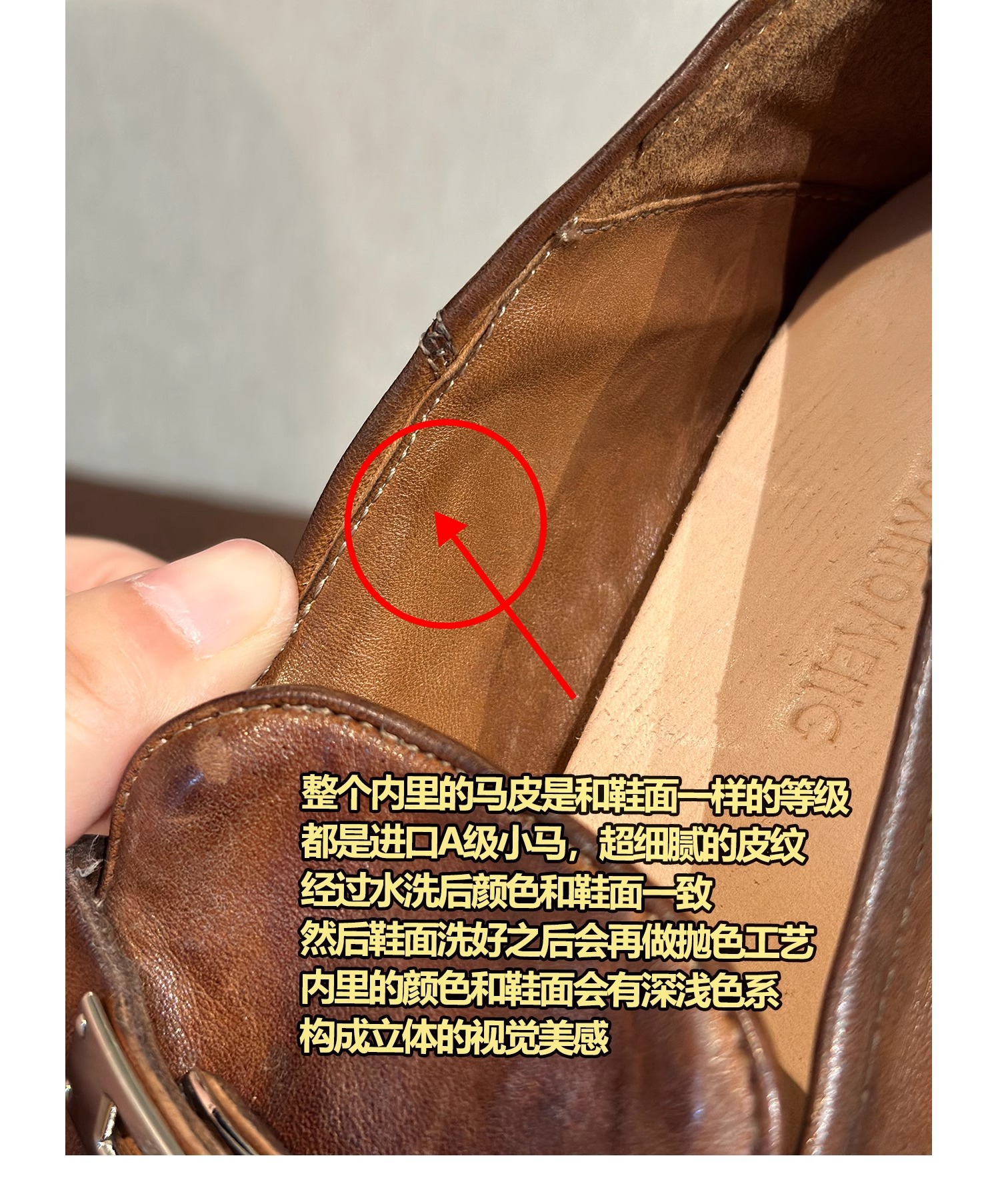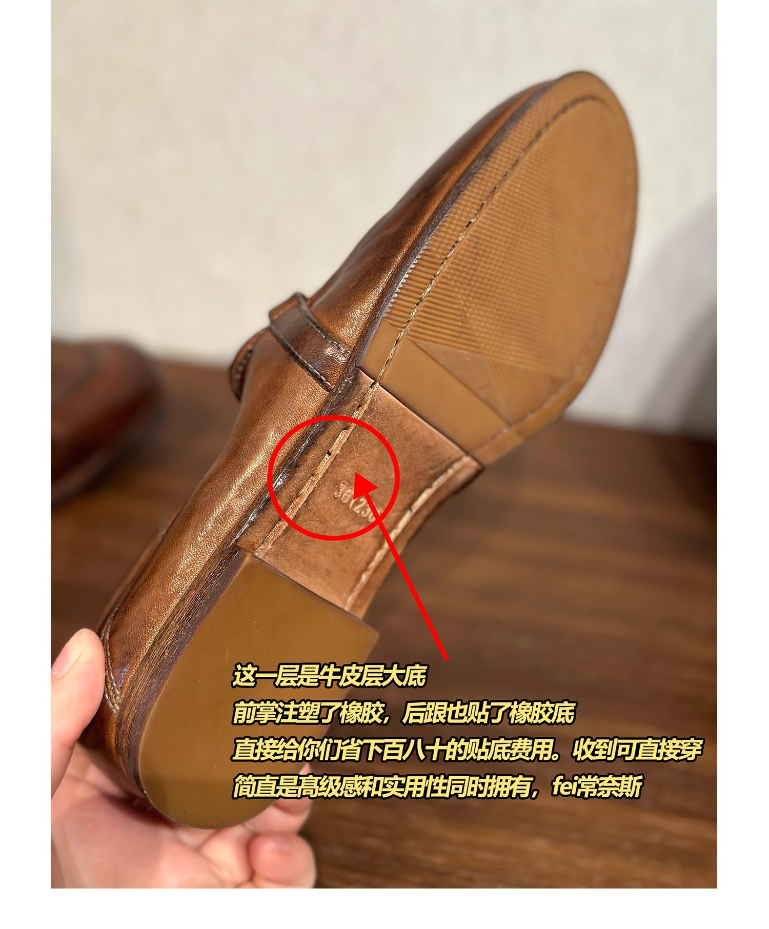 Cowhide 버전 빈티지 세척 말 가죽 수제 로퍼 여성 클래식 버클 작은 가죽 신발 오래 된 낮은 뒤꿈치 정품 가죽 신발스토어 가기