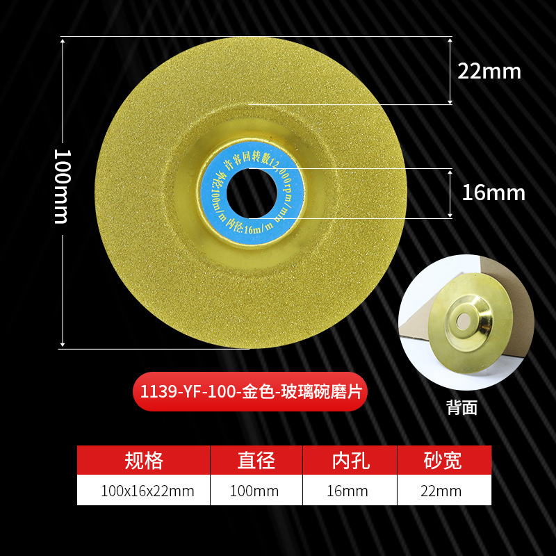 • 1139-YF-100-금 유리 그릇 연삭 디스크