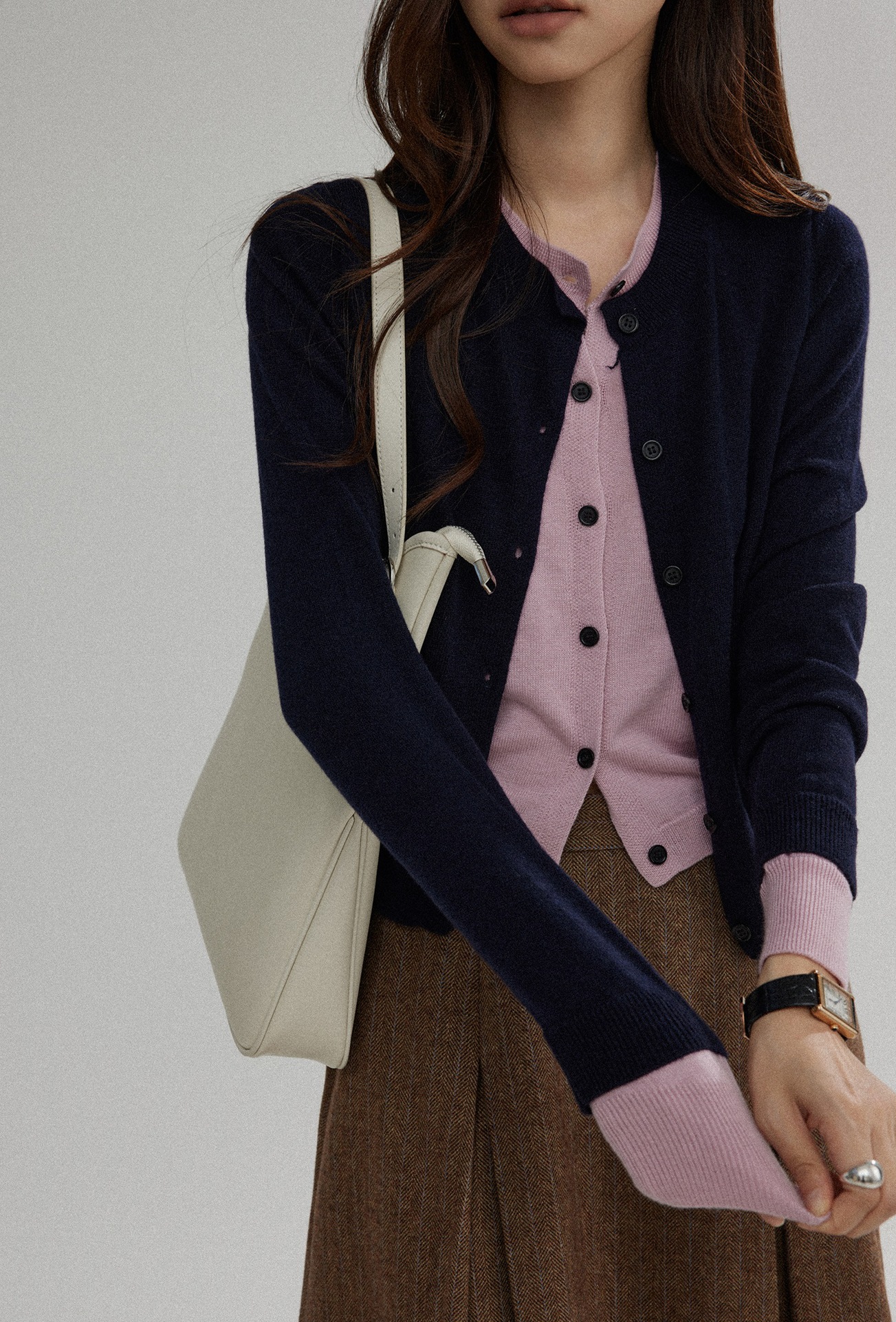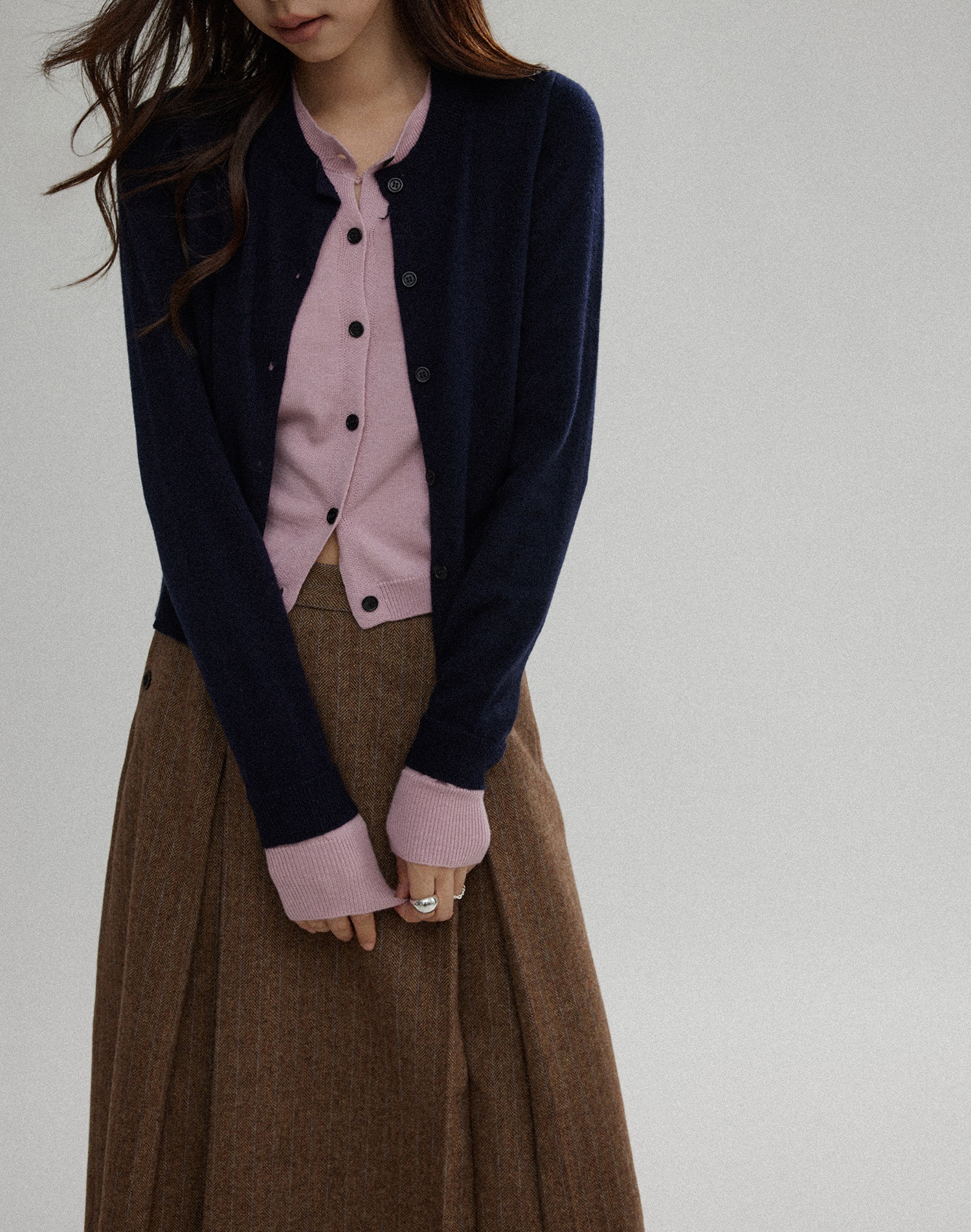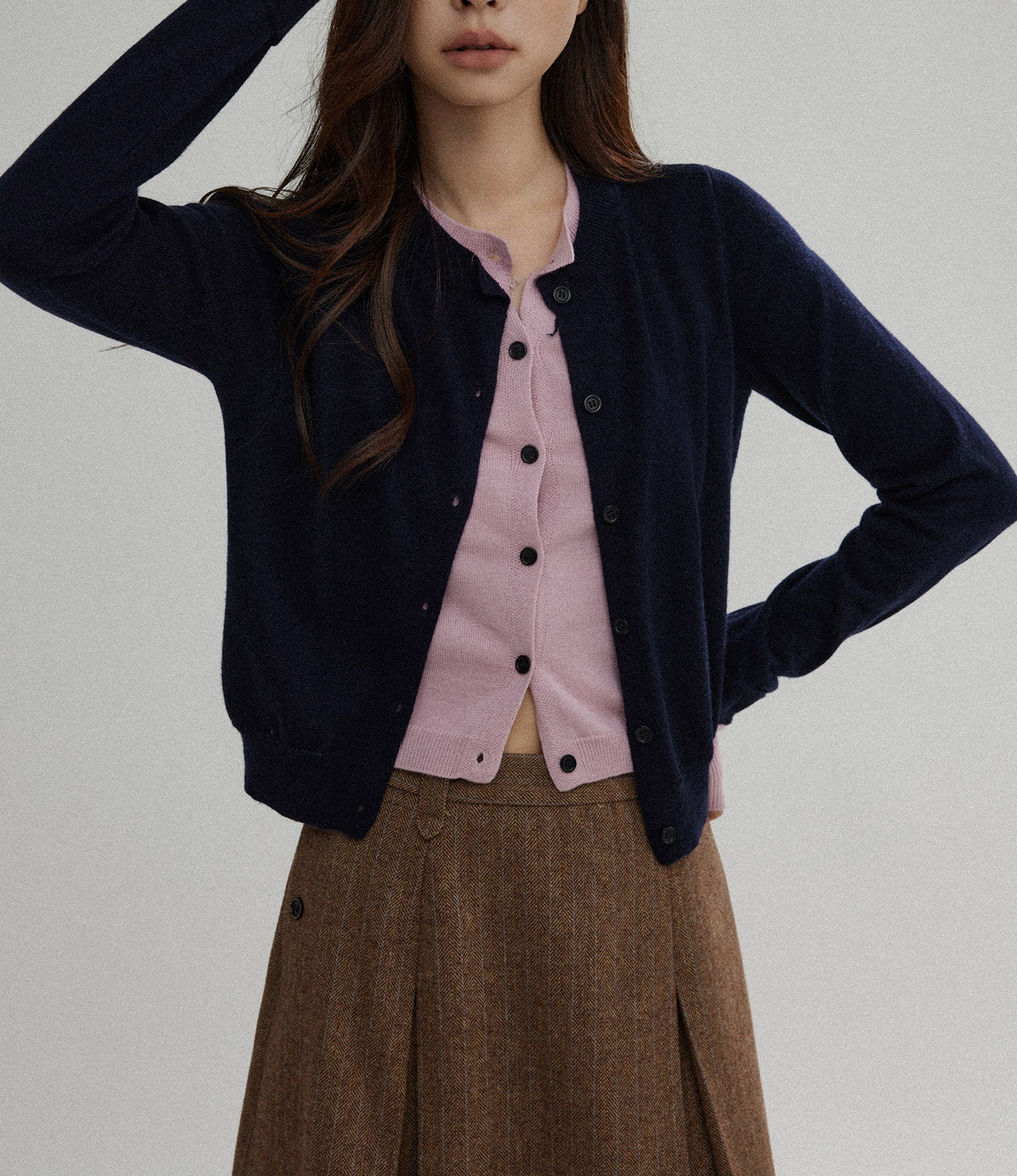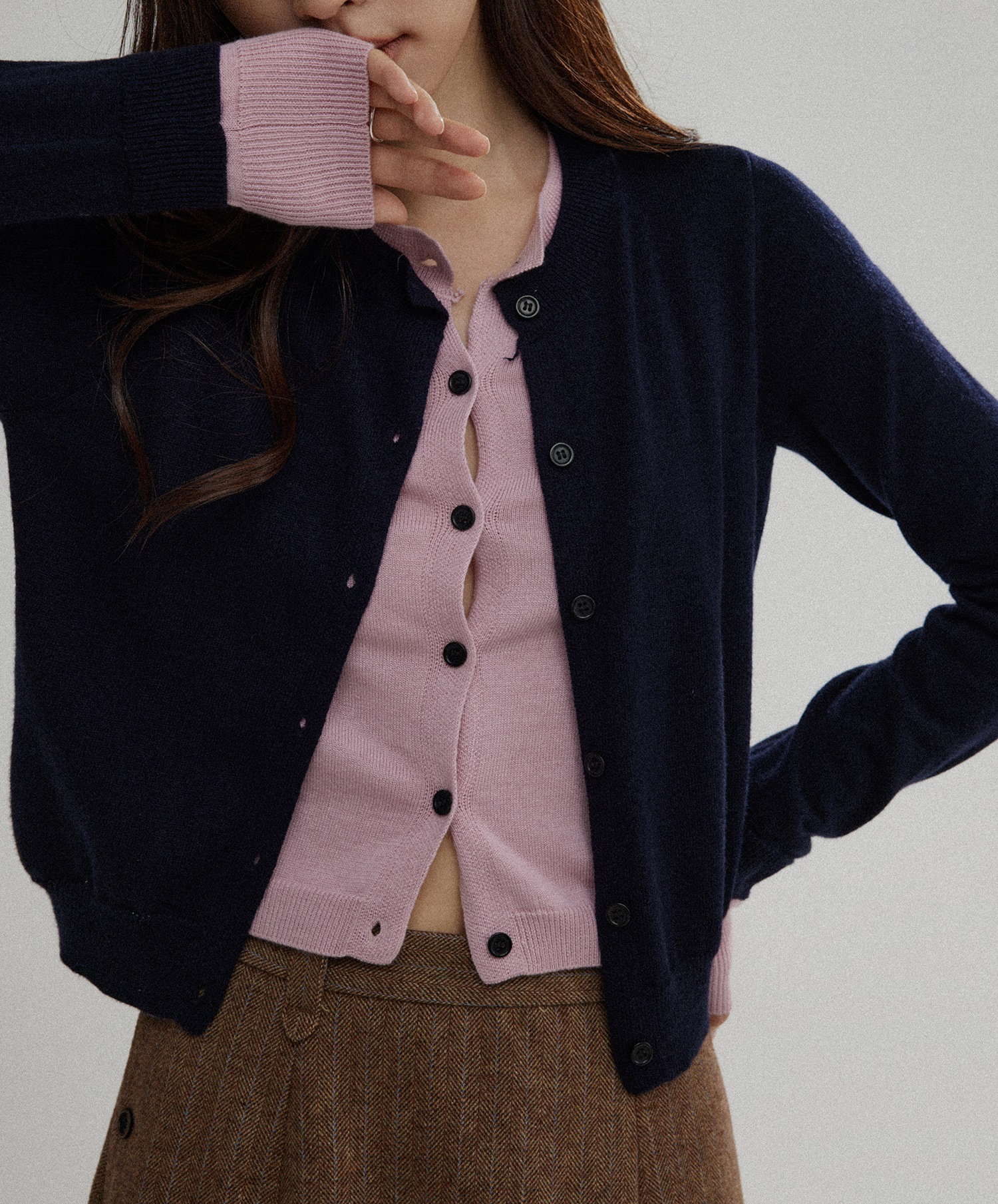 대비 컬러 가짜 투피스 스웨터 여성의 가을 새로운 디자인 센스 우아한 틈새 스웨터 카디건스토어 가기