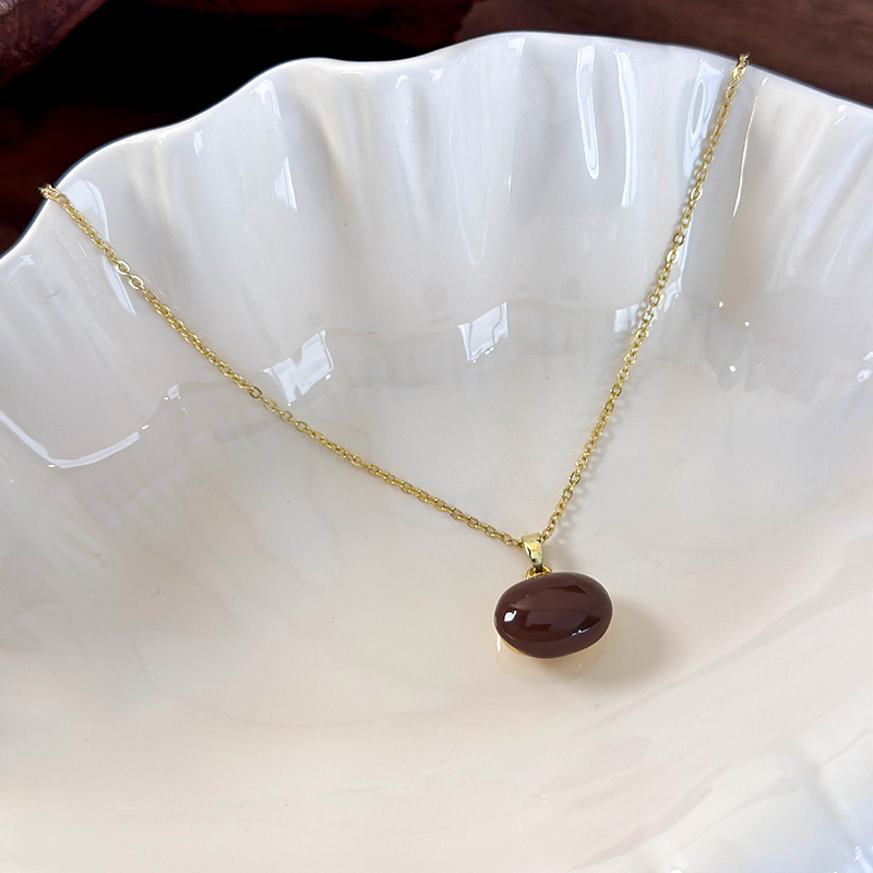 가을과 겨울 새로운 다크 브라운 화이트 레드 아카시아 콩 목걸이 여성용 드롭 유약 콩 쇄골 체인 라이트 럭셔리 틈새 모직 체인스토어 가기