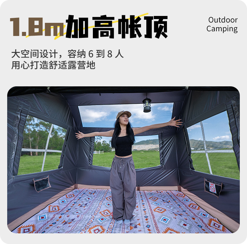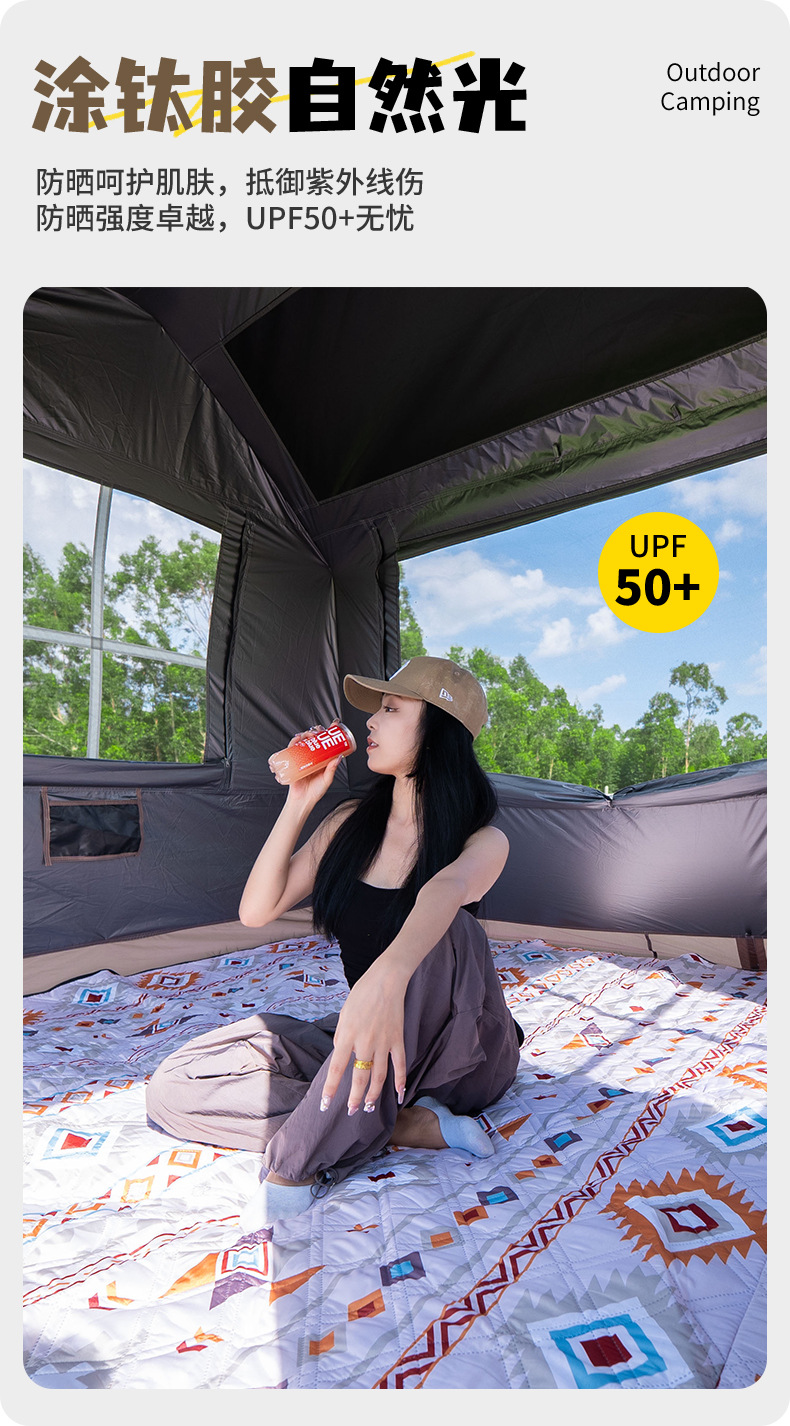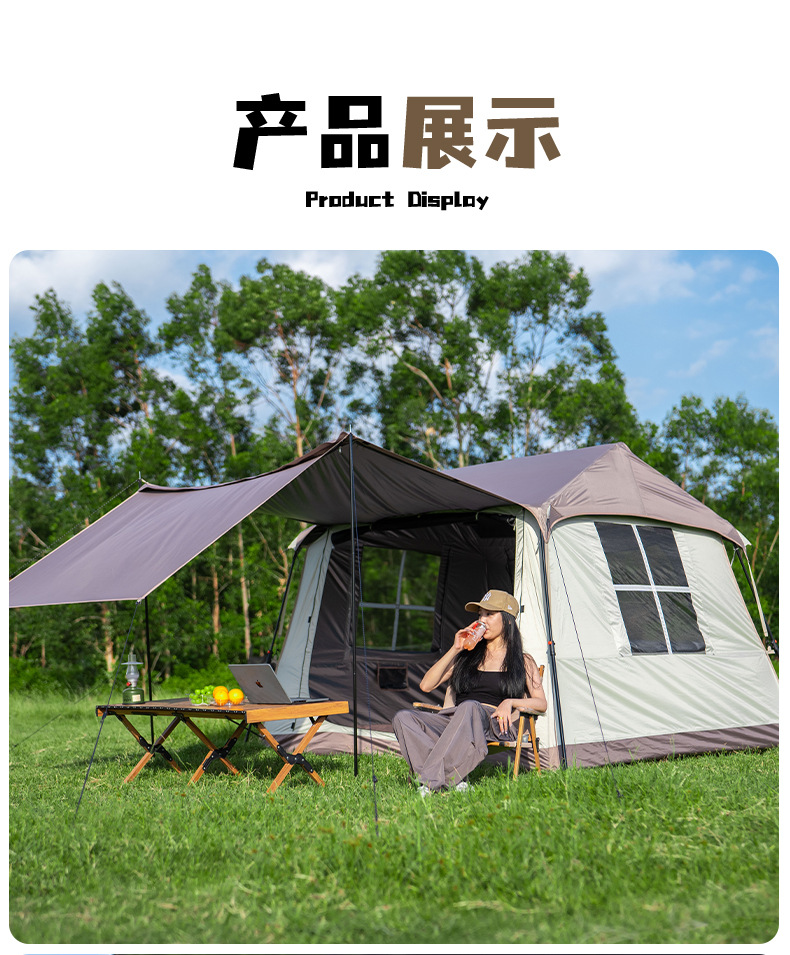 녹색 잔디 집 능선 속도 오프닝 텐트 캐노피 2 대 1 대형 야외 캠핑 전체 장비 검은 고무 자외선 차단제스토어 가기