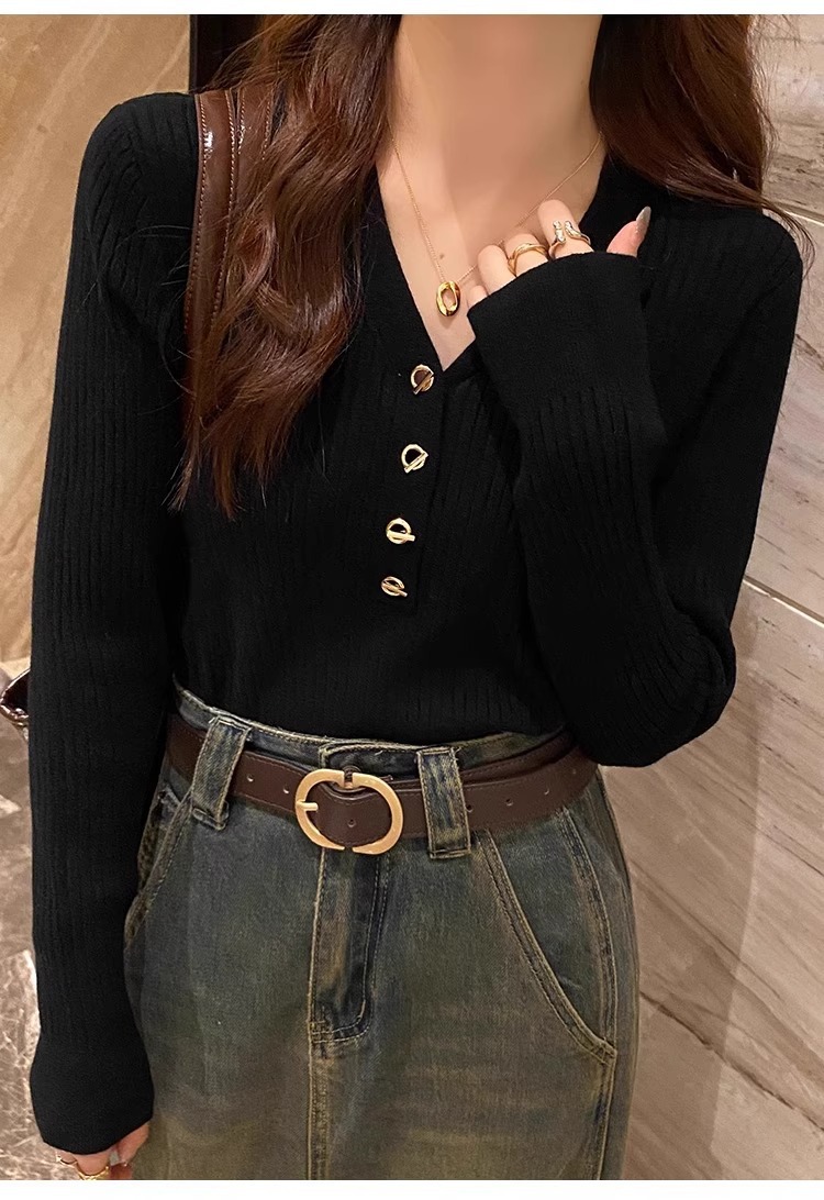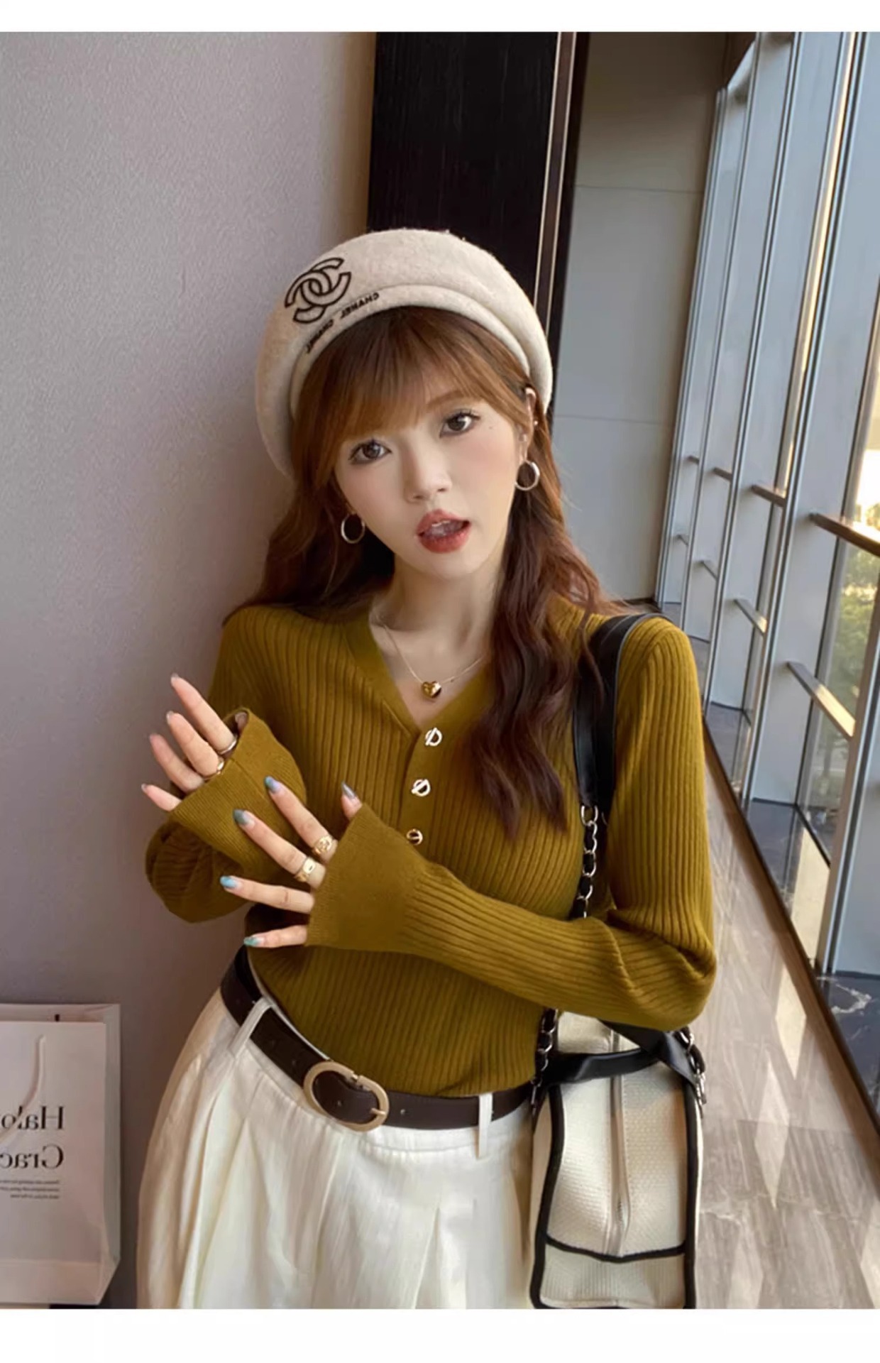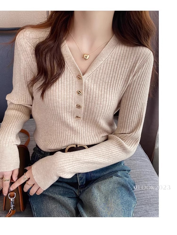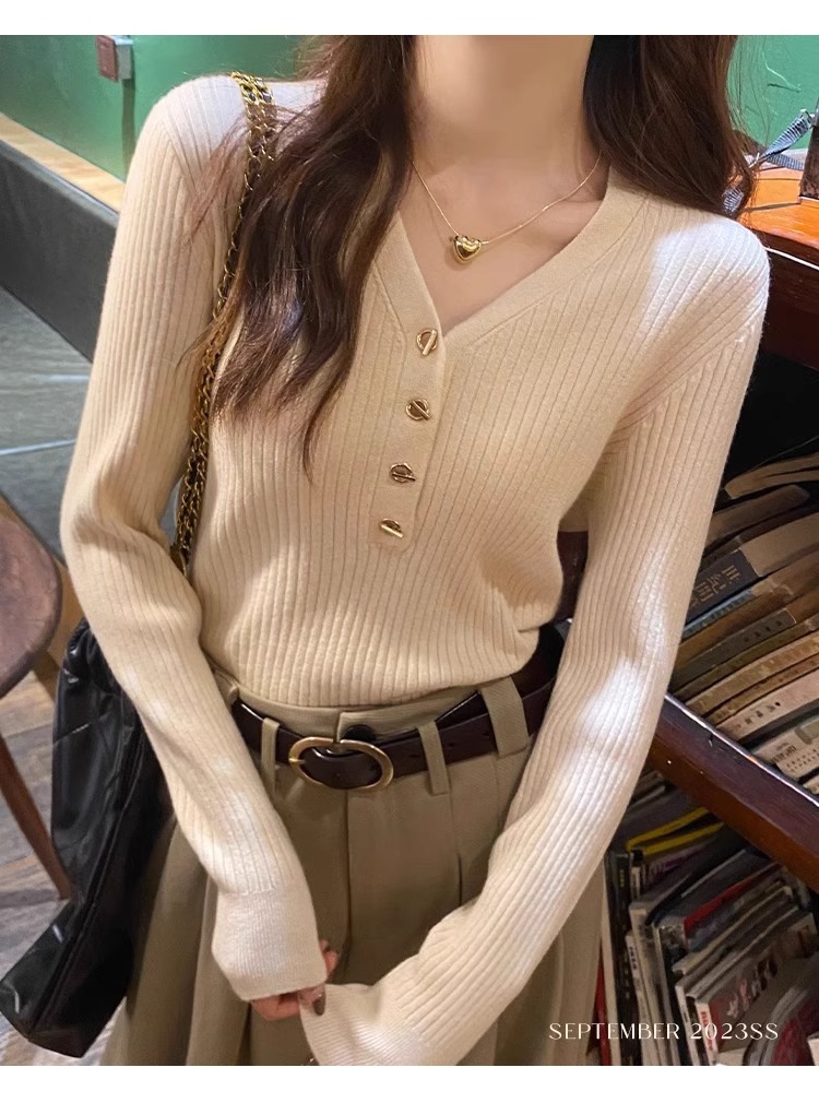 여성용 하의 셔츠, 작은 향기 스타일 이너웨어, 봄옷, 2025 신상 브이넥 스웨터, 부드러운 왁시 스웨터, 긴팔 이른 봄 상의