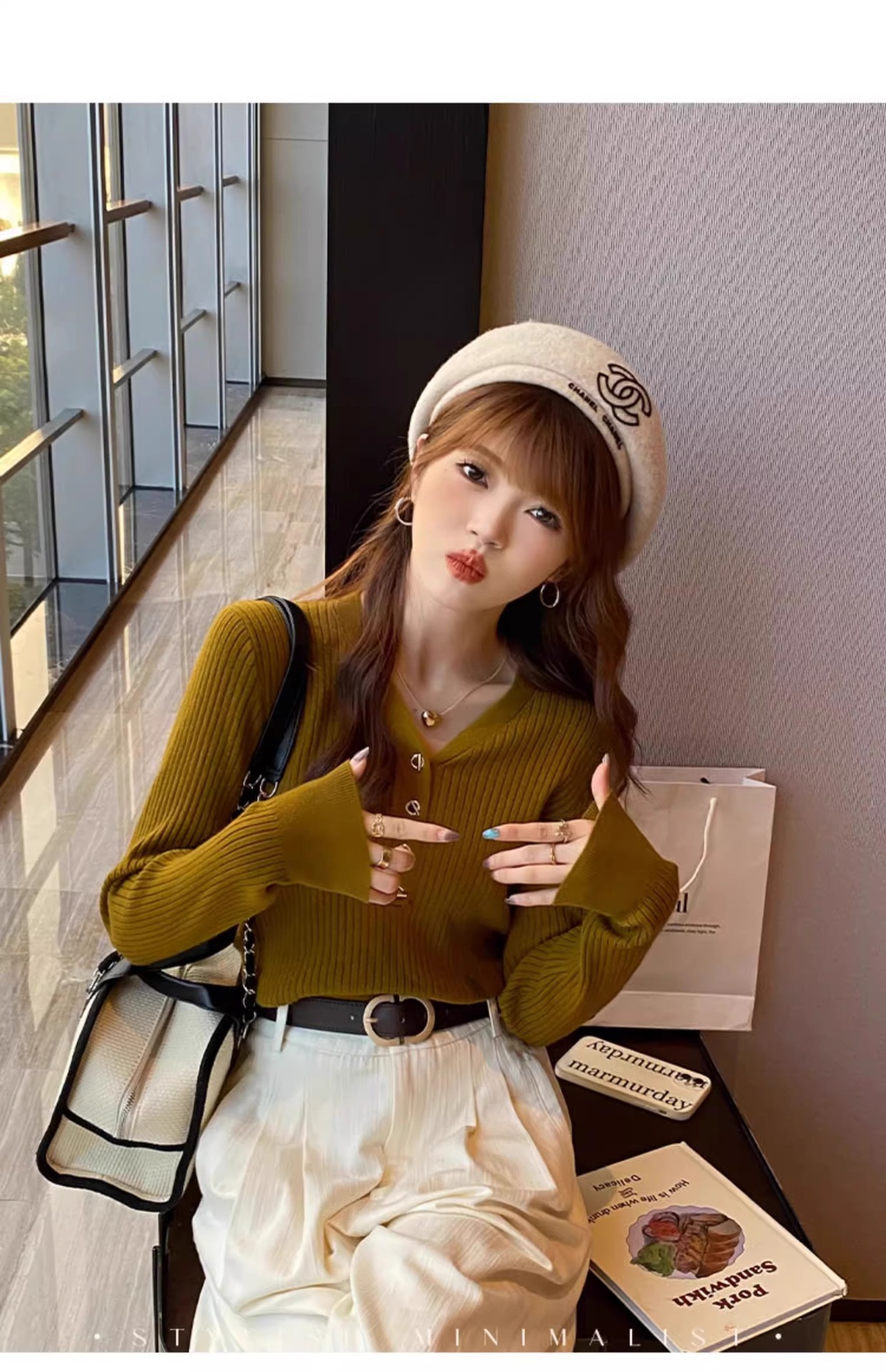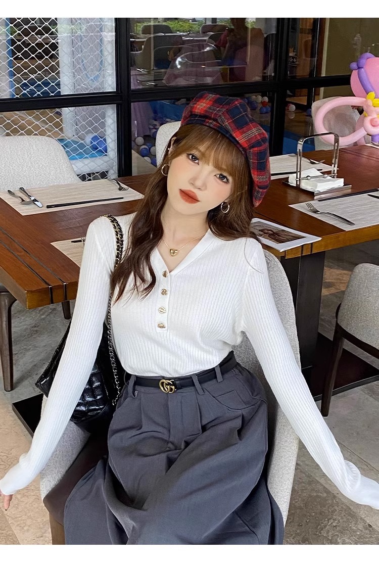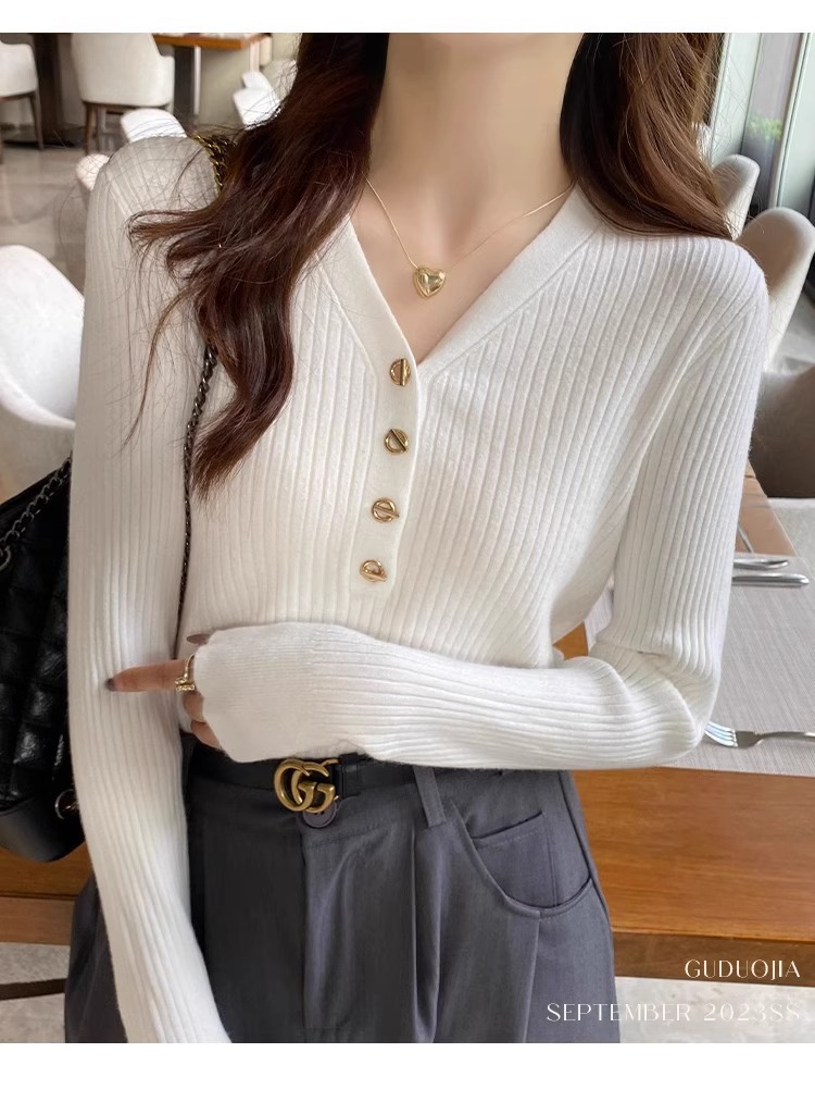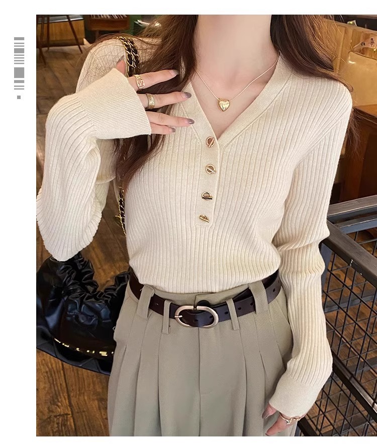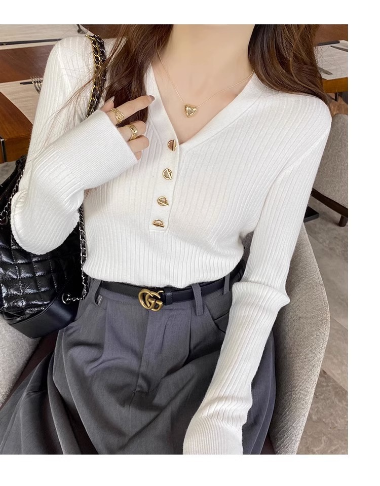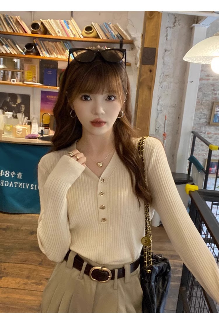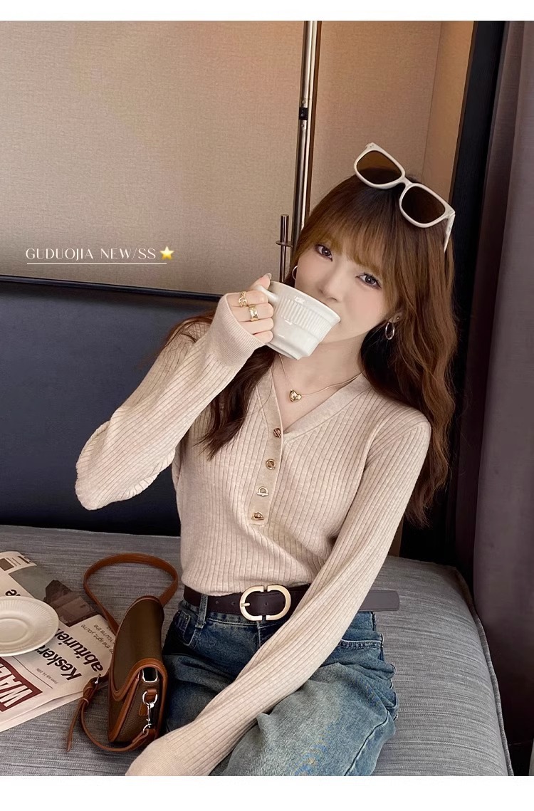 여성용 하의 셔츠, 작은 향기 스타일 이너웨어, 봄옷, 2025 신상 브이넥 스웨터, 부드러운 왁시 스웨터, 긴팔 이른 봄 상의스토어 가기