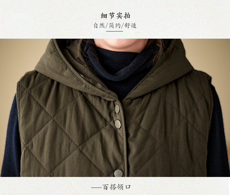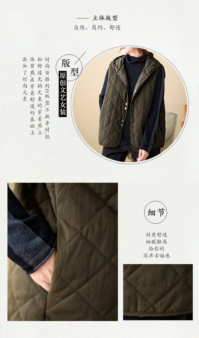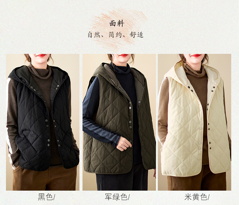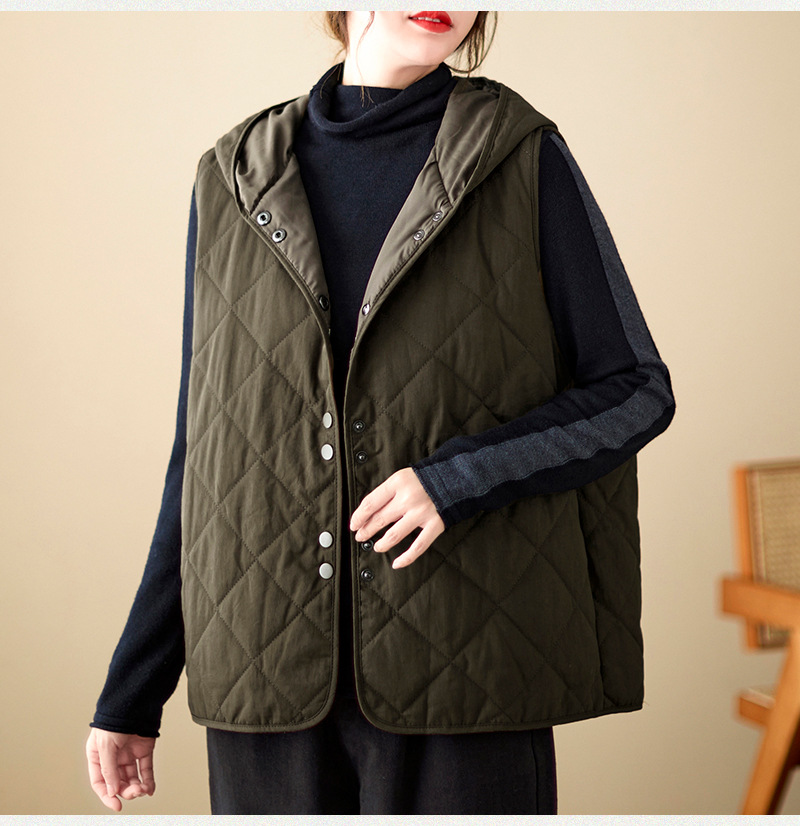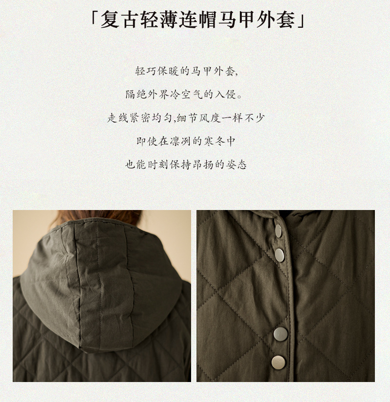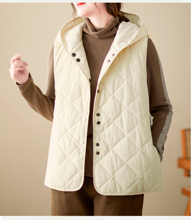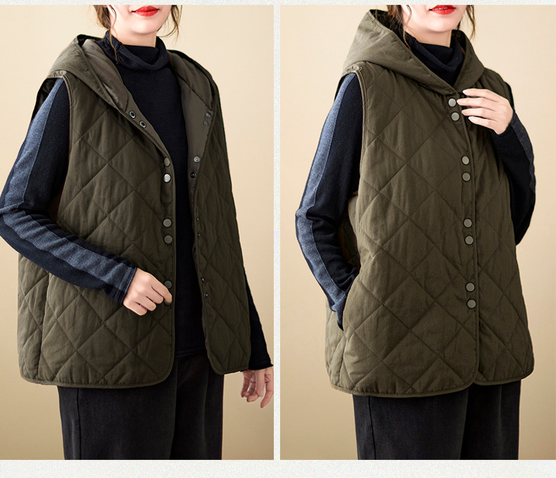 리얼 샷 2024 겨울 새 아티스트 스타일 후드 조끼 여성용 루즈 슬림 핏 다이아몬드 모양의 체크 무늬 조끼 재킷 탑