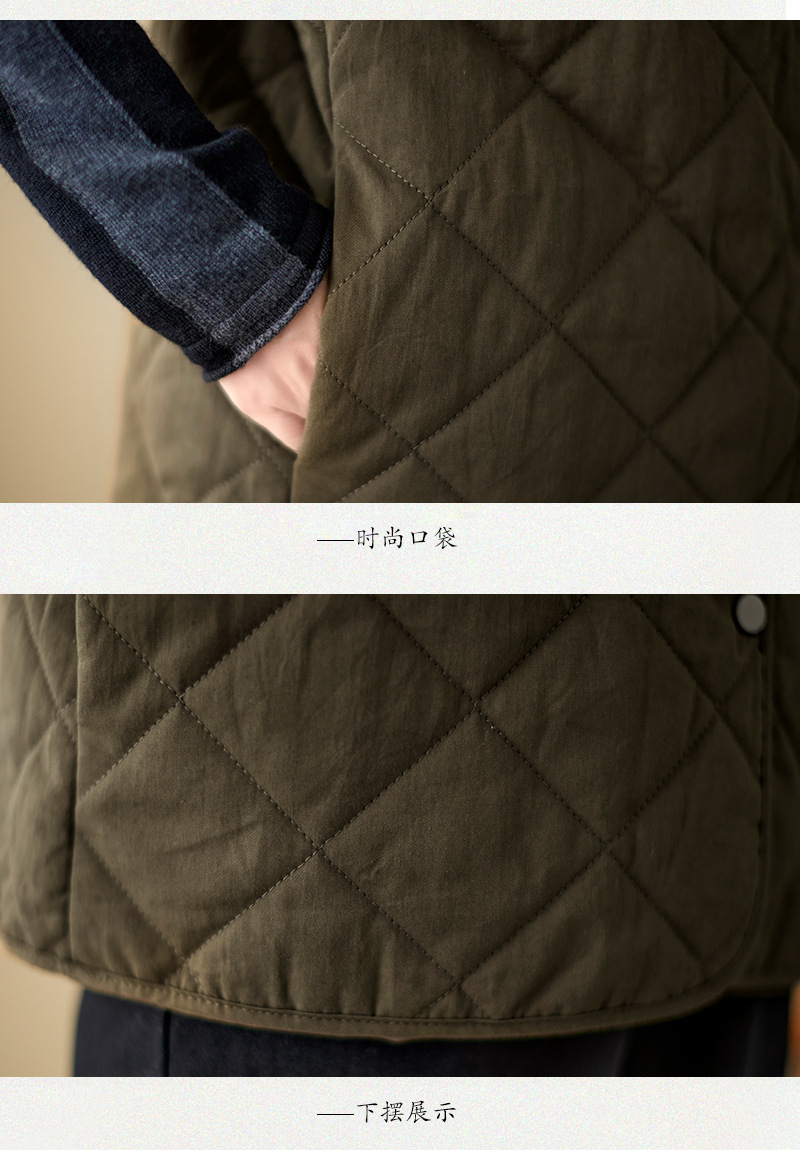 리얼 샷 2024 겨울 새 아티스트 스타일 후드 조끼 여성용 루즈 슬림 핏 다이아몬드 모양의 체크 무늬 조끼 재킷 탑스토어 가기