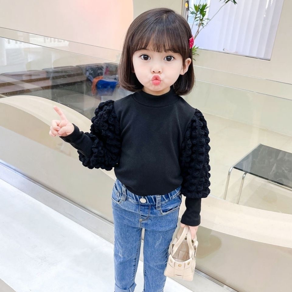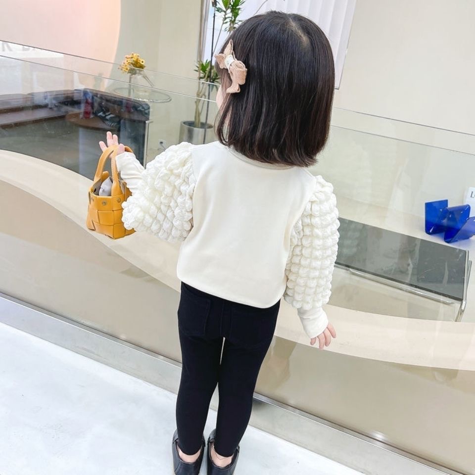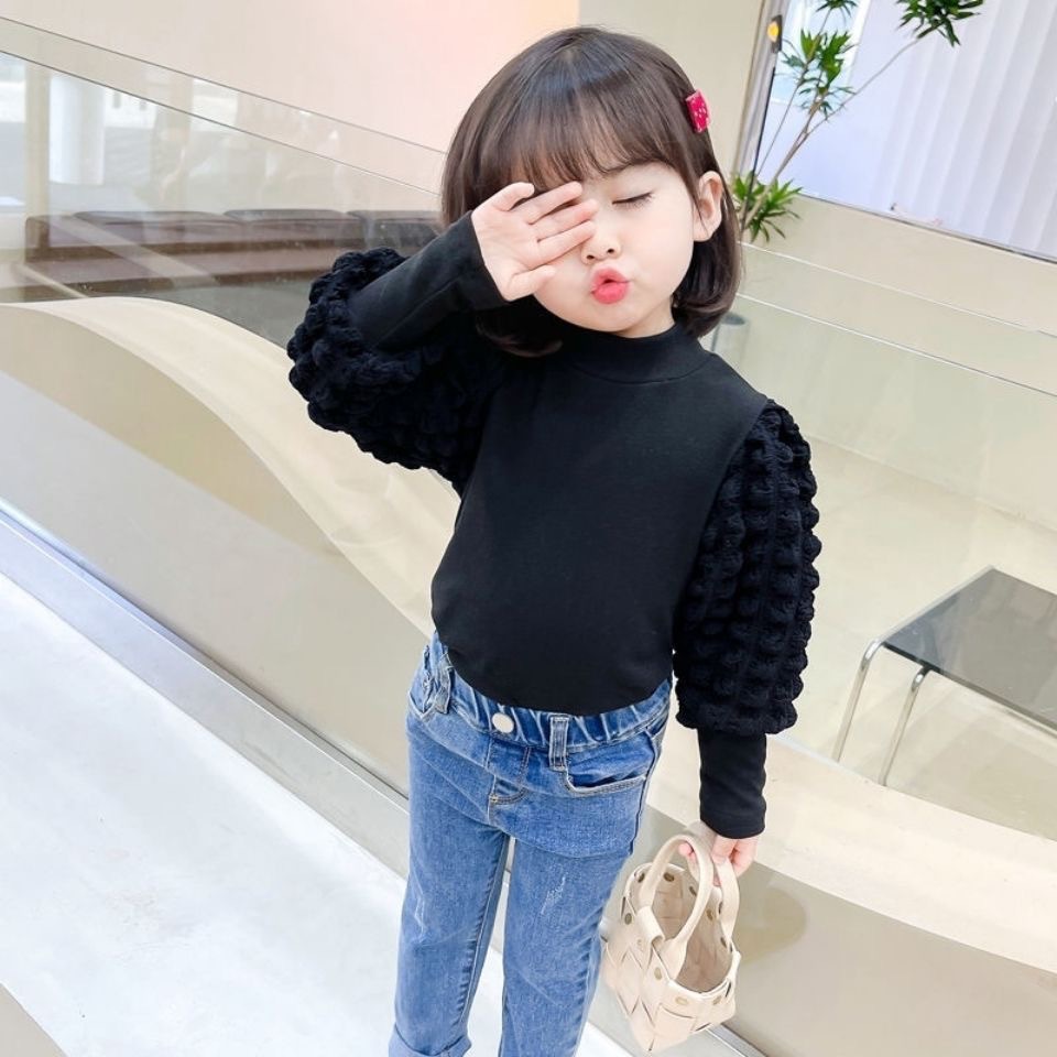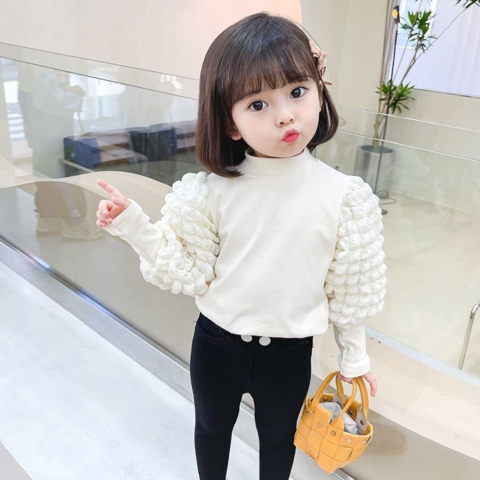 소녀 버블 슬리브 바닥 셔츠 가을 새 여자 크루 넥 티셔츠 어린이 패션 아동복 헤어 세대스토어 가기