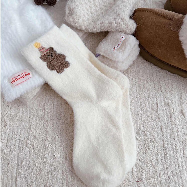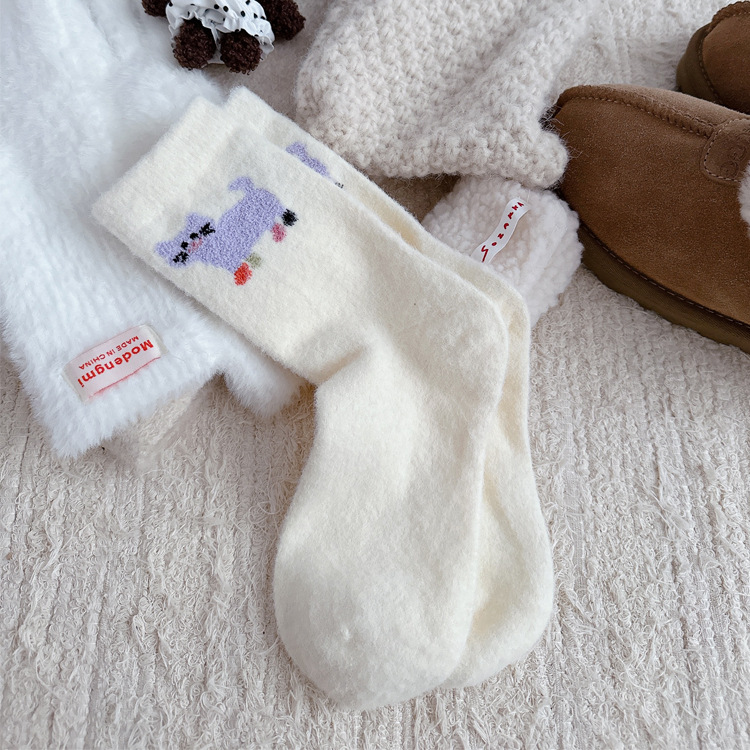 겨울 두꺼운 양말 Ins 호주 벨벳 따뜻한 두꺼운 기모 여성용 양말 한국 스타일 귀여운 작은 동물 중간 크기 양말스토어 가기