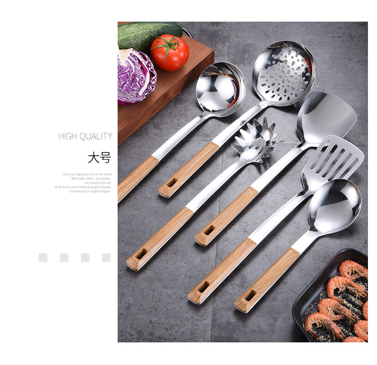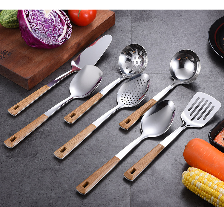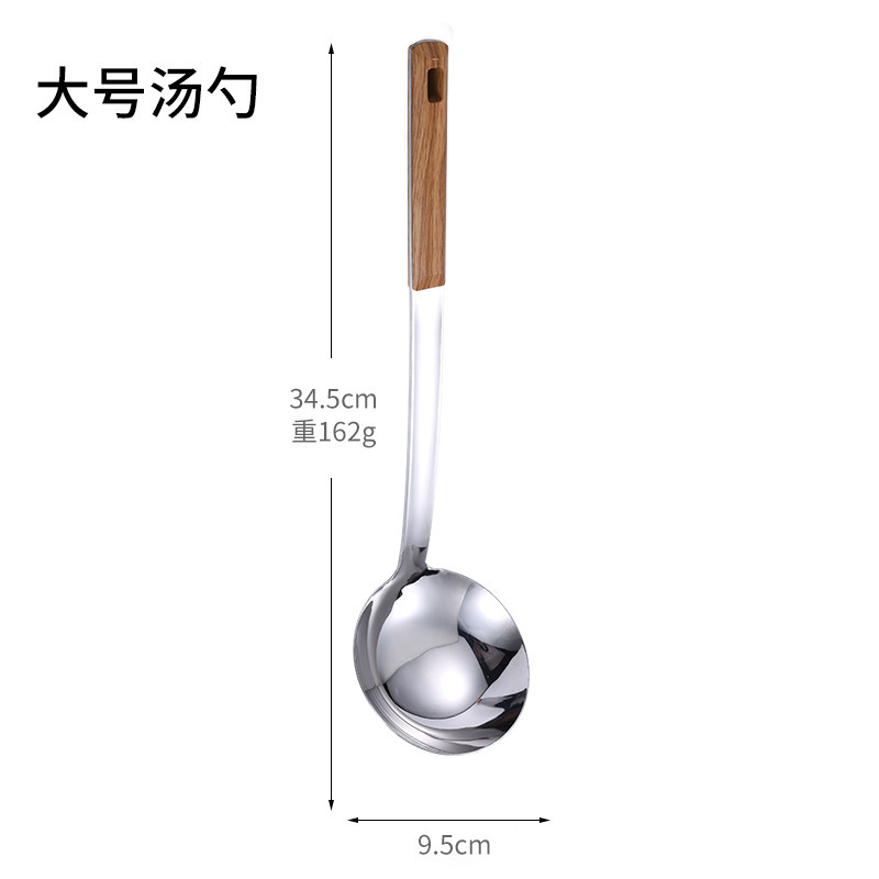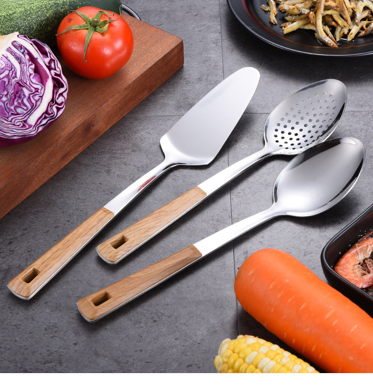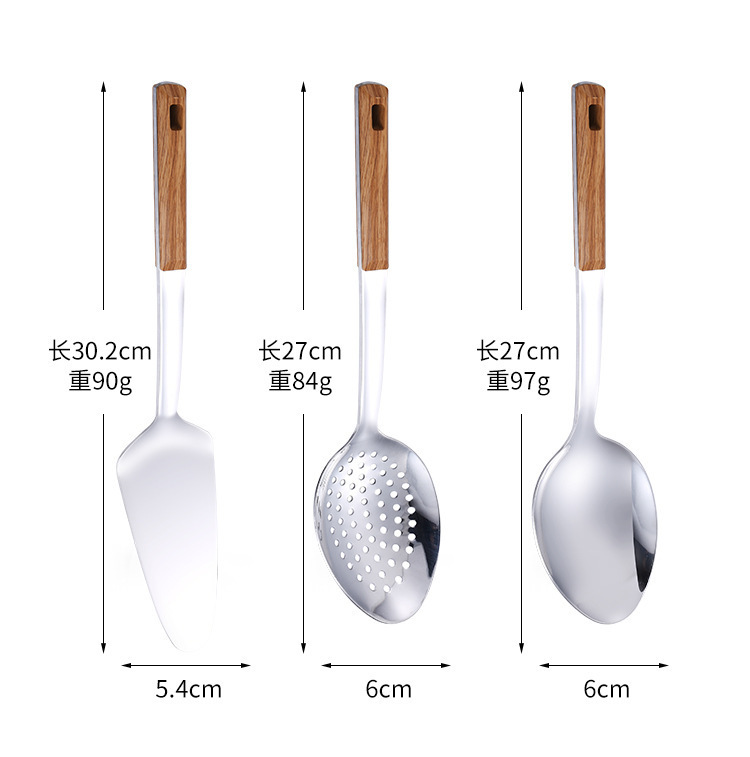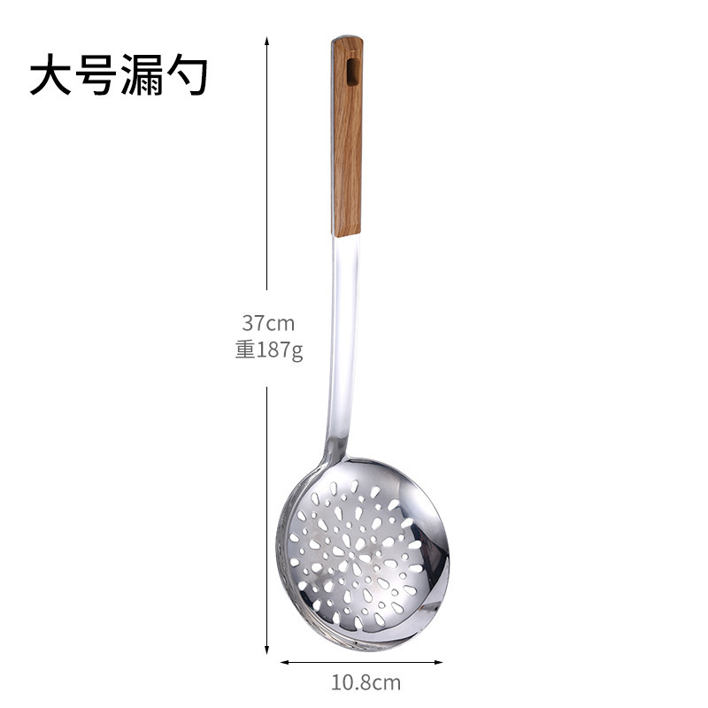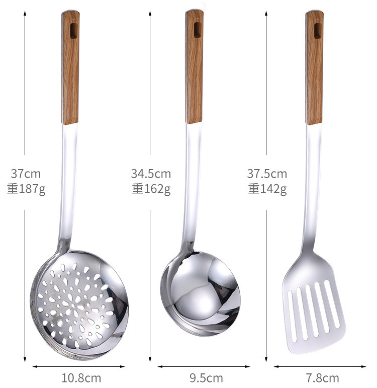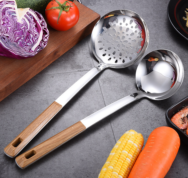 대형 나무결 손잡이 주방용품 스테인리스 주걱 가정용 주방 요리용 주걱 국자 튀김용 주걱 조리기구 세트