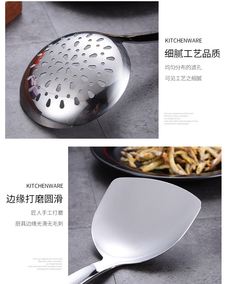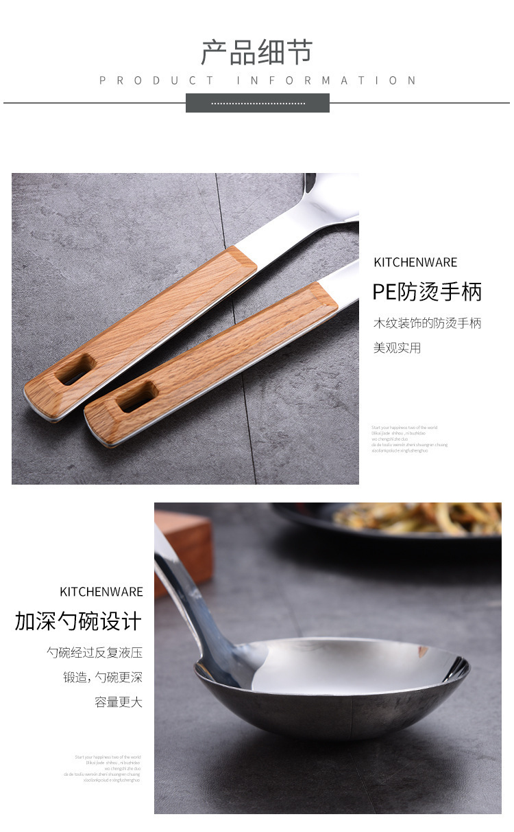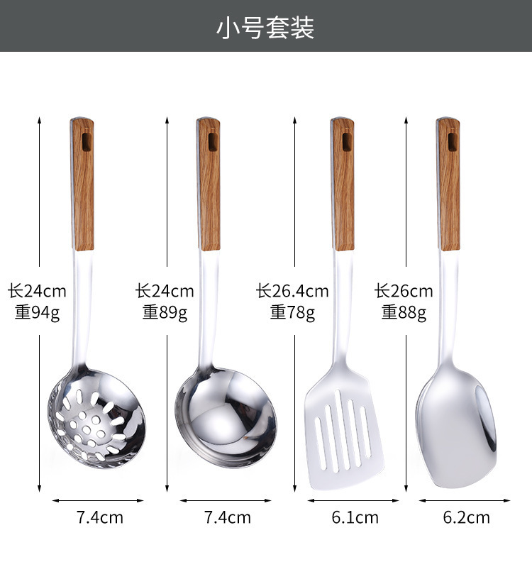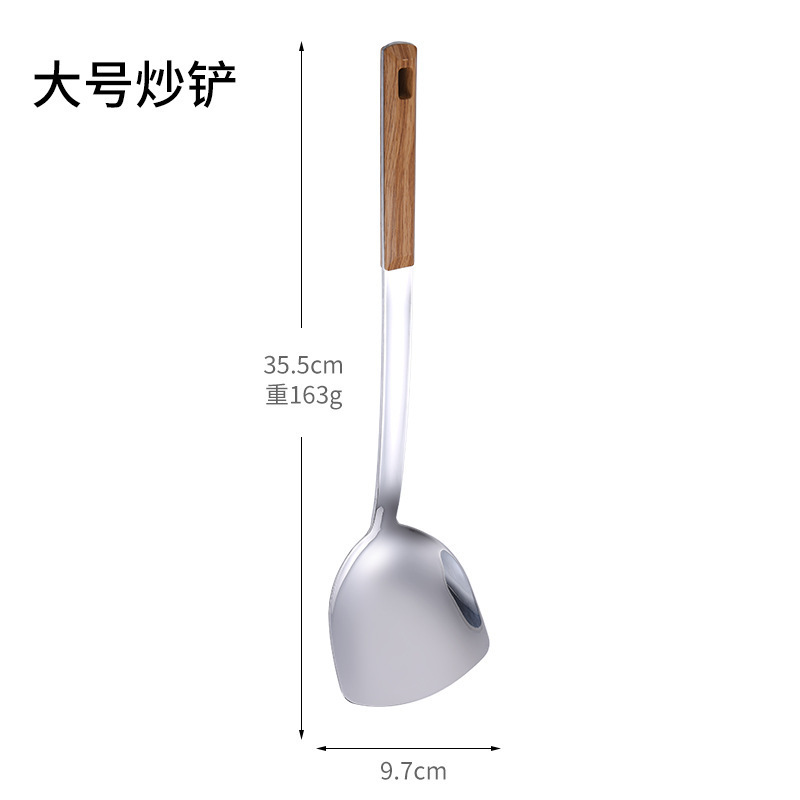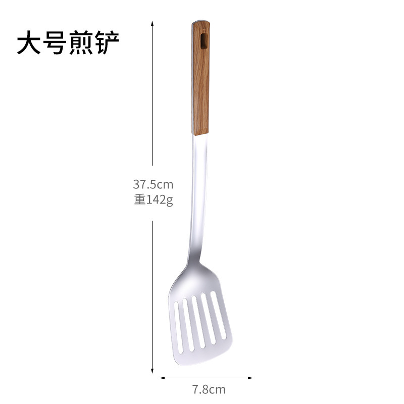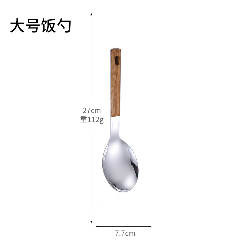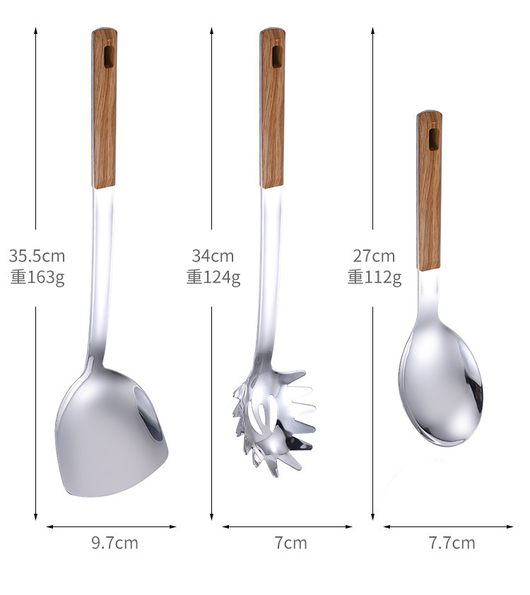 대형 나무결 손잡이 주방용품 스테인리스 주걱 가정용 주방 요리용 주걱 국자 튀김용 주걱 조리기구 세트