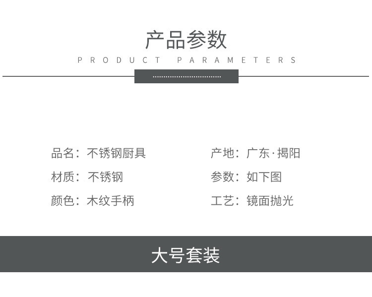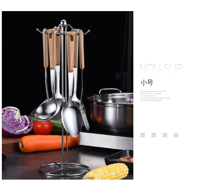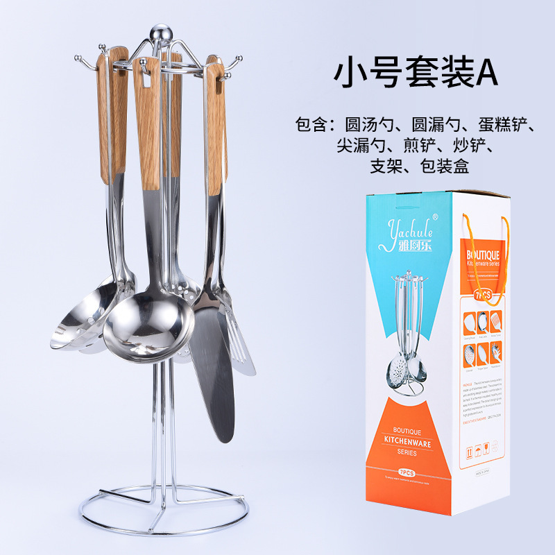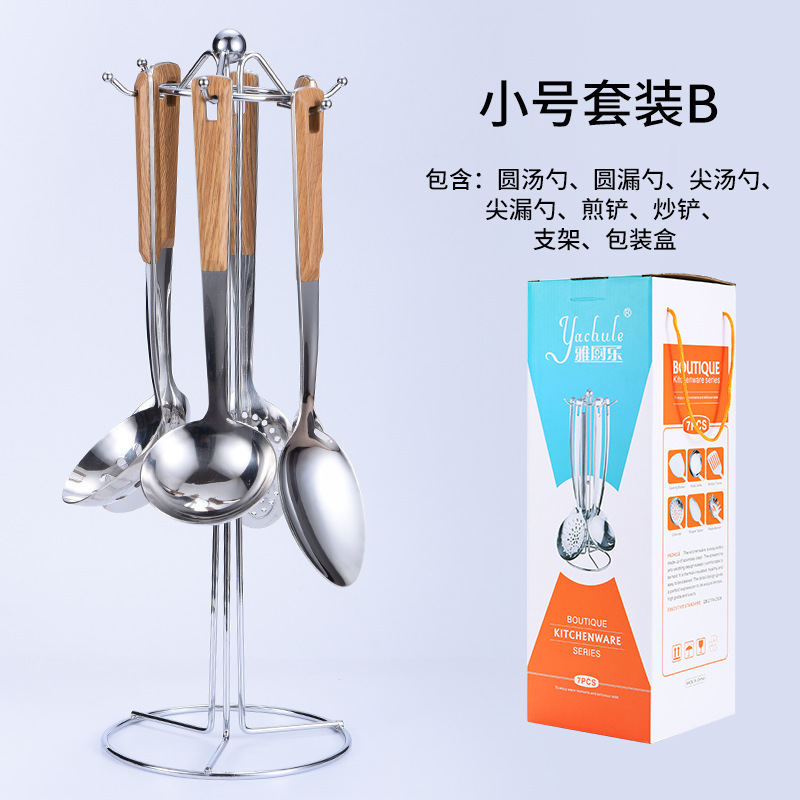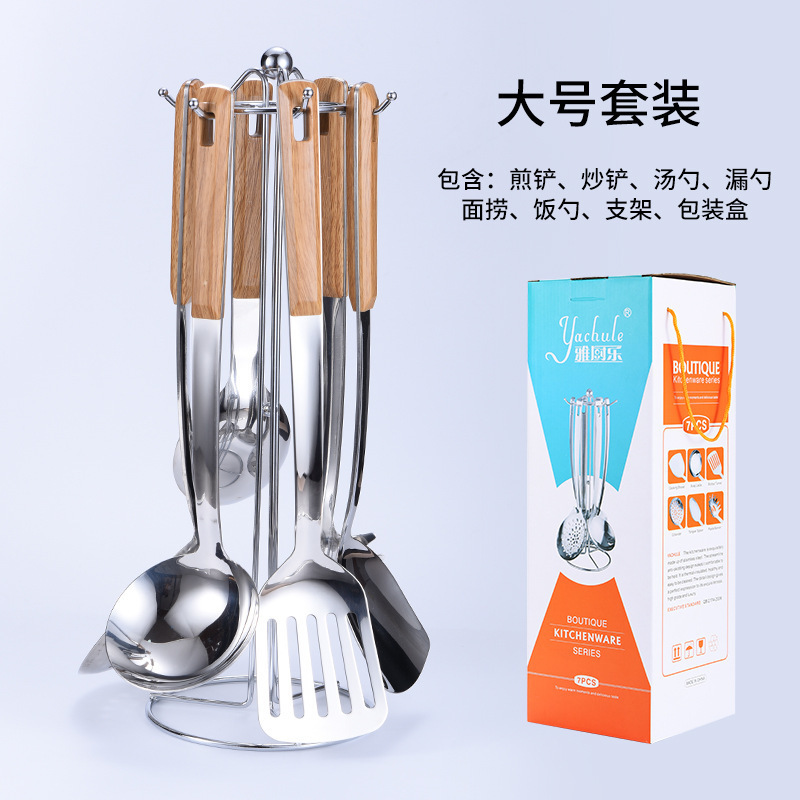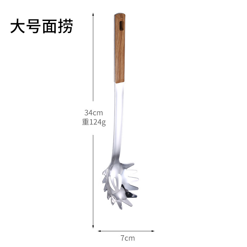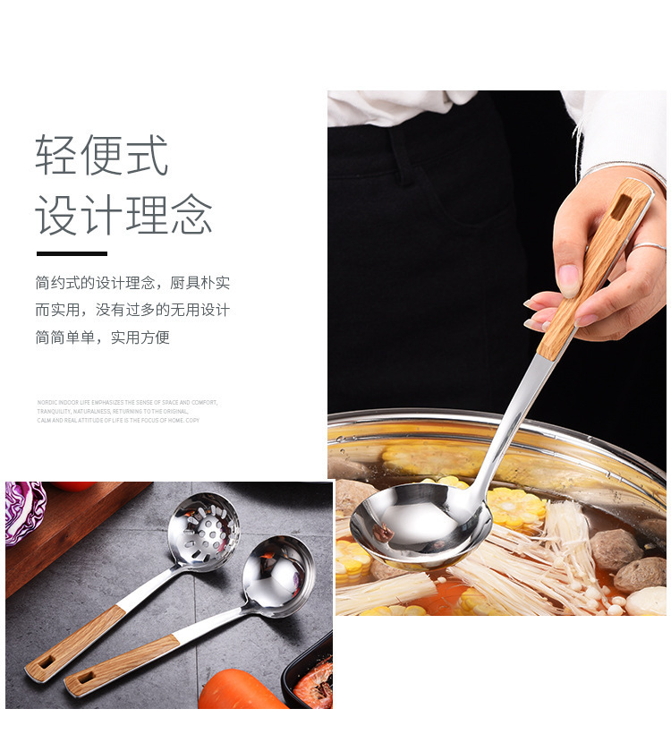 대형 나무결 손잡이 주방용품 스테인리스 주걱 가정용 주방 요리용 주걱 국자 튀김용 주걱 조리기구 세트