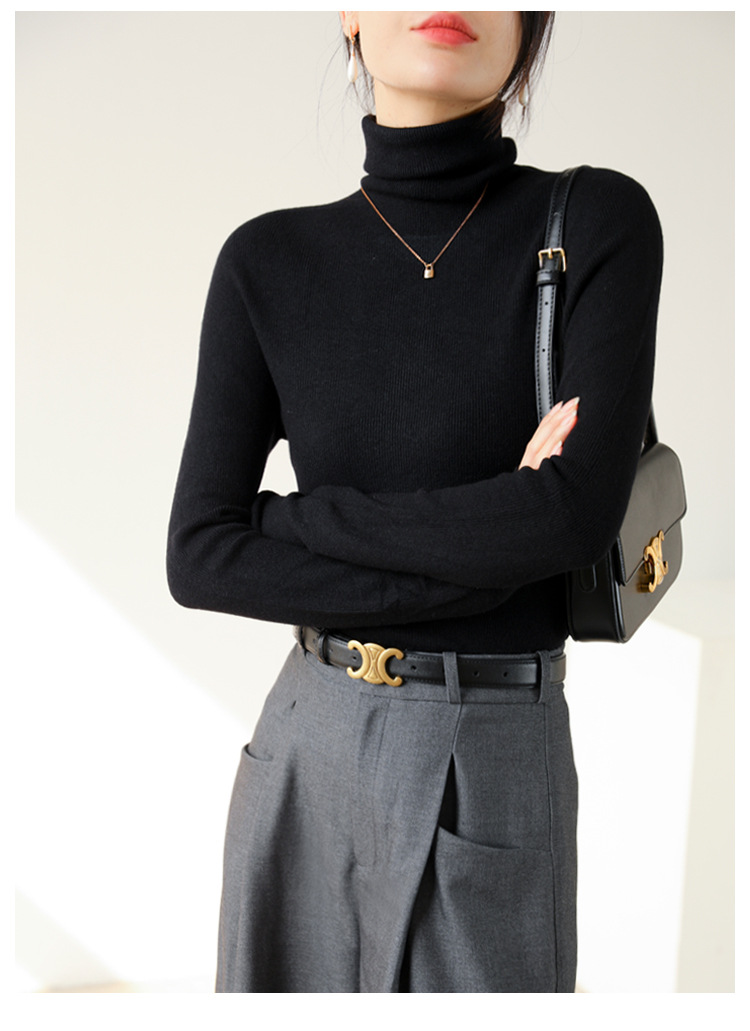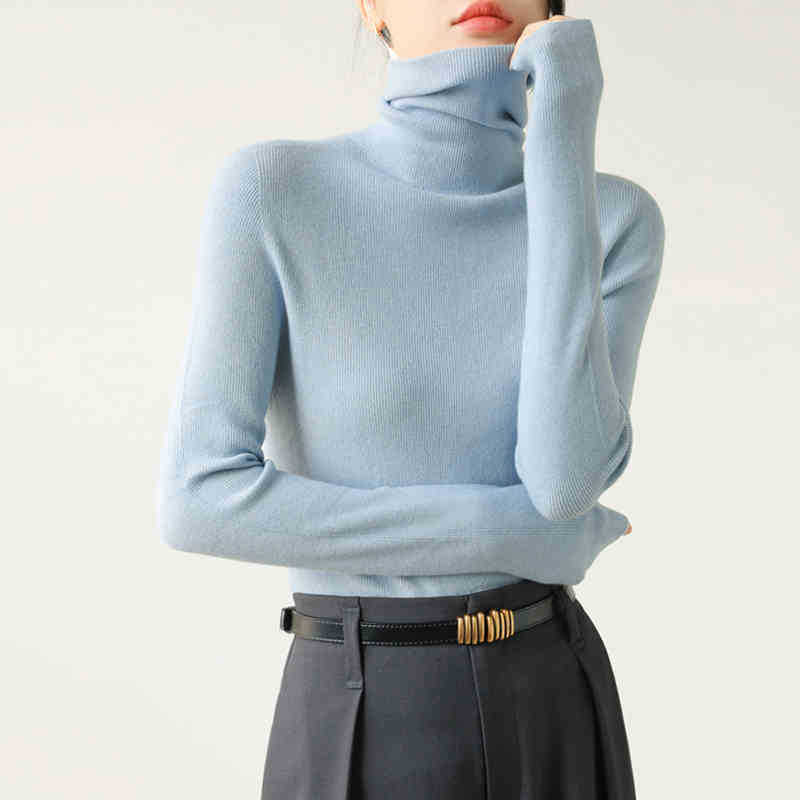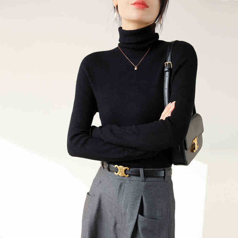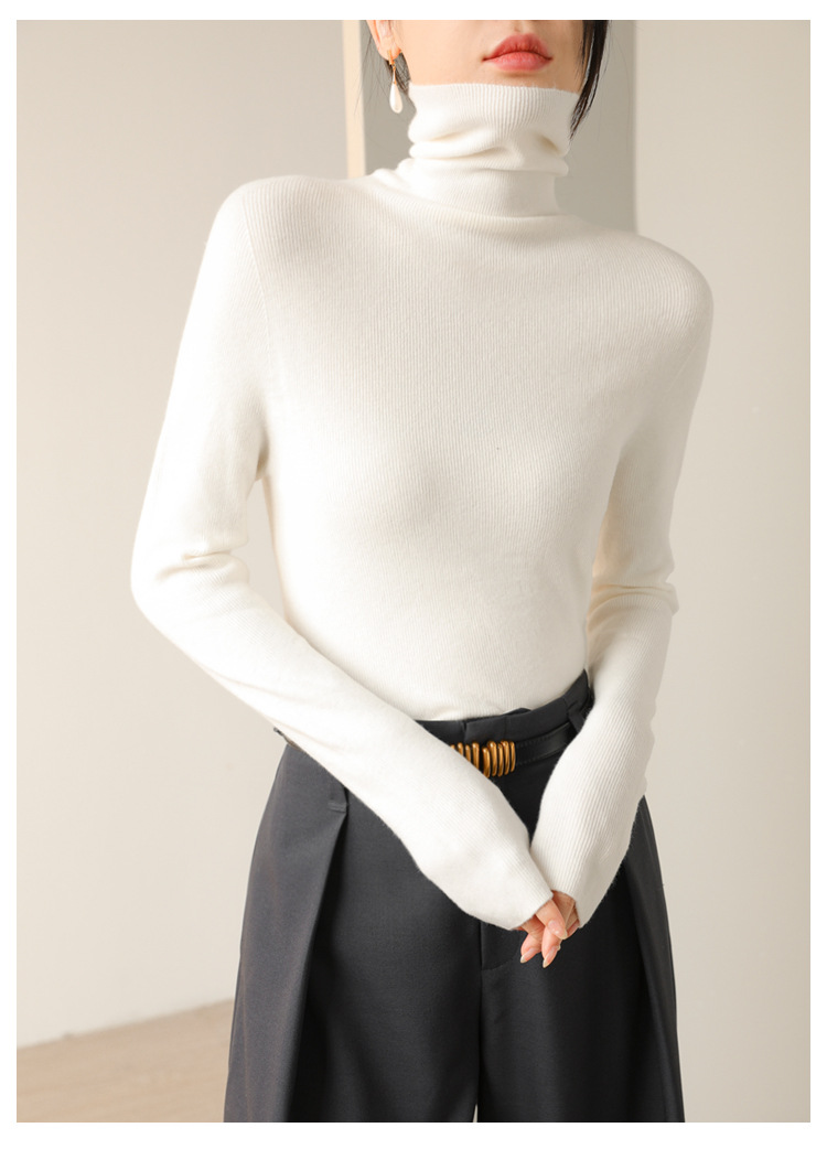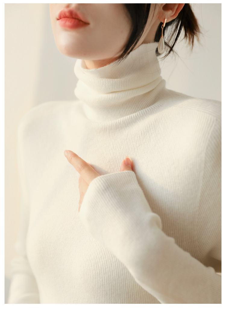 니트 스웨터 하이넥 가을 겨울 신상 2025 슬림핏 이너웨어 긴팔 니트 베이스 레이어 스웨터 여성용 화이트스토어 가기