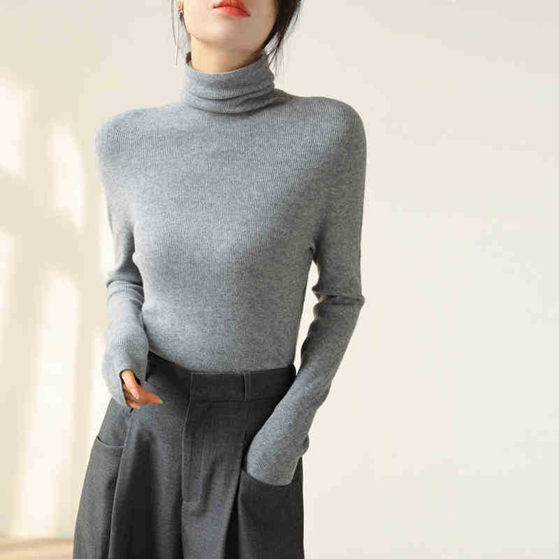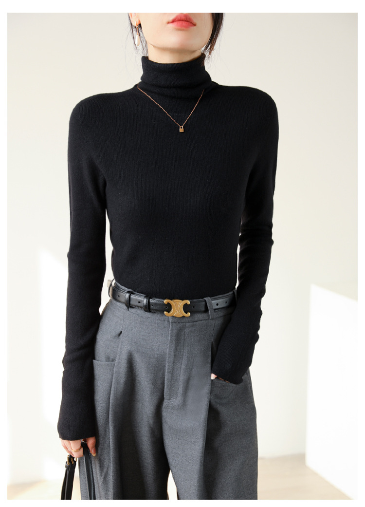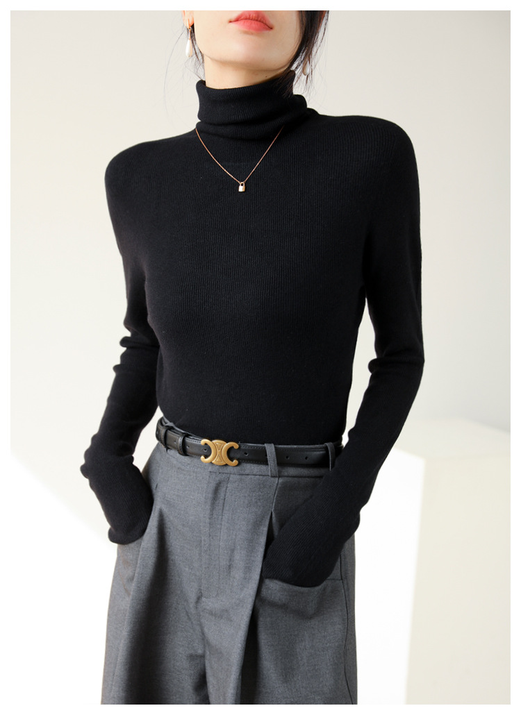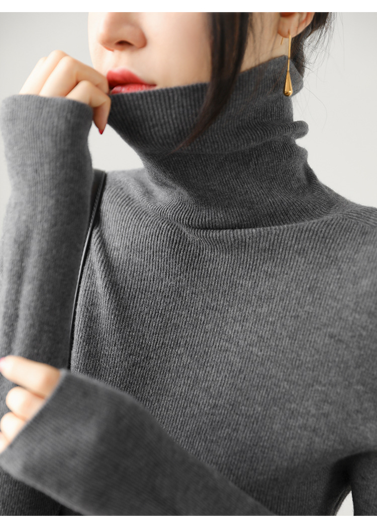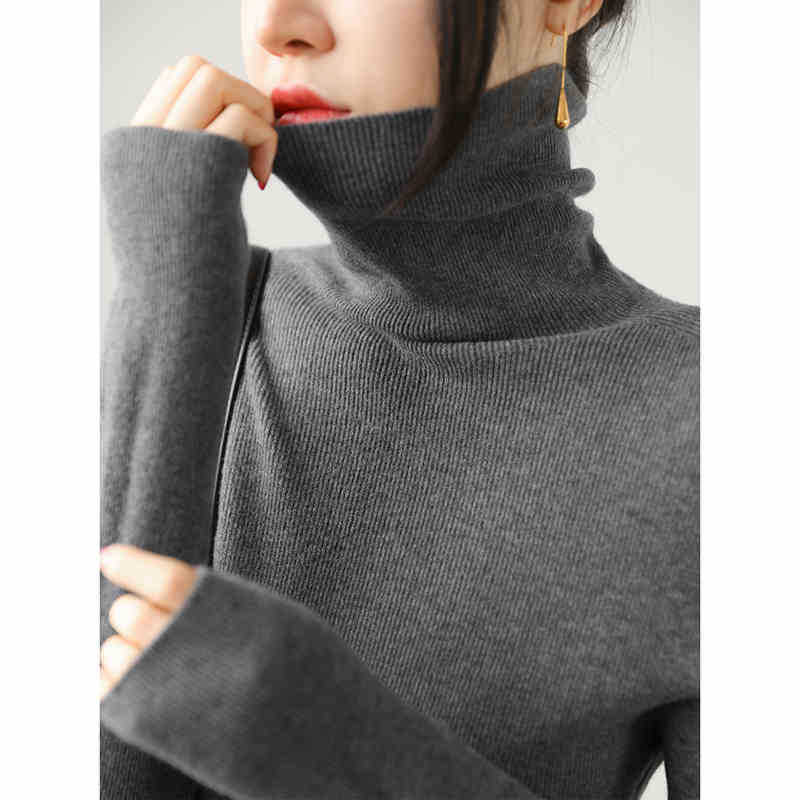 니트 스웨터 하이넥 가을 겨울 신상 2025 슬림핏 이너웨어 긴팔 니트 베이스 레이어 스웨터 여성용 화이트스토어 가기