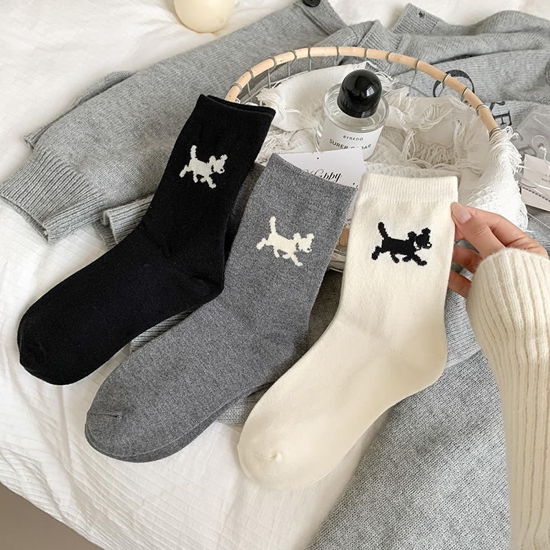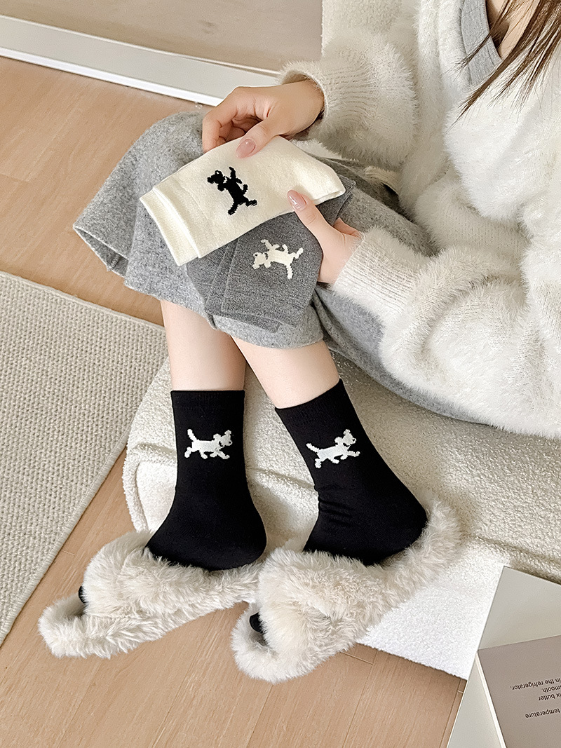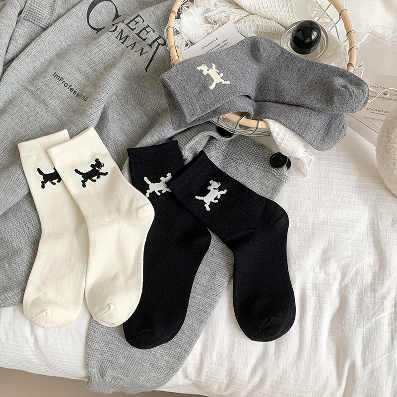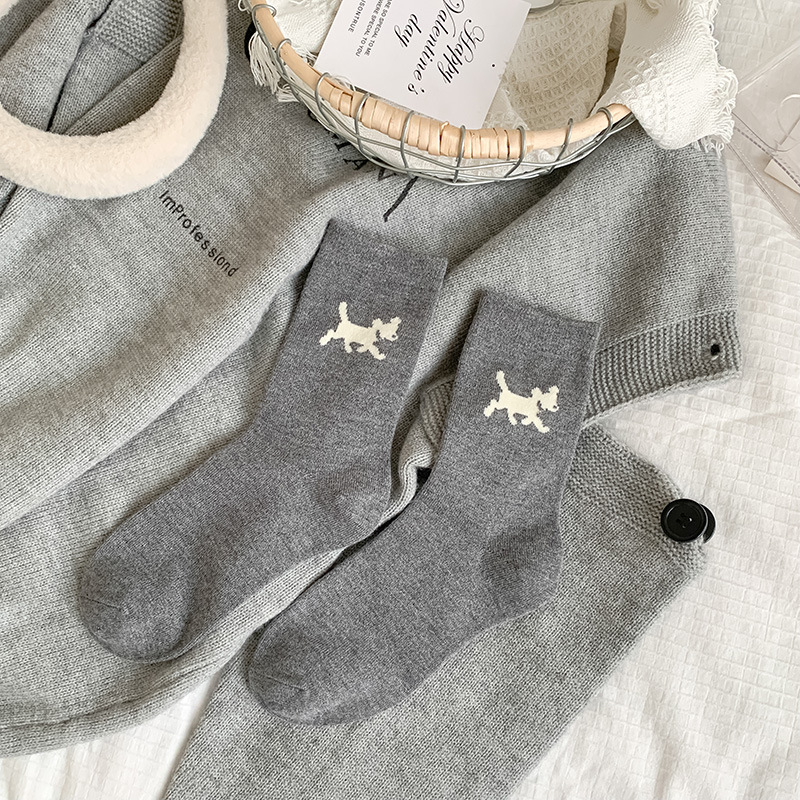 동대문 새 만화 강아지 따뜻한 양말 가을 겨울 귀여운 Ins 대학 여성용 중형 회색 양말