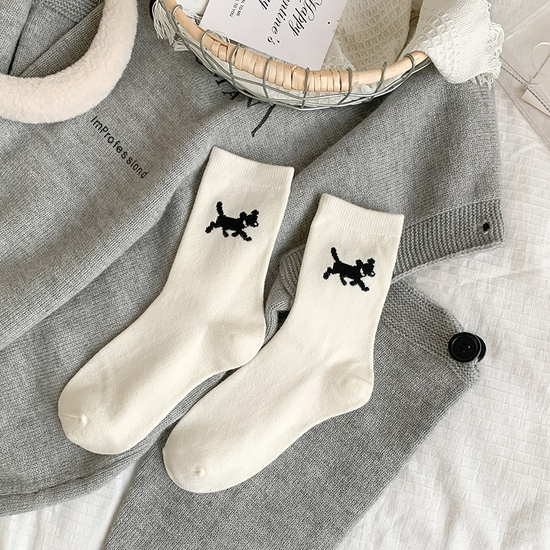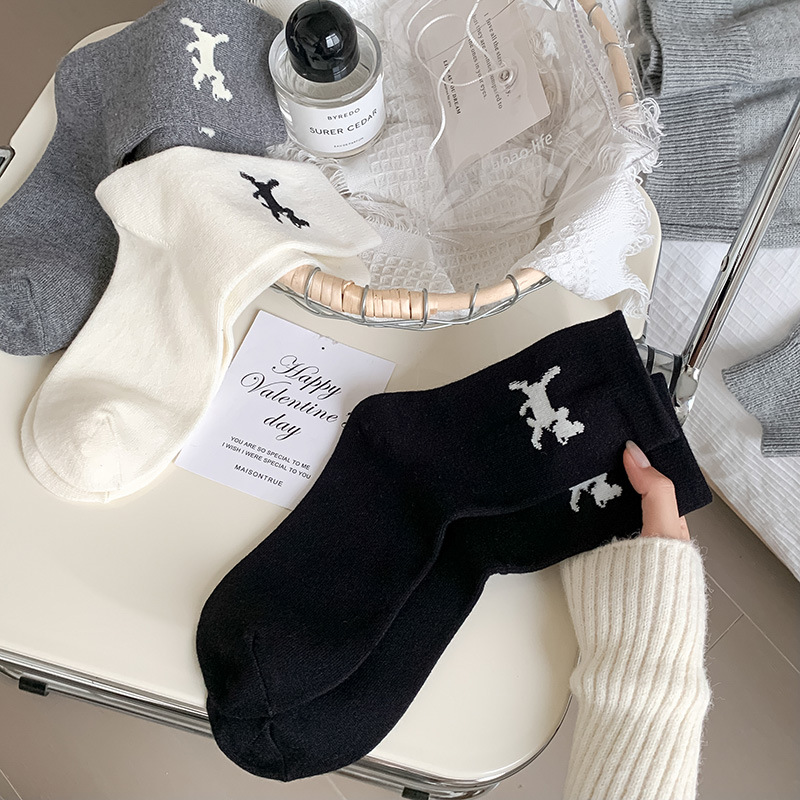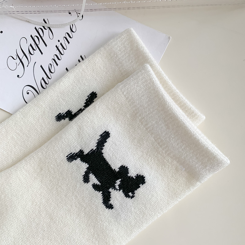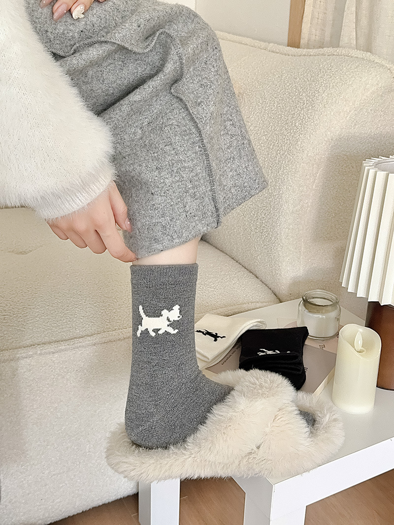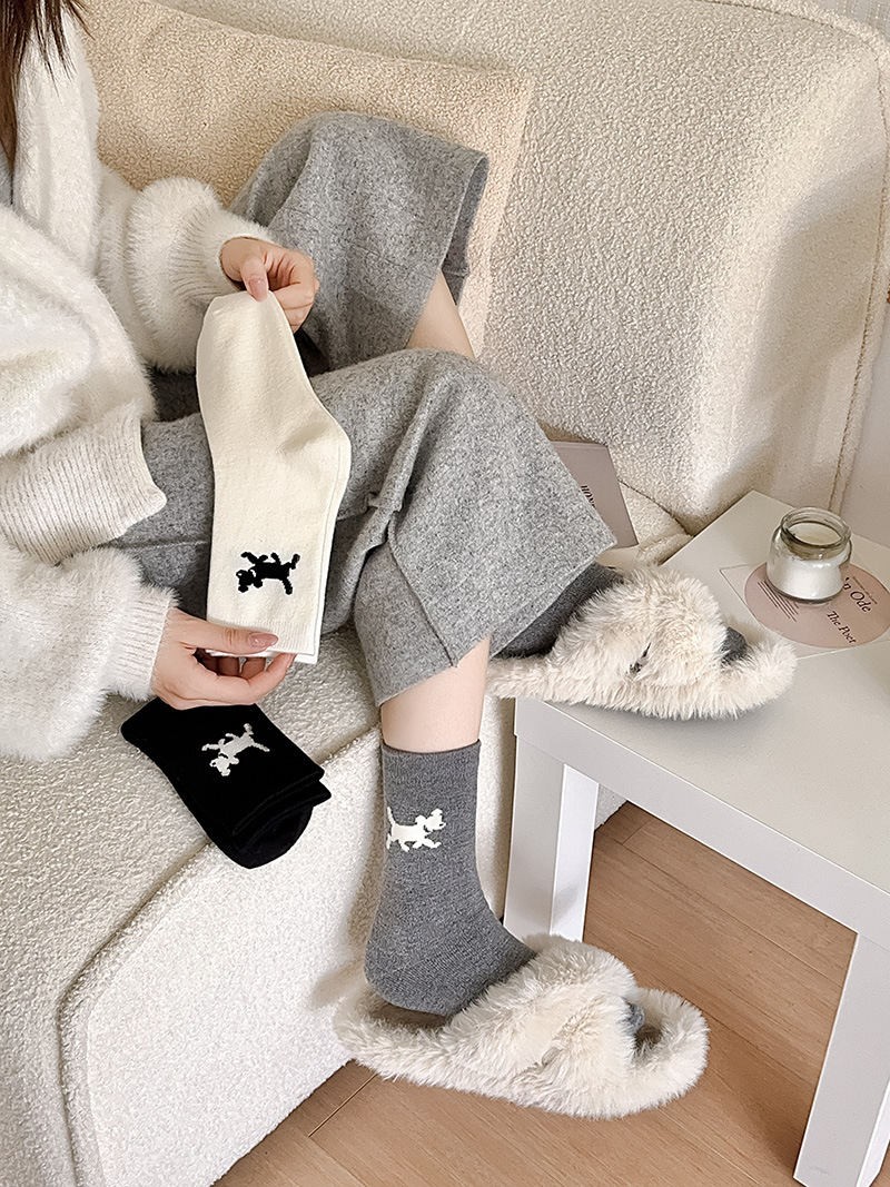 동대문 새 만화 강아지 따뜻한 양말 가을 겨울 귀여운 Ins 대학 여성용 중형 회색 양말