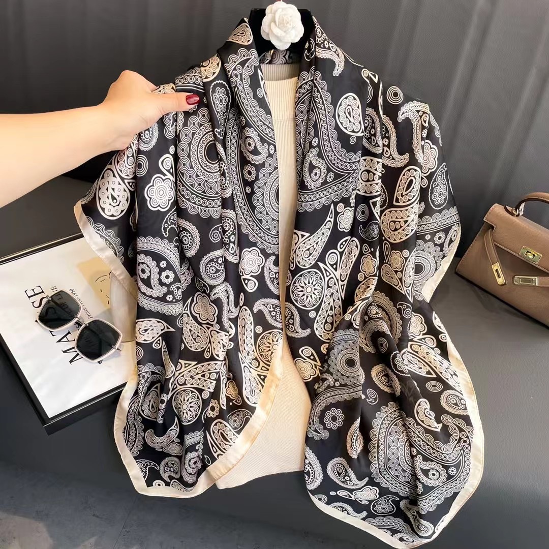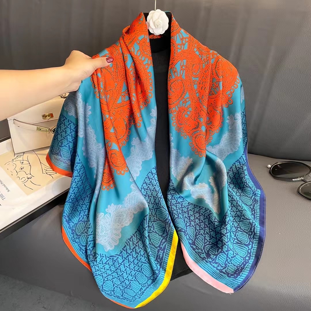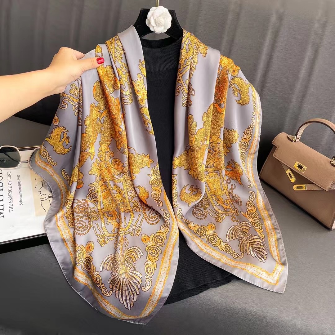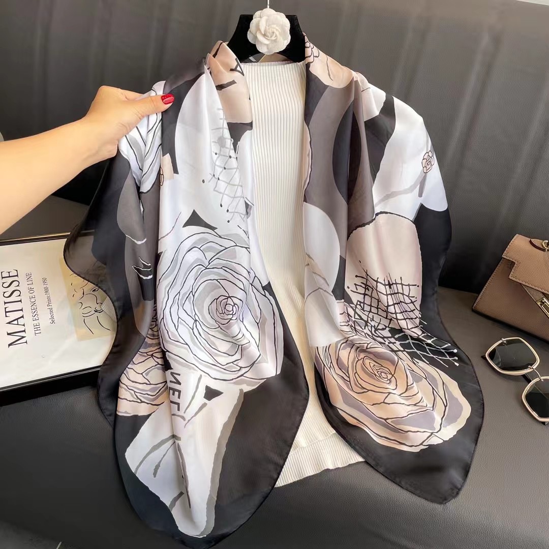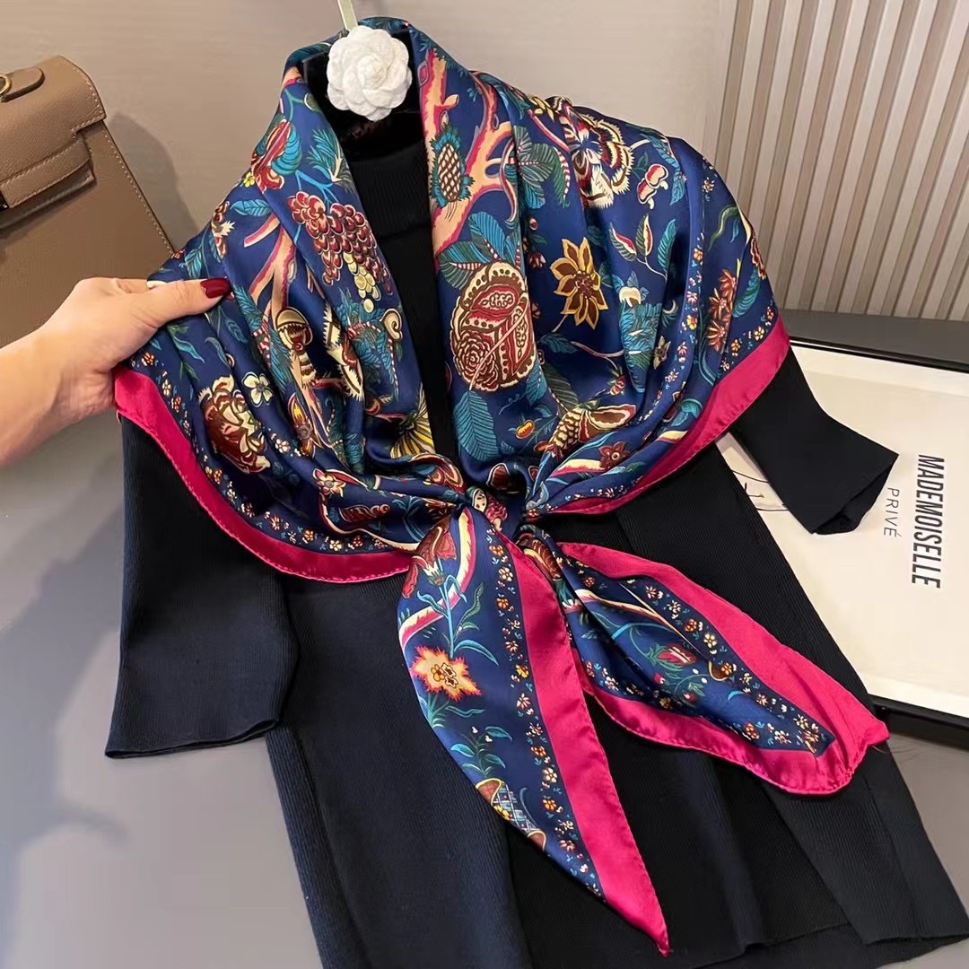 새로운 모조 실크 스카프 여성 110cm 사각 다용도 인쇄 스카프 장식 자외선 차단제 기질 목도리 도매