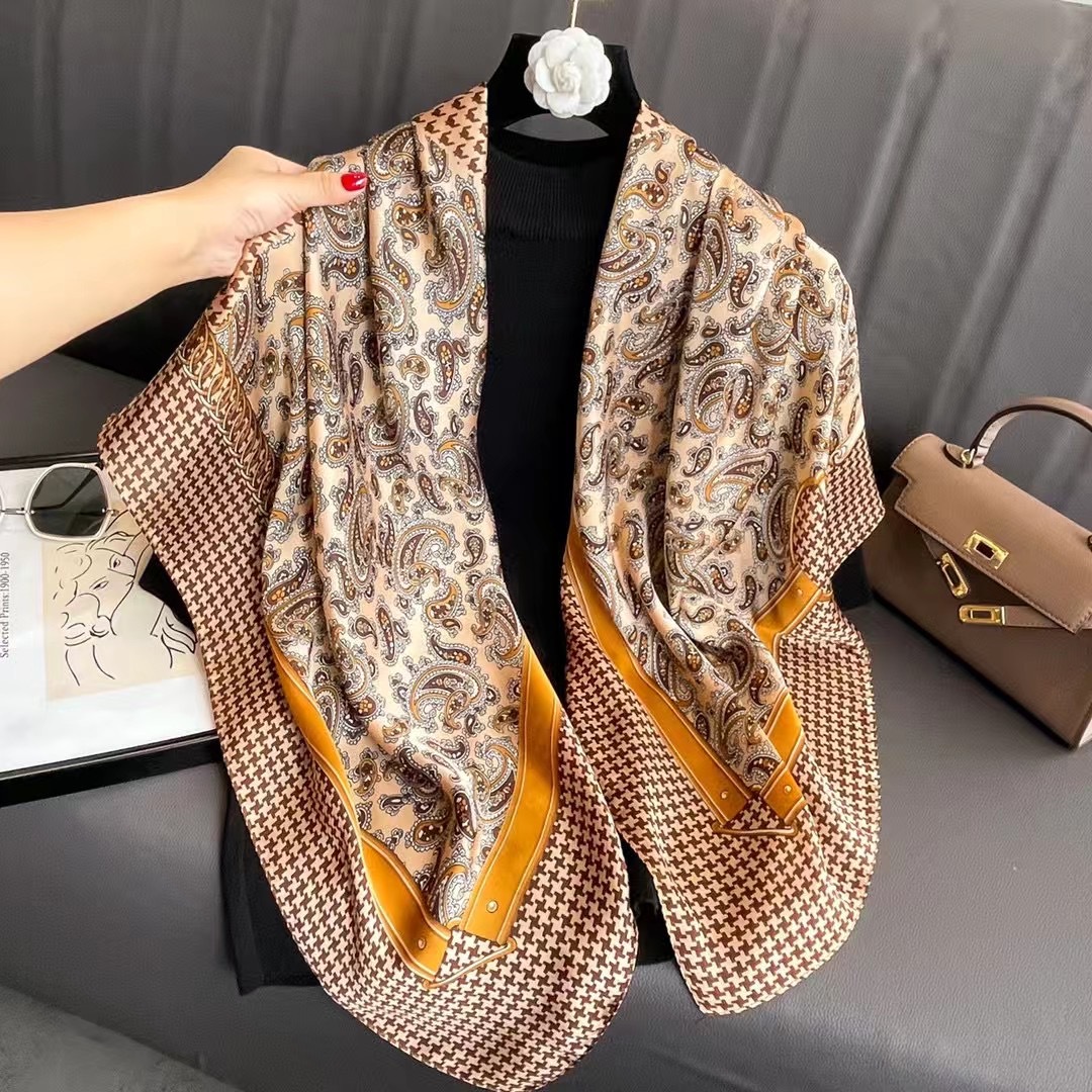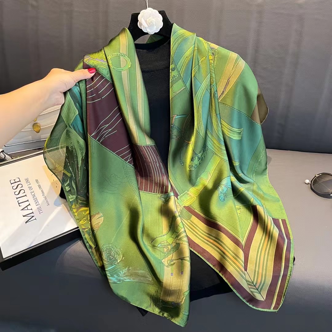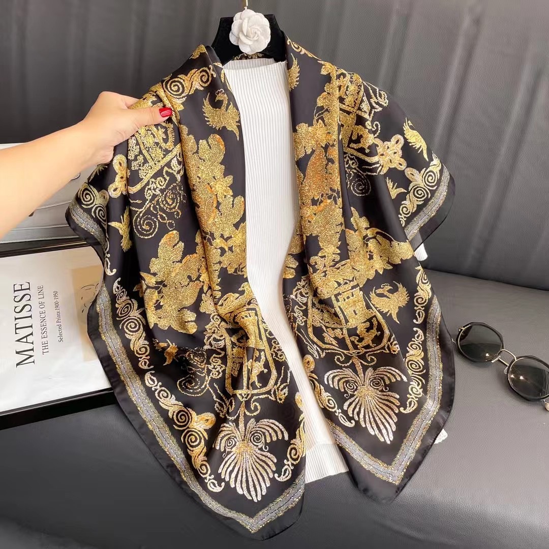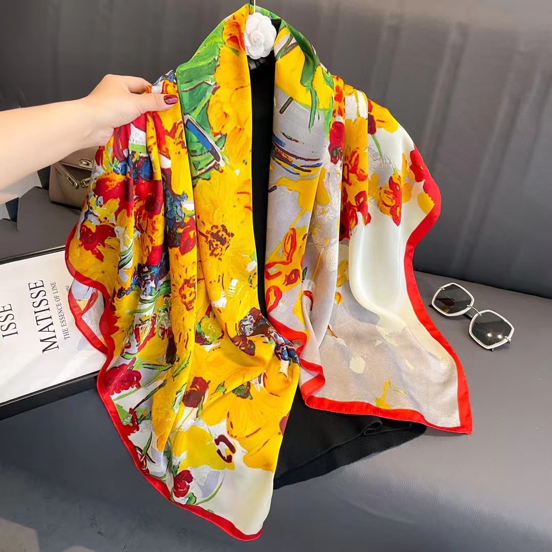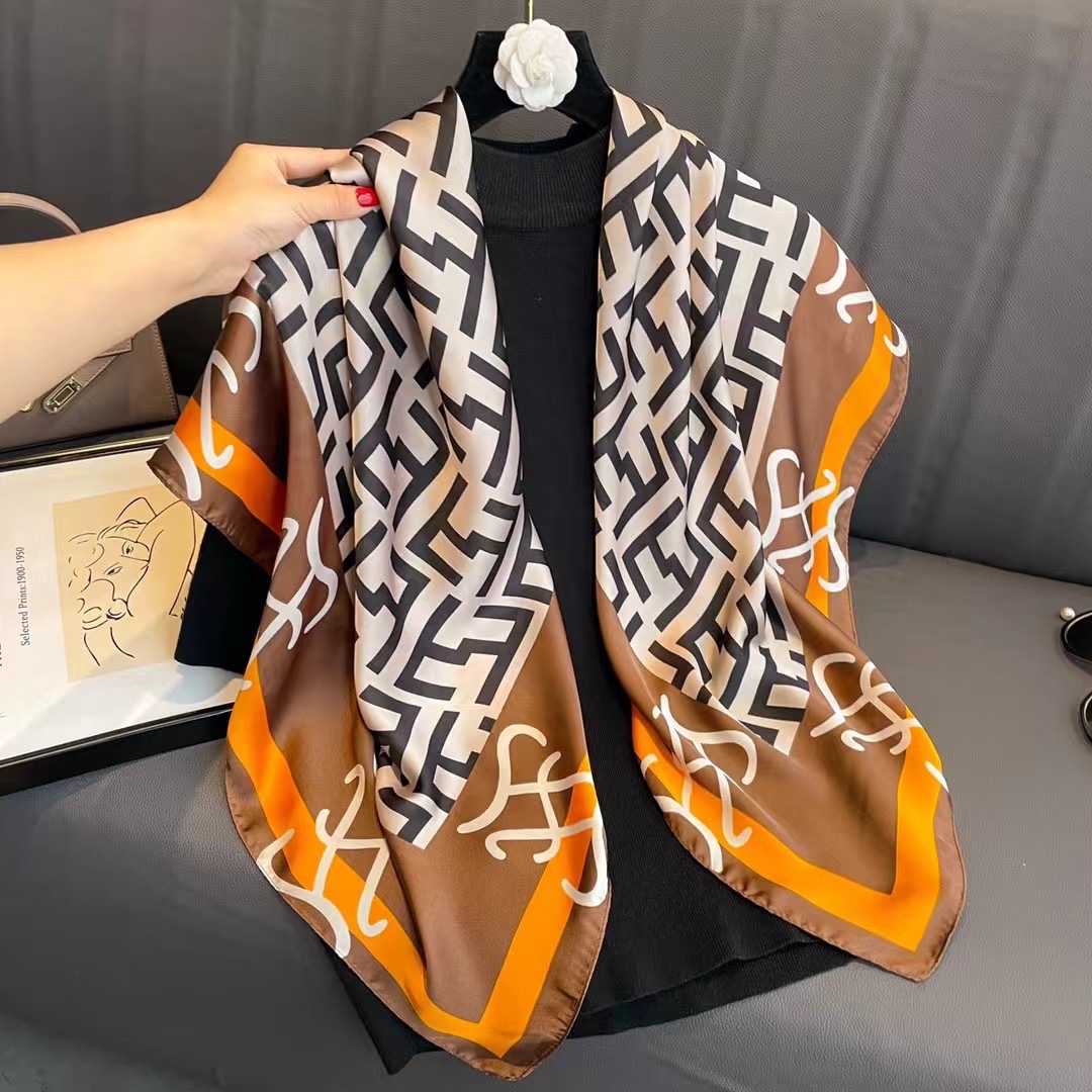 새로운 모조 실크 스카프 여성 110cm 사각 다용도 인쇄 스카프 장식 자외선 차단제 기질 목도리 도매